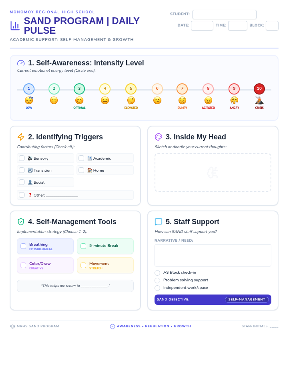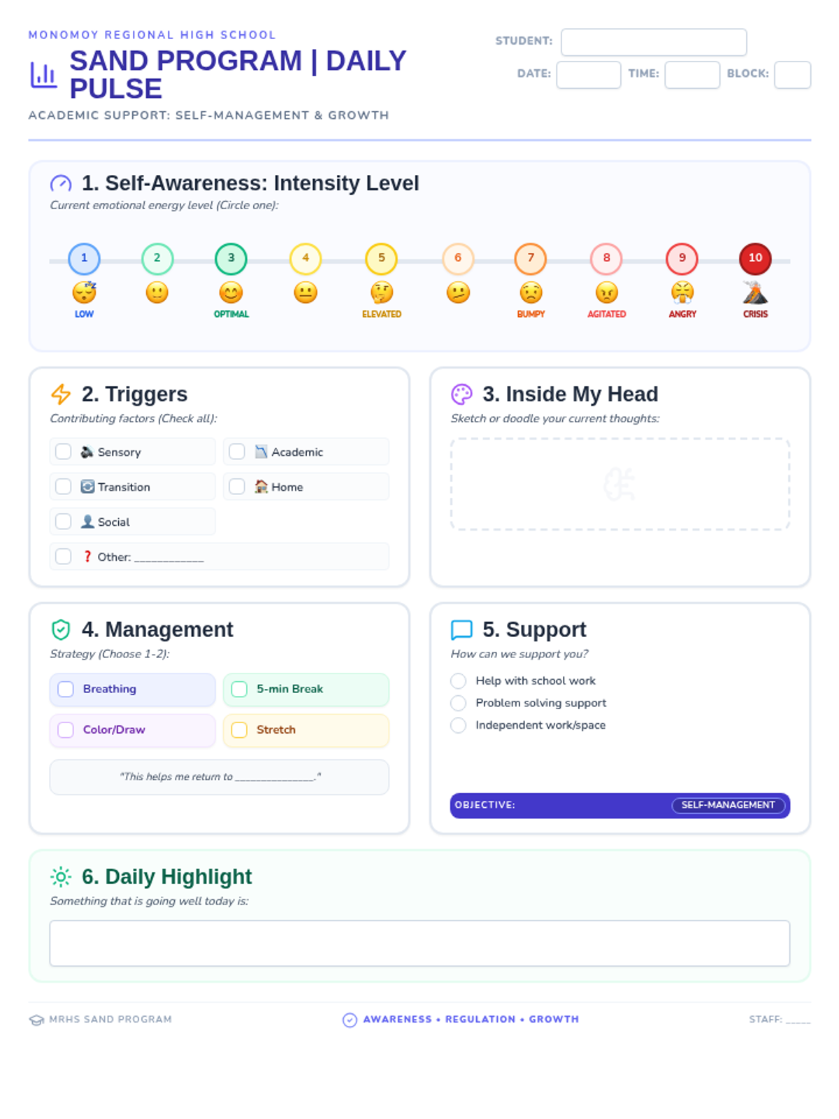A lesson designed to help students in behavior support programs identify their current emotional state, recognize triggers, and select appropriate coping strategies for self-regulation.