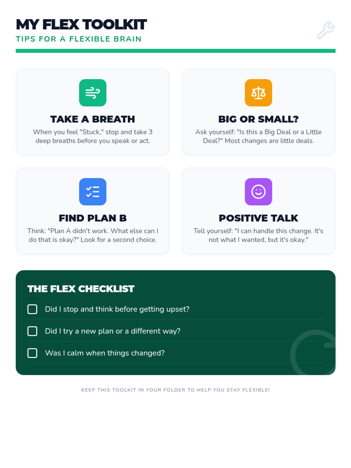 A lesson designed for high school special education students to distinguish between 'stuck' and 'flexible' thinking patterns. Students will learn strategies to adapt to changes and social challenges through interactive slides and hands-on sorting activities.
