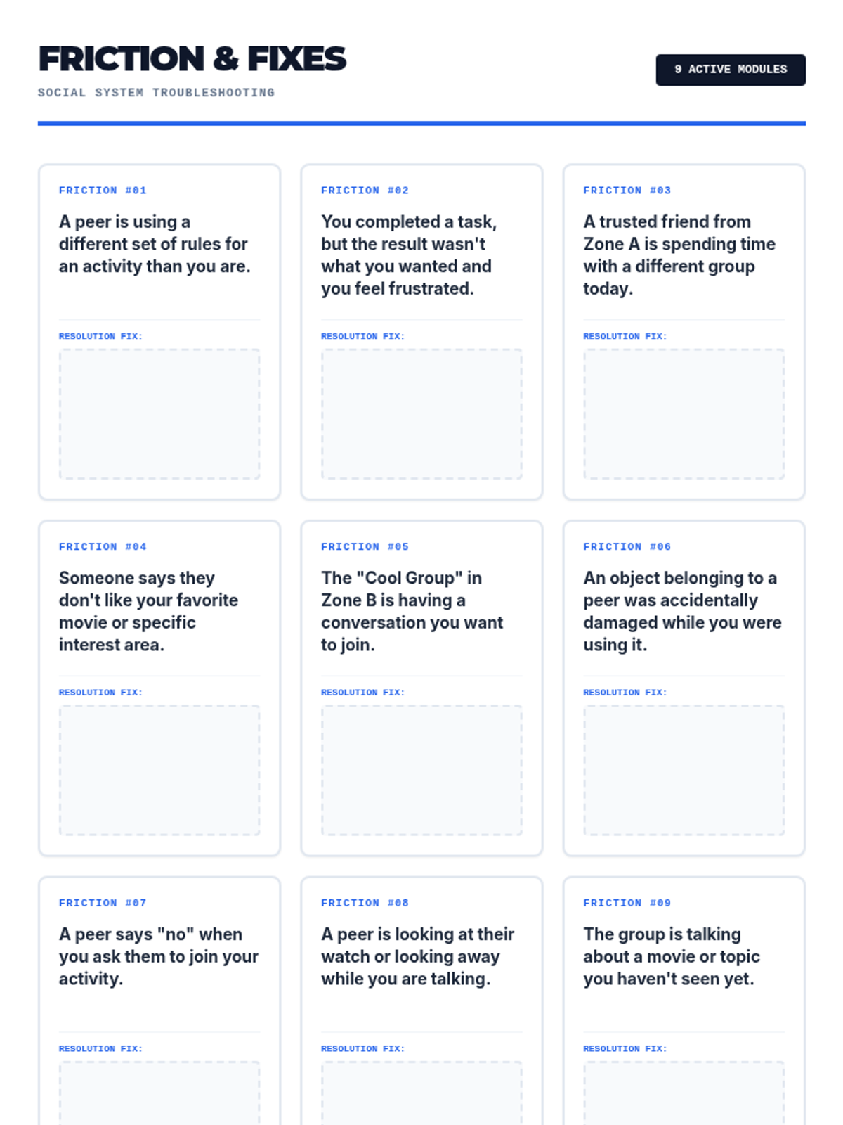 A workshop focused on breaking down classroom cliques and fostering empathy through collaborative 'blueprint' activities. Designed for high-conflict environments where inter-group tension is prevalent.