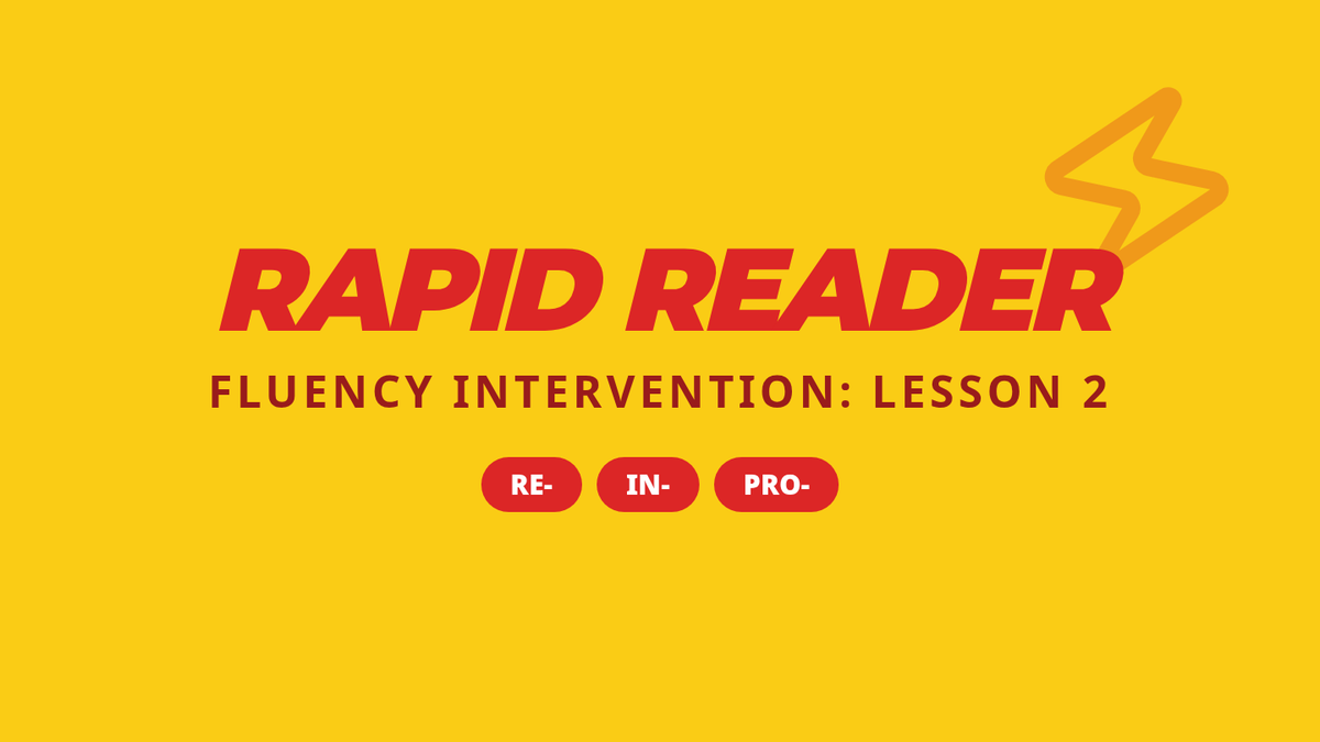 The first fluency intervention lesson focusing on the prefixes re-, in-, and pro-, combined with an initial 1-minute timed reading.