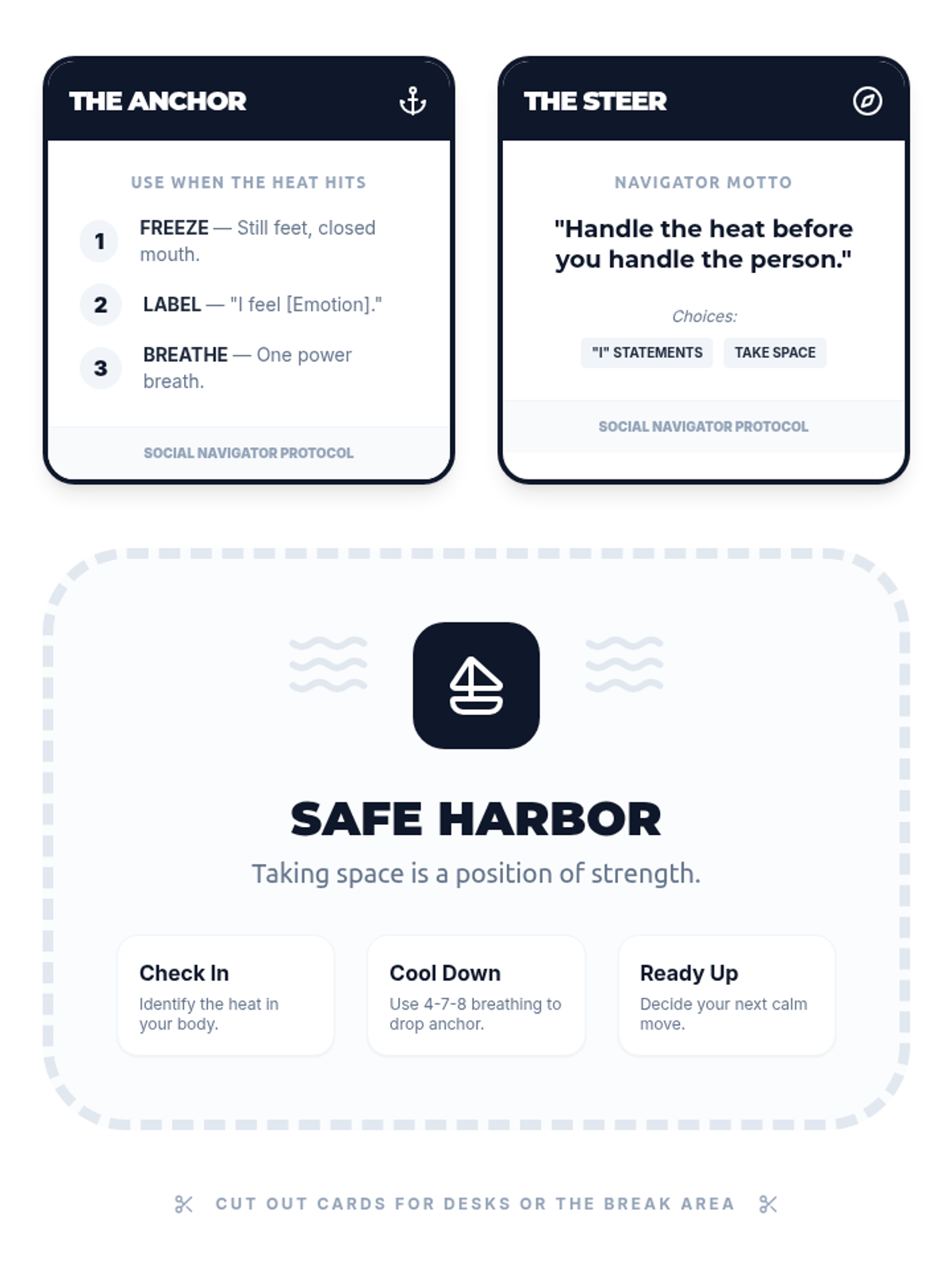 A comprehensive lesson designed for middle school students to help them navigate social disagreements using self-regulation strategies and clear communication. The lesson includes a narrative-based social story, a teacher facilitation guide, and a reflective student worksheet.