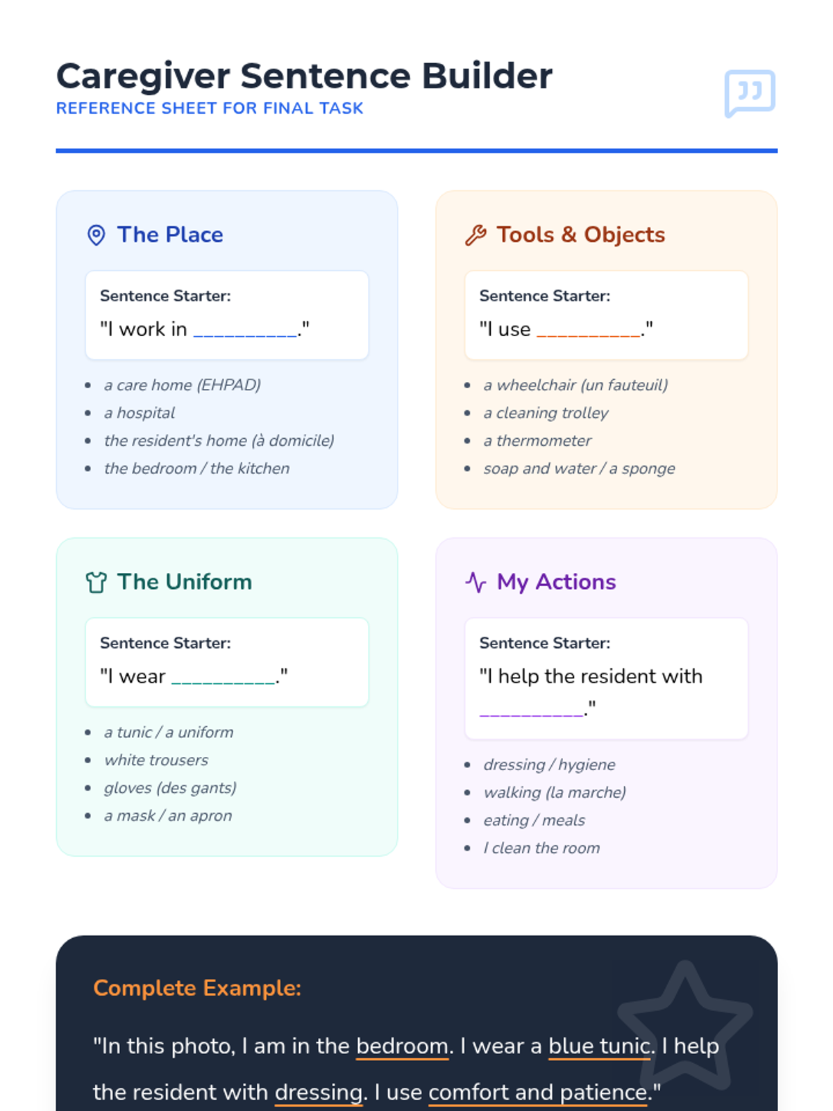 Students synthesize their learning to produce a short report or presentation about their specific internship experience.