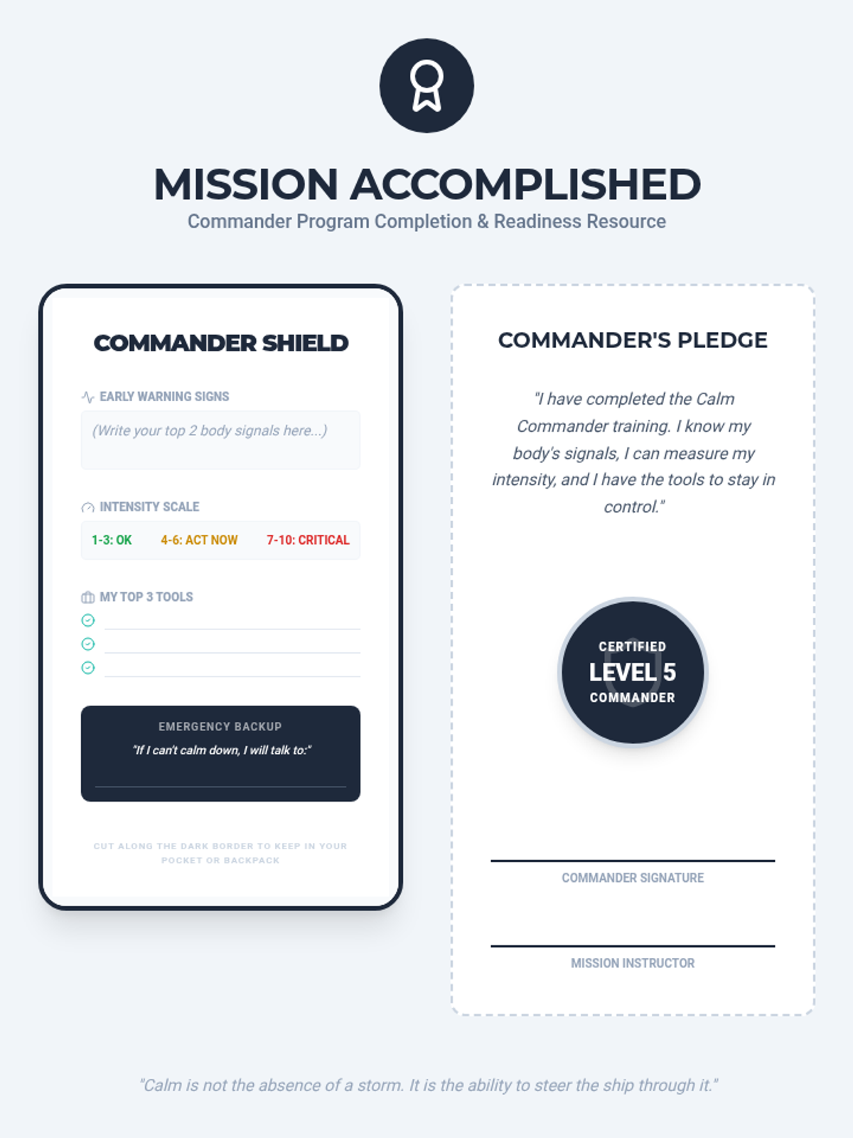 Review of all skills learned and the creation of a portable 'Mission Success' card for real-world application.