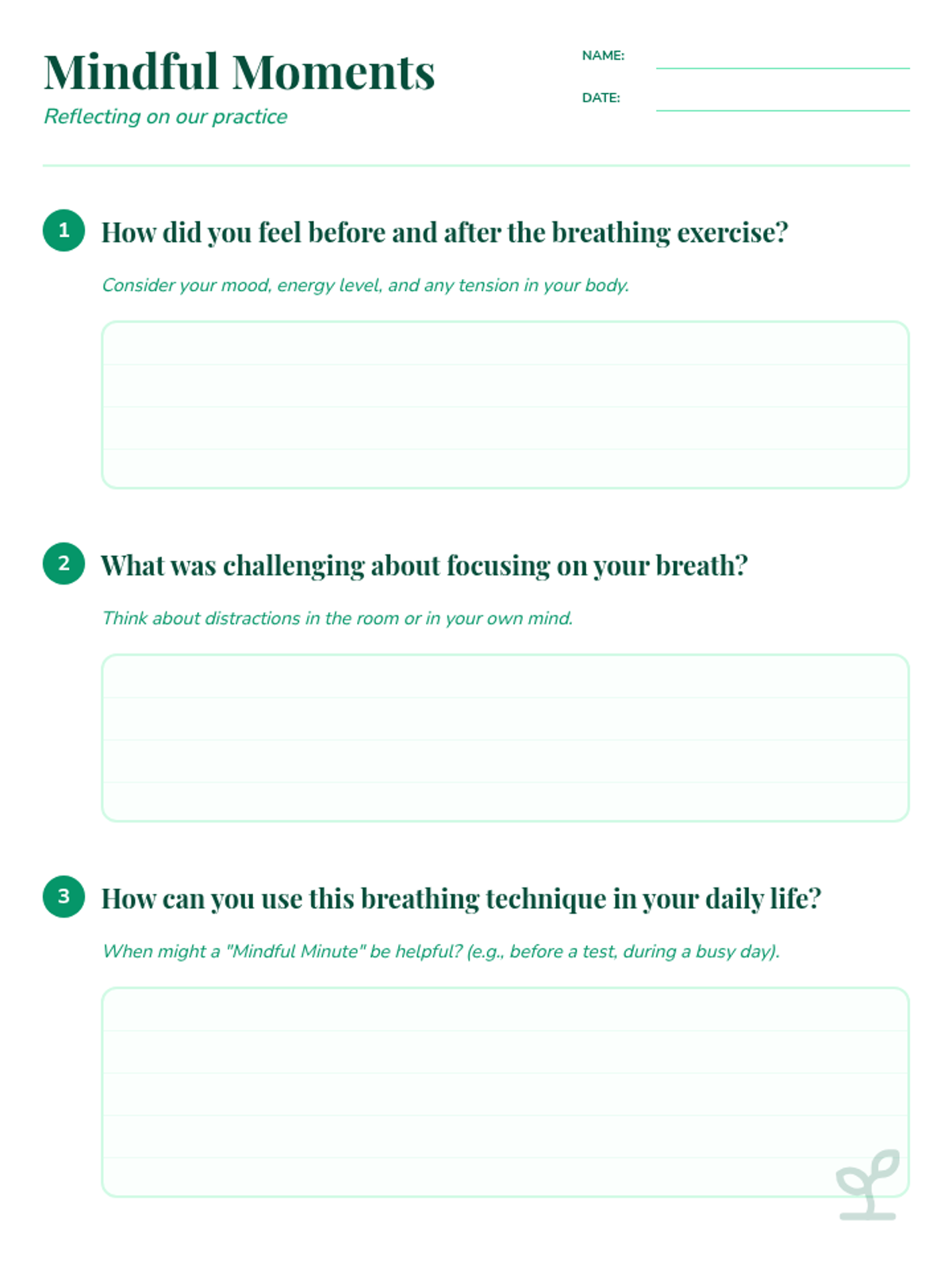 This lesson introduces students to mindfulness through a short, guided breathing exercise to reduce stress and improve concentration.