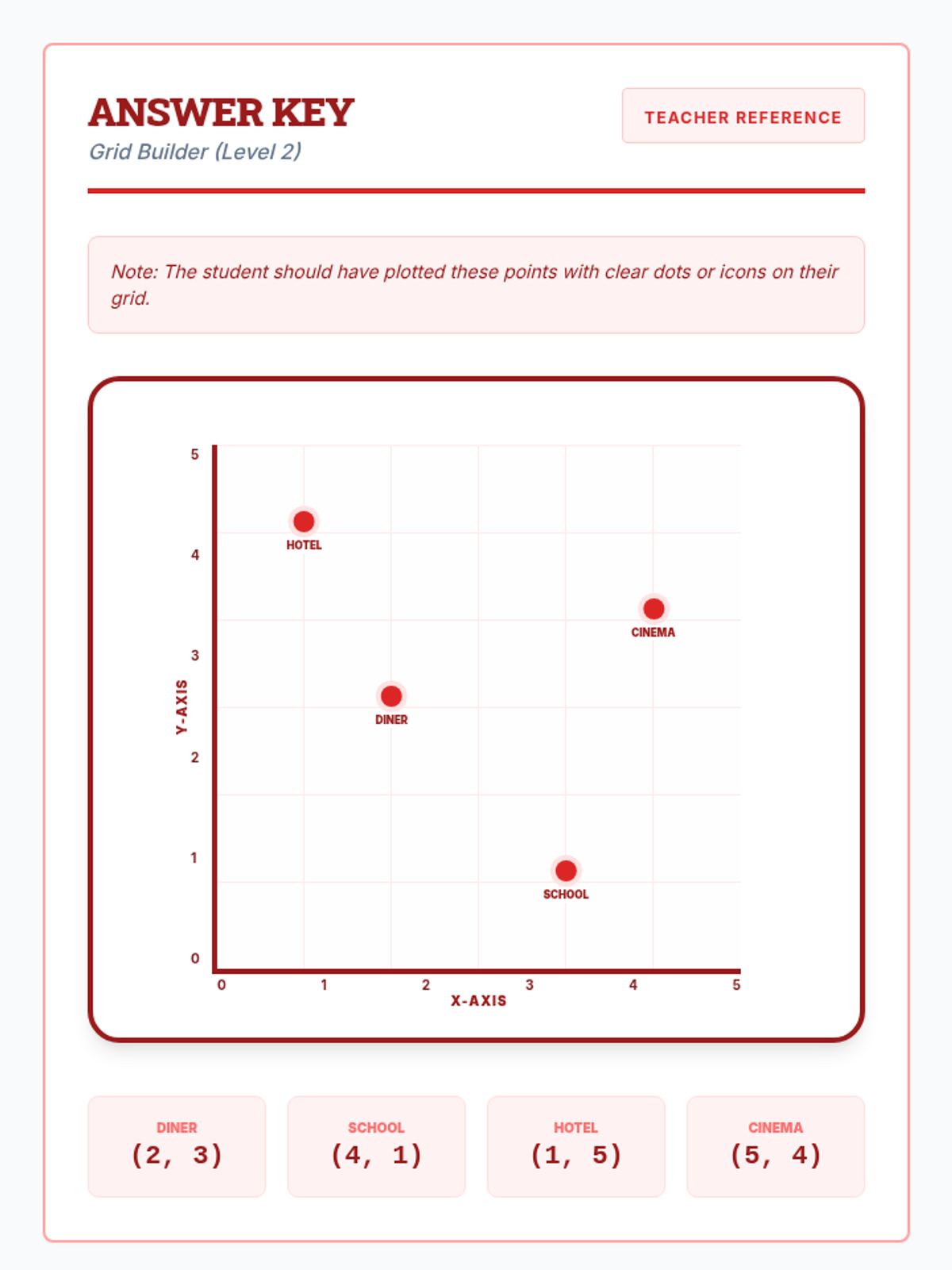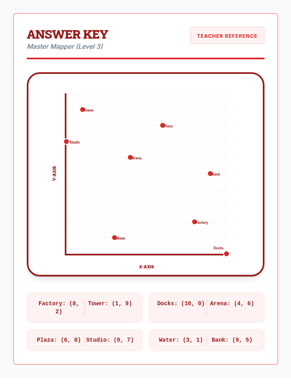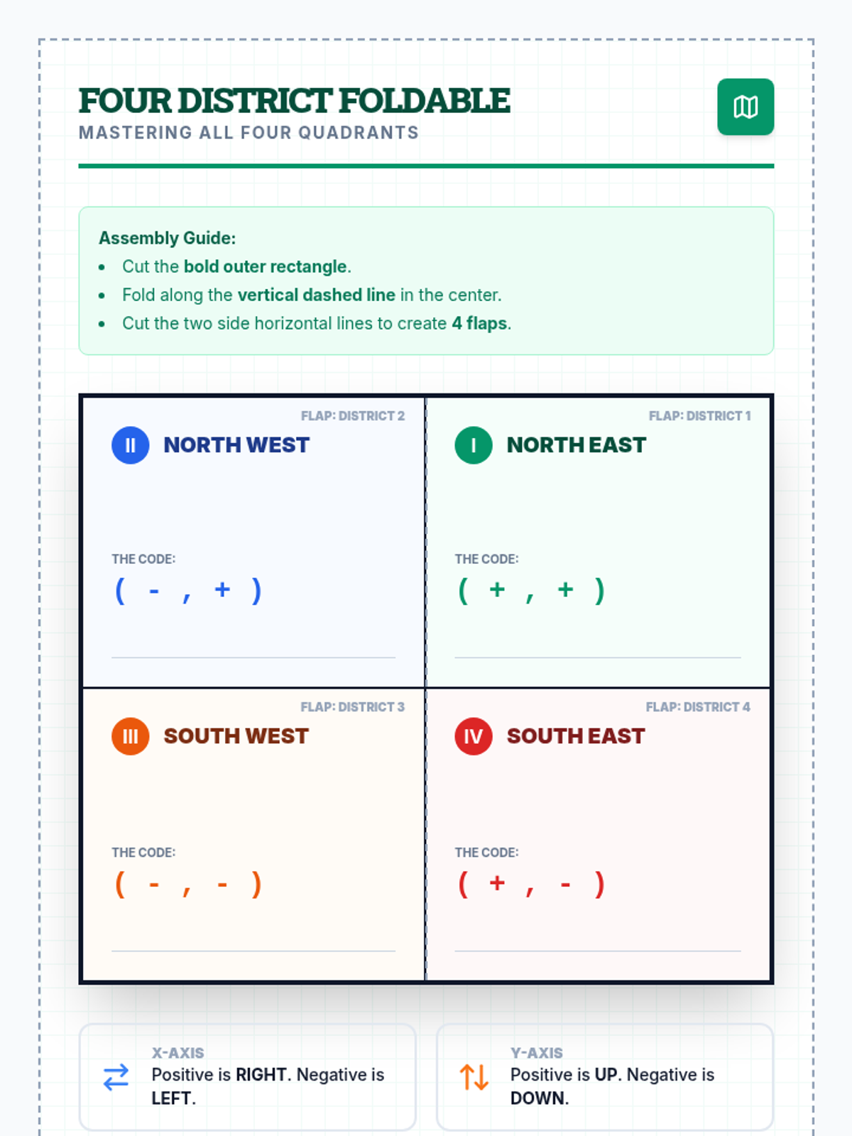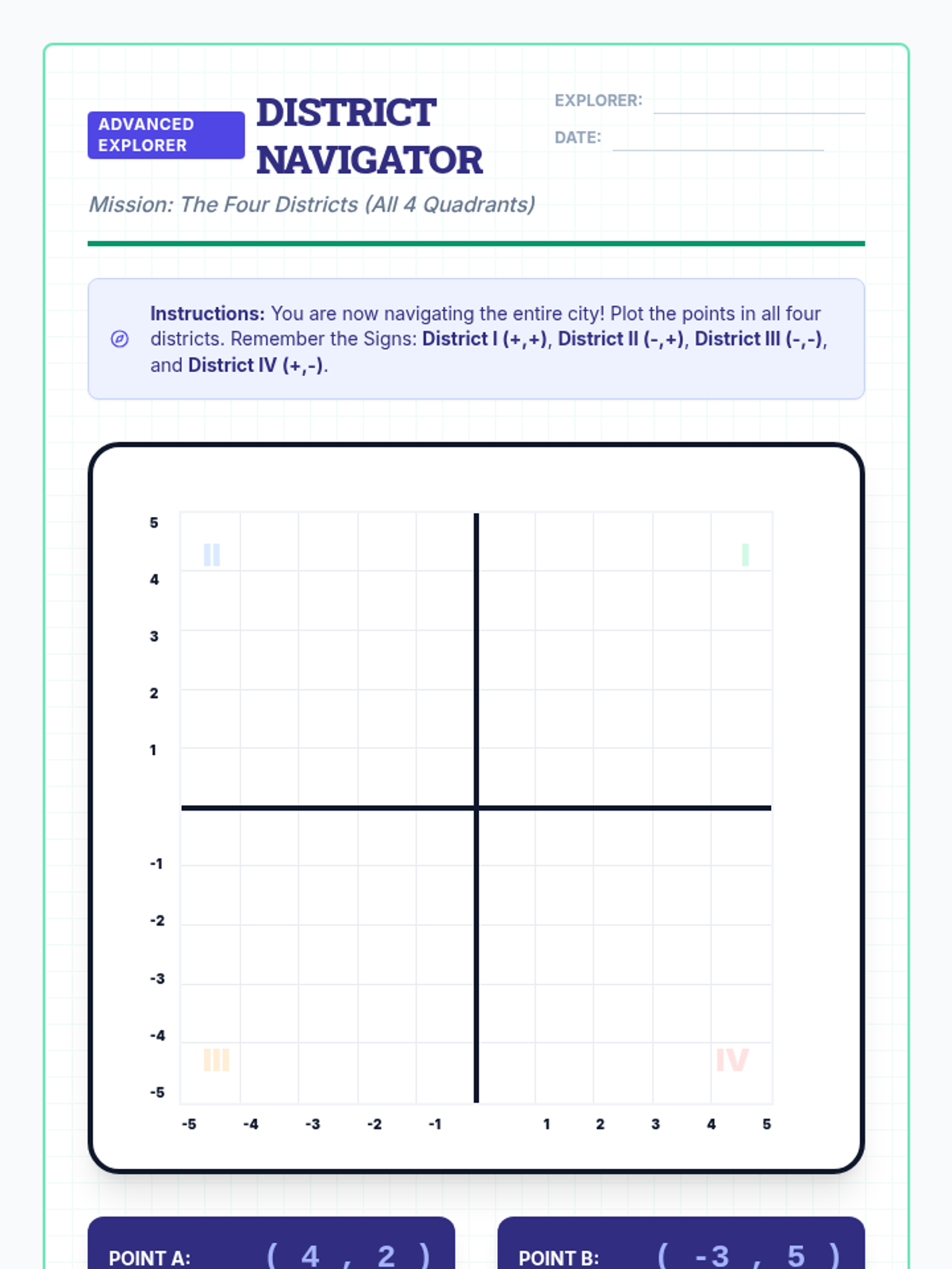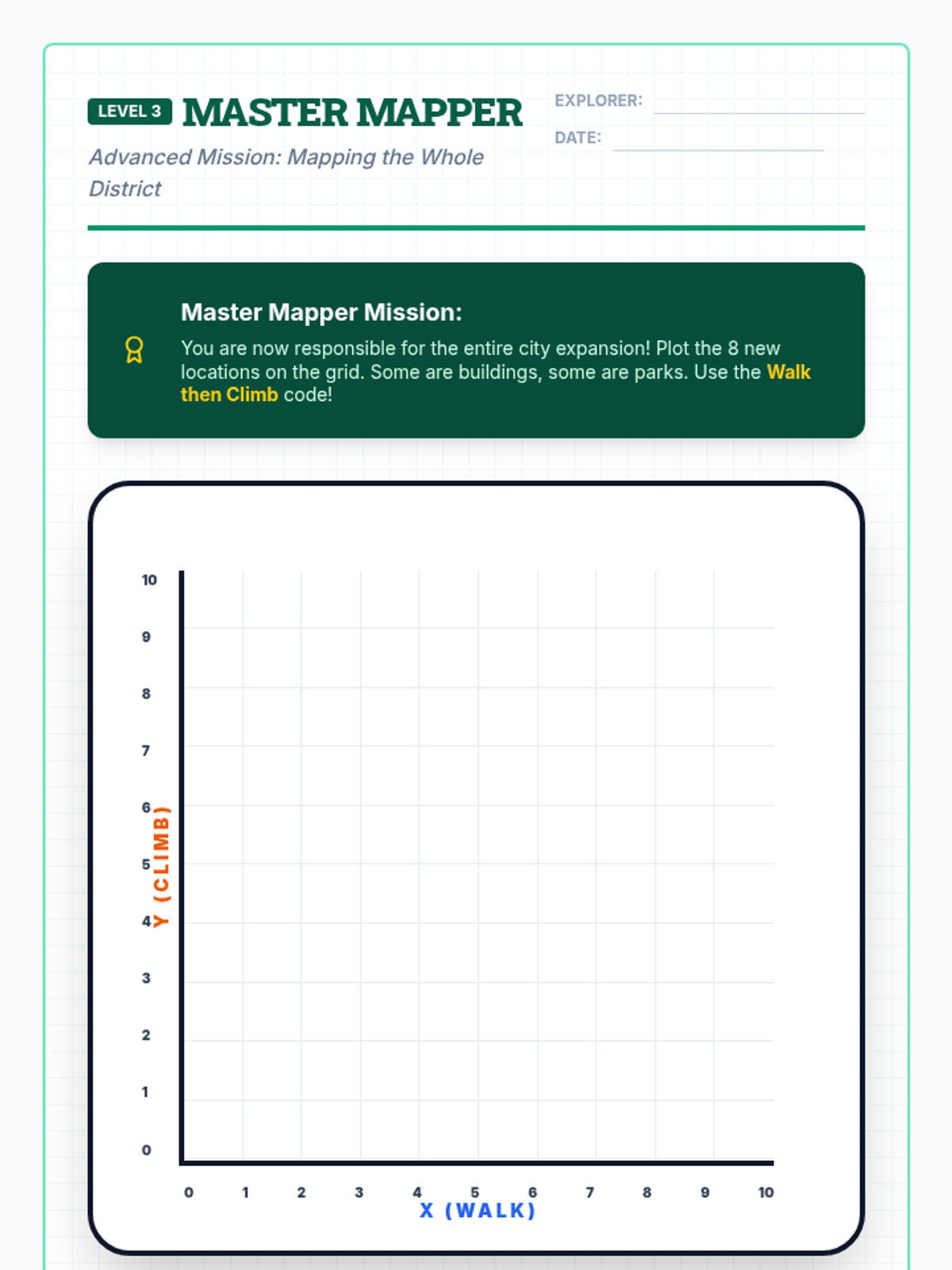 A visual introduction to the coordinate plane (Quadrant I) focusing on plotting points and identifying coordinates through a city mapping theme. Designed for special education students with heavy scaffolding and spatial mnemonics.