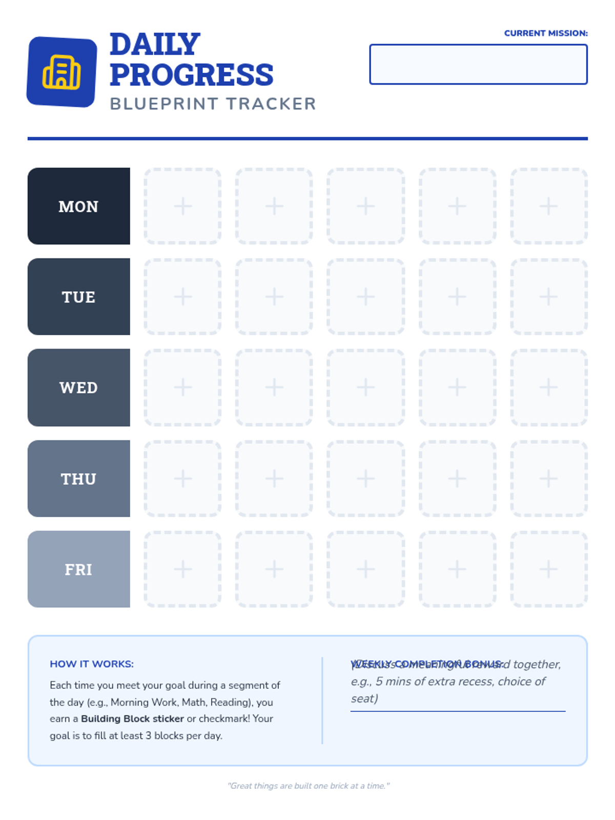 A set of resources designed to help a 4th-grade student with ADHD and autism symptoms track their own mood, behavior, and compliance using a 'Mission Control' metaphor. This lesson focuses on self-regulation and positive behavior reinforcement.