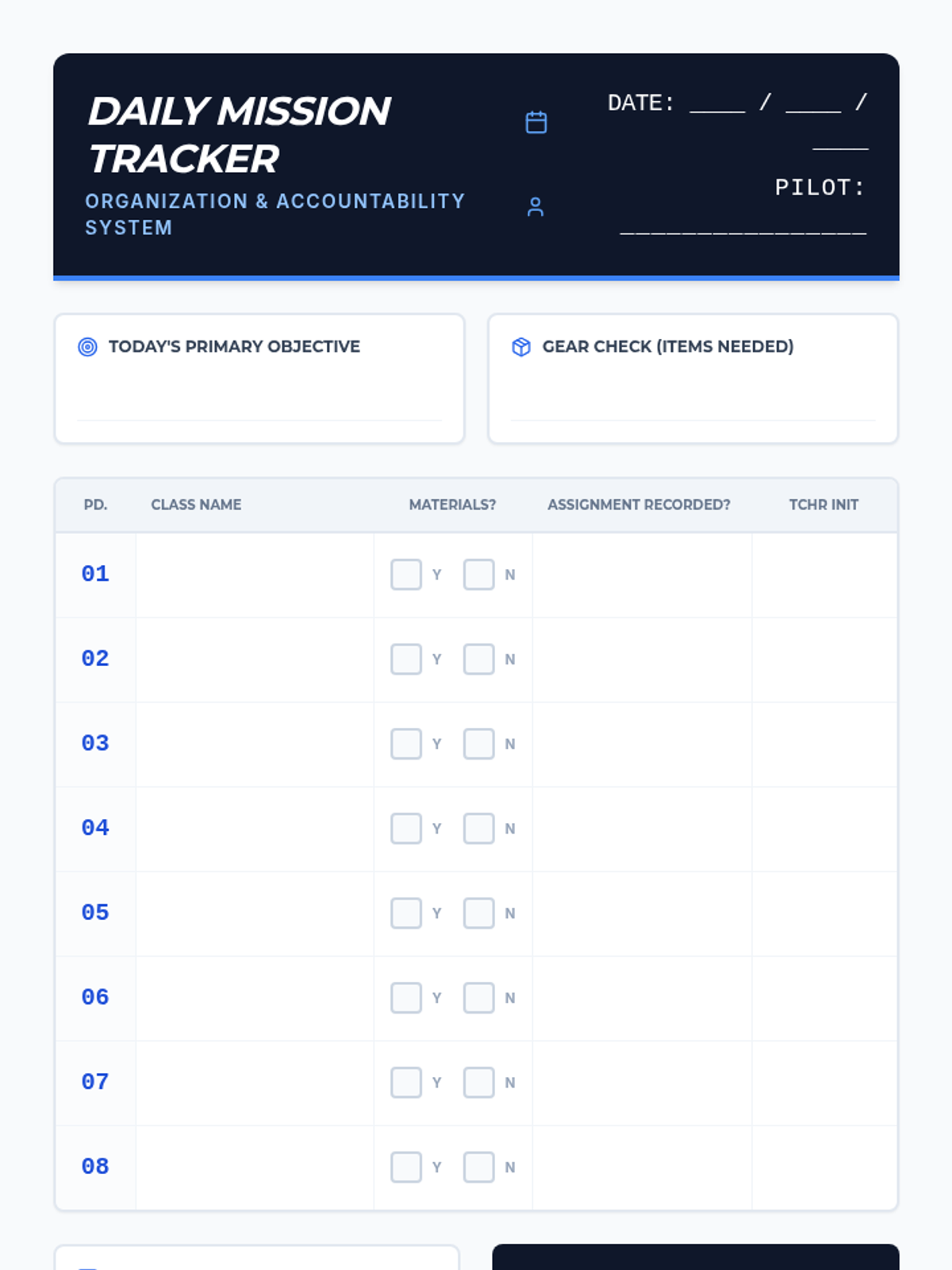 A set of tools designed to help students with ADHD improve their organization, planning, focus, and task initiation through structured self-monitoring.