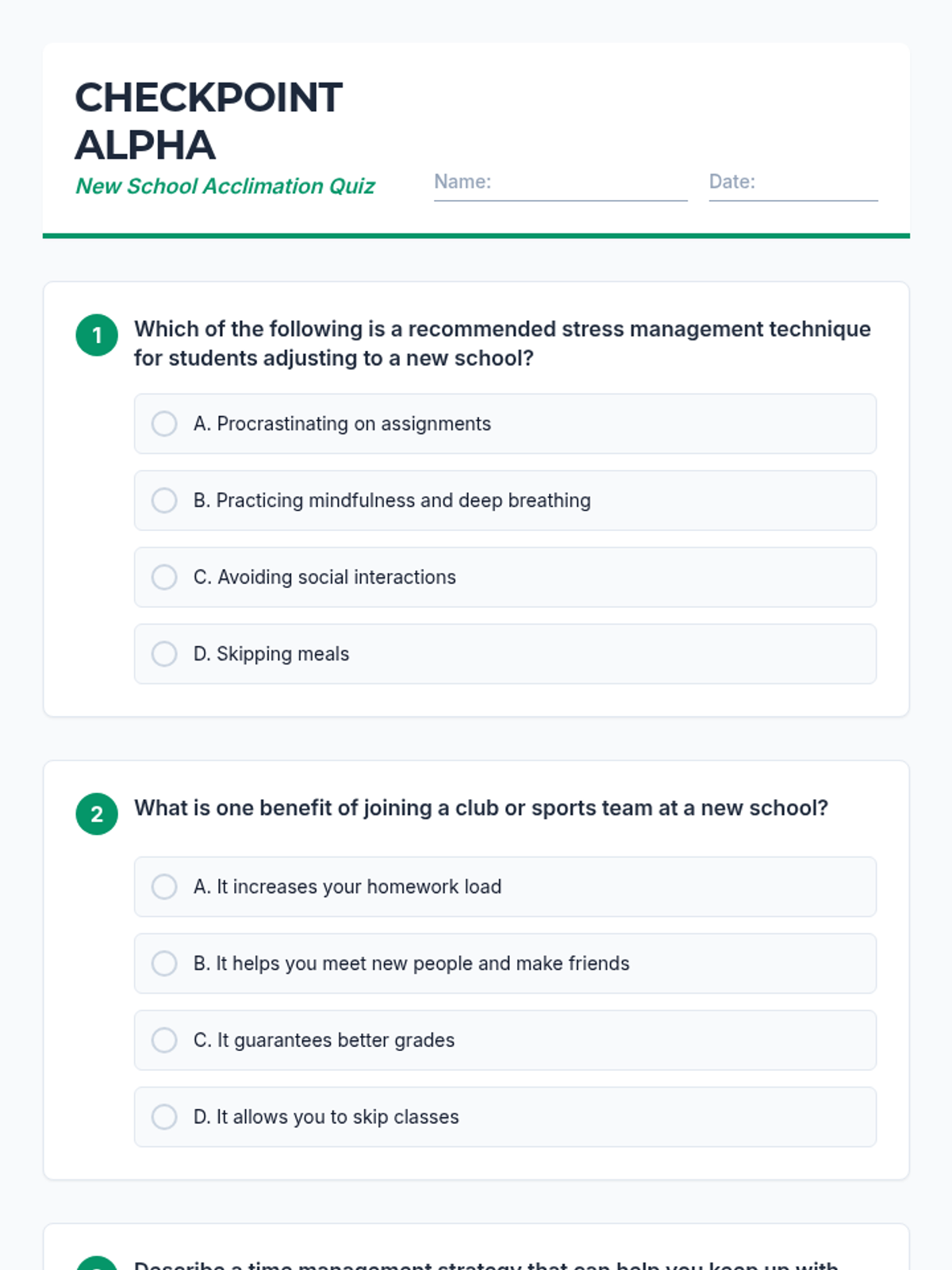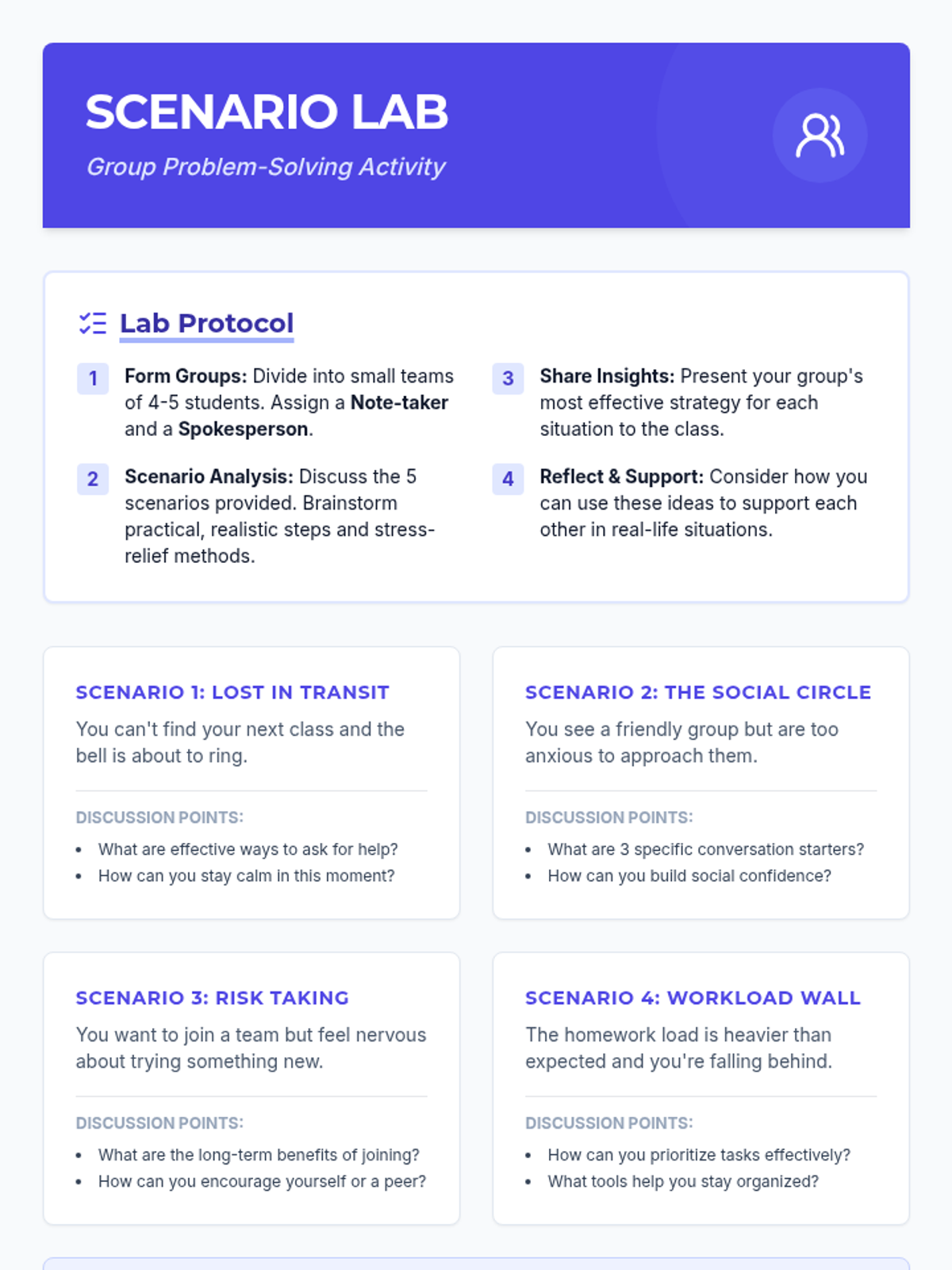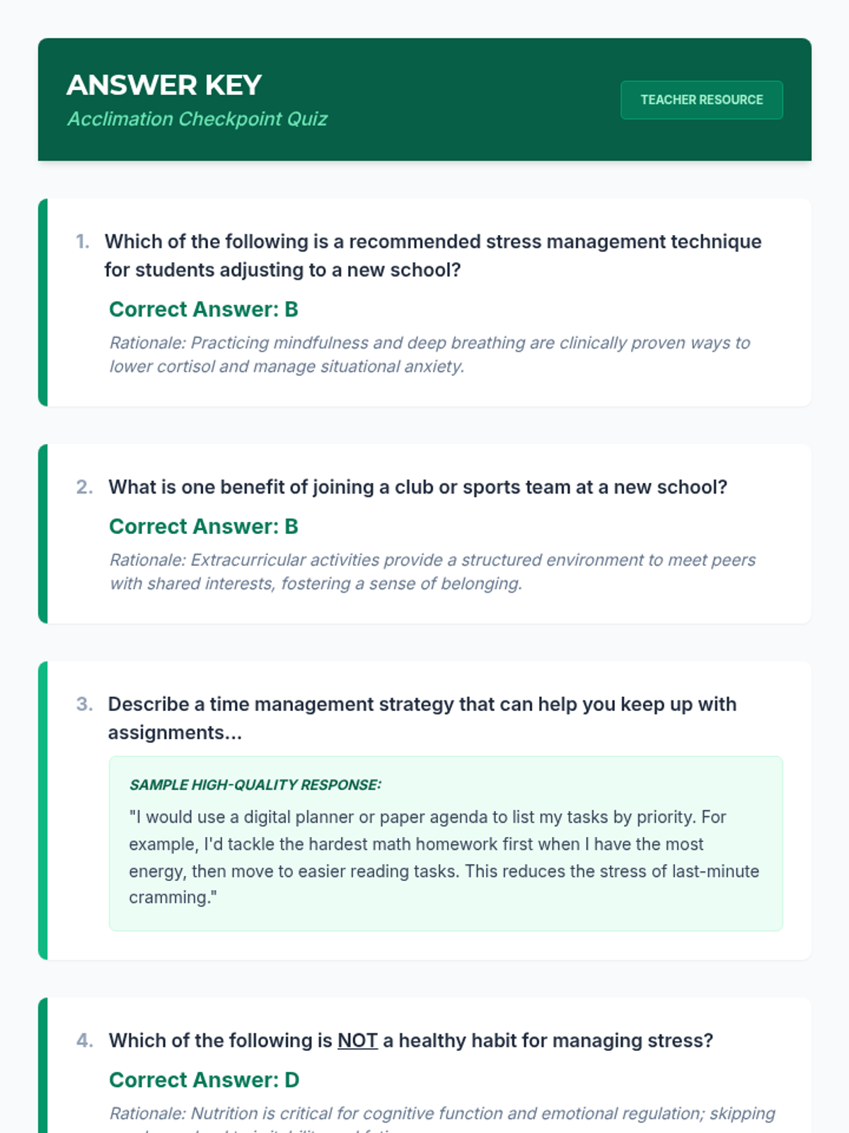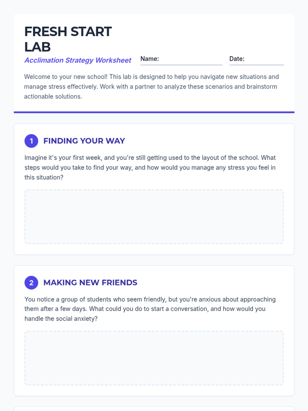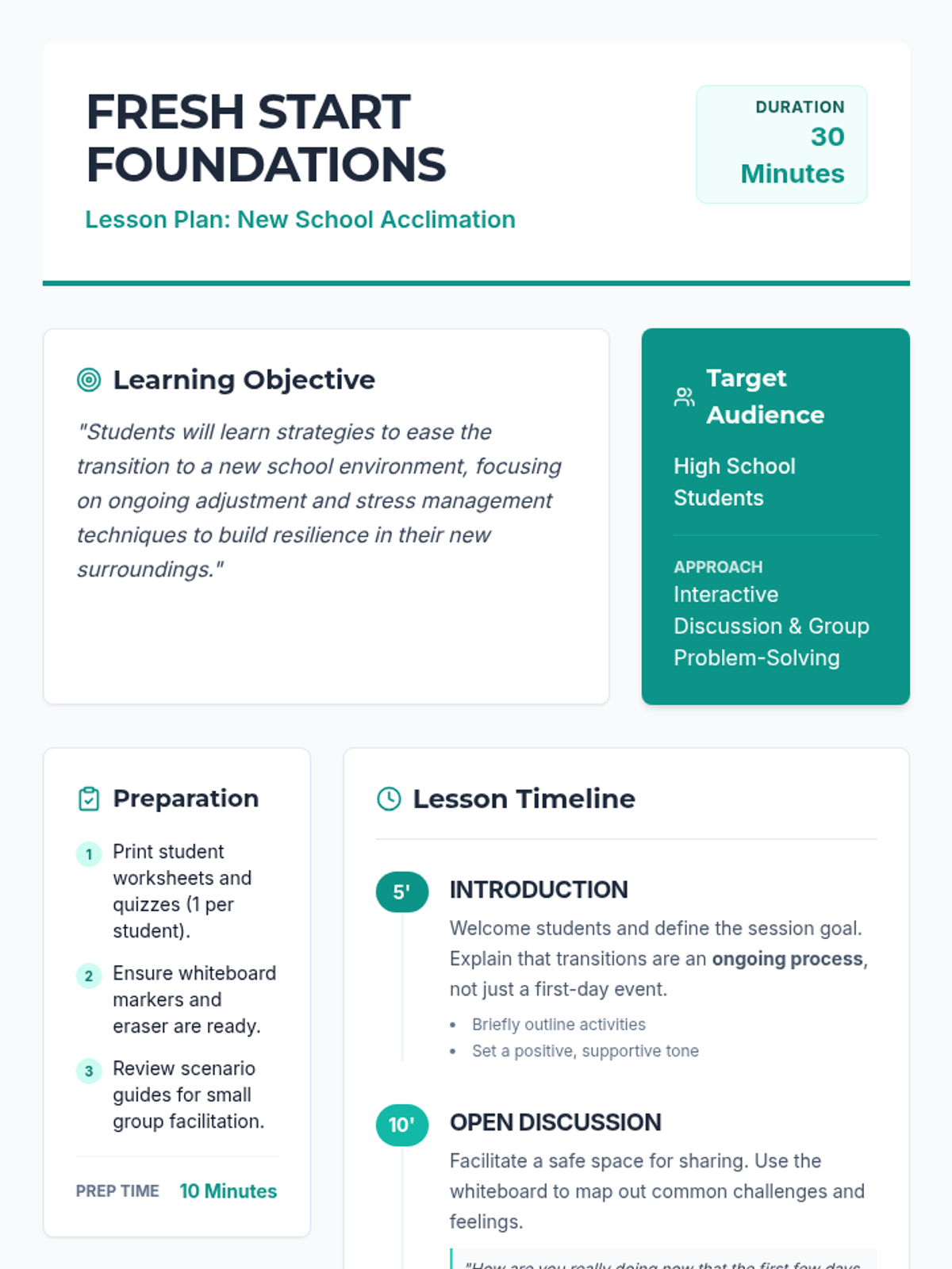 A 30-minute high school lesson focused on providing students with strategies and activities to ease their transition to a new school environment, with a focus on stress management.