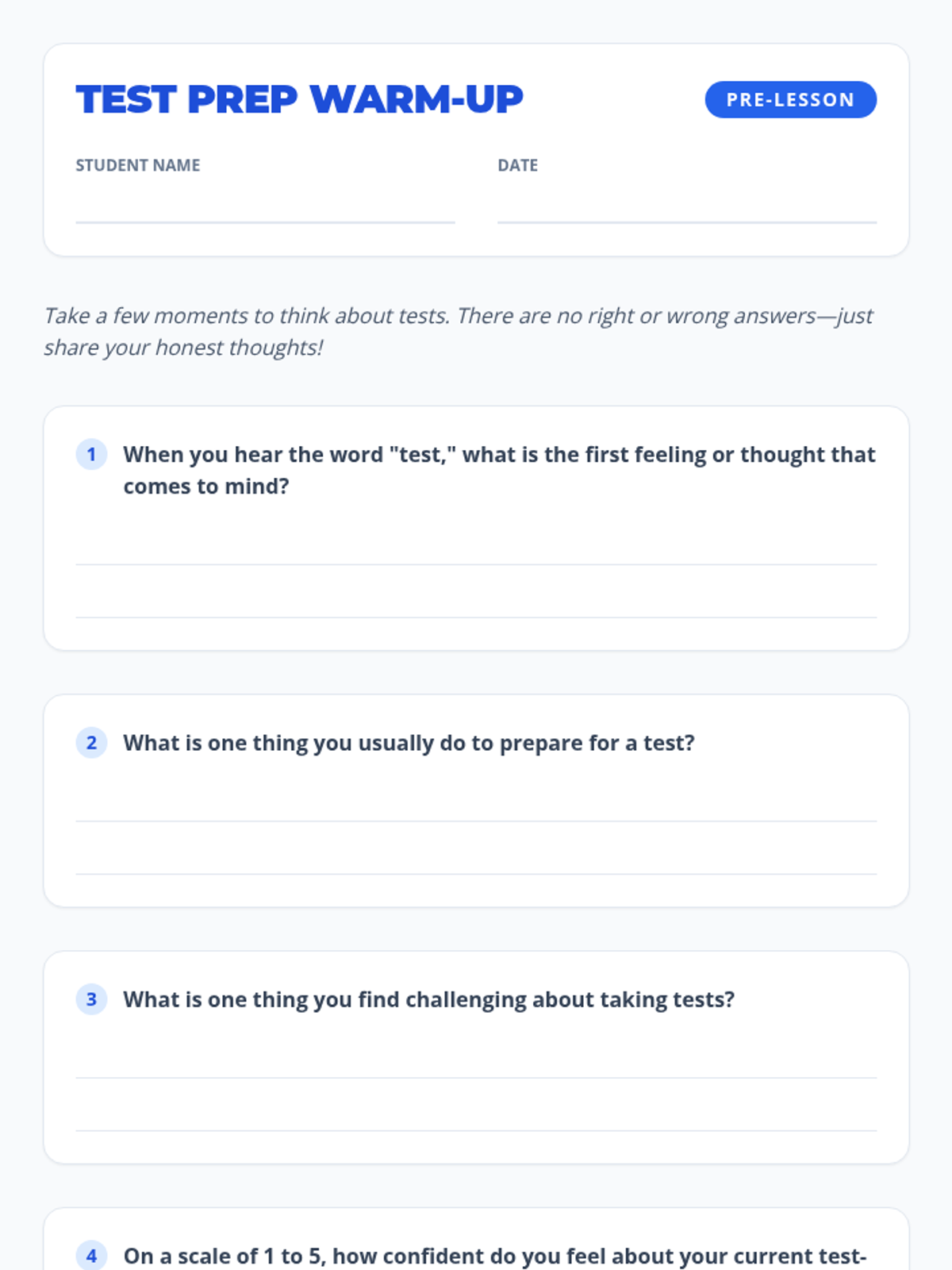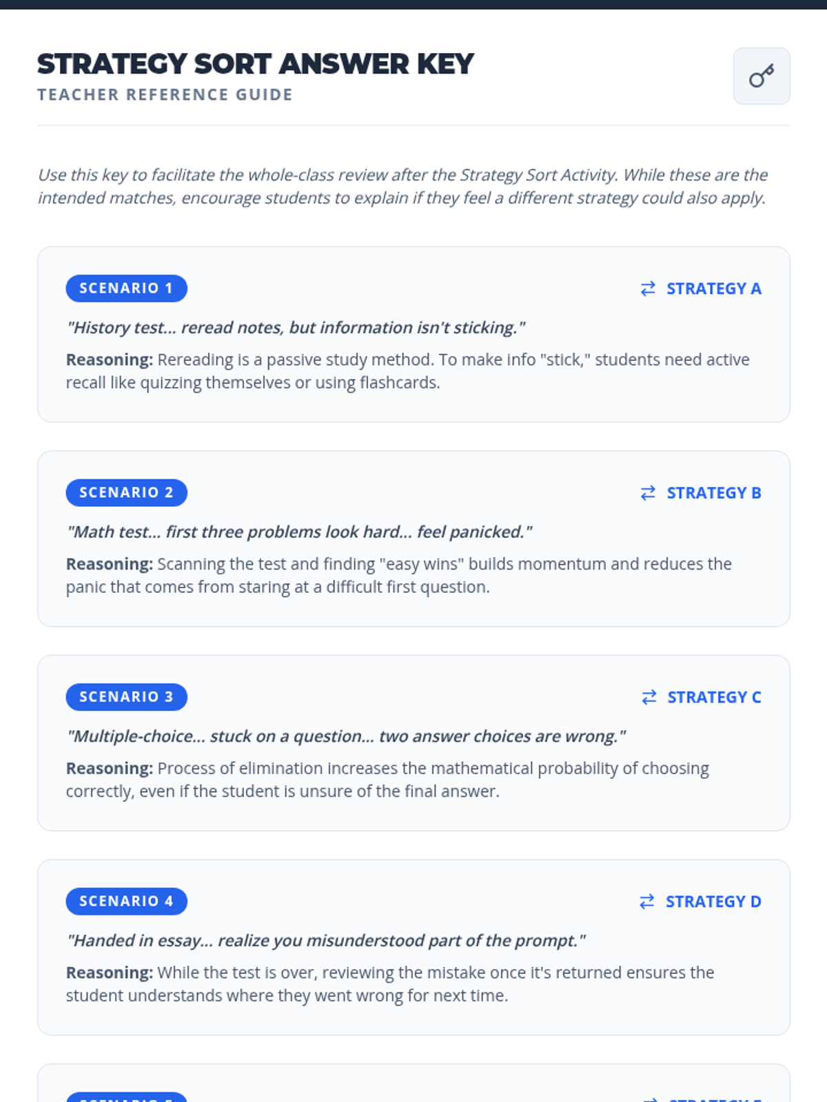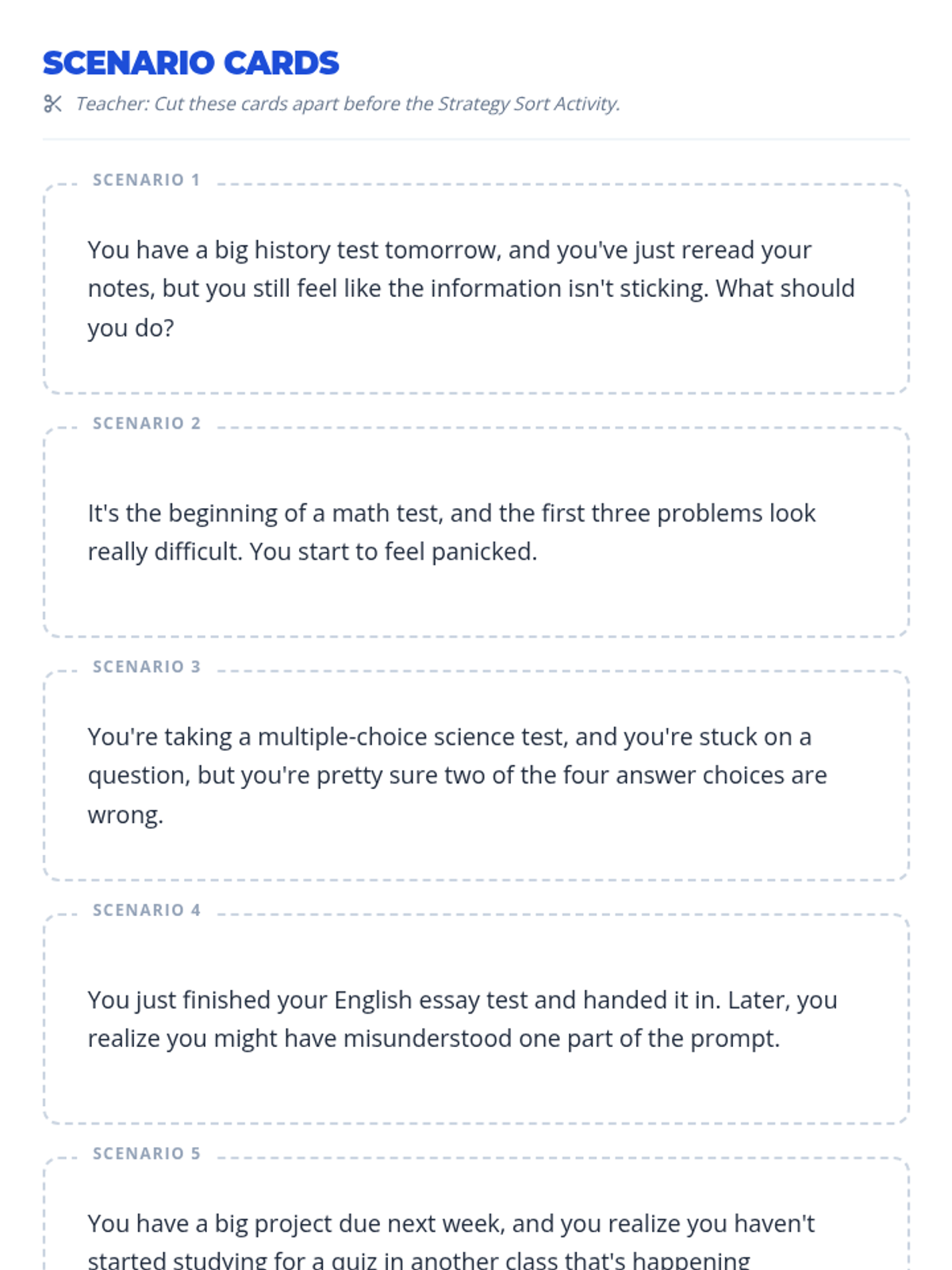 A 30-minute whole-class lesson for 6th graders to learn and practice essential test-taking strategies for before, during, and after assessments.