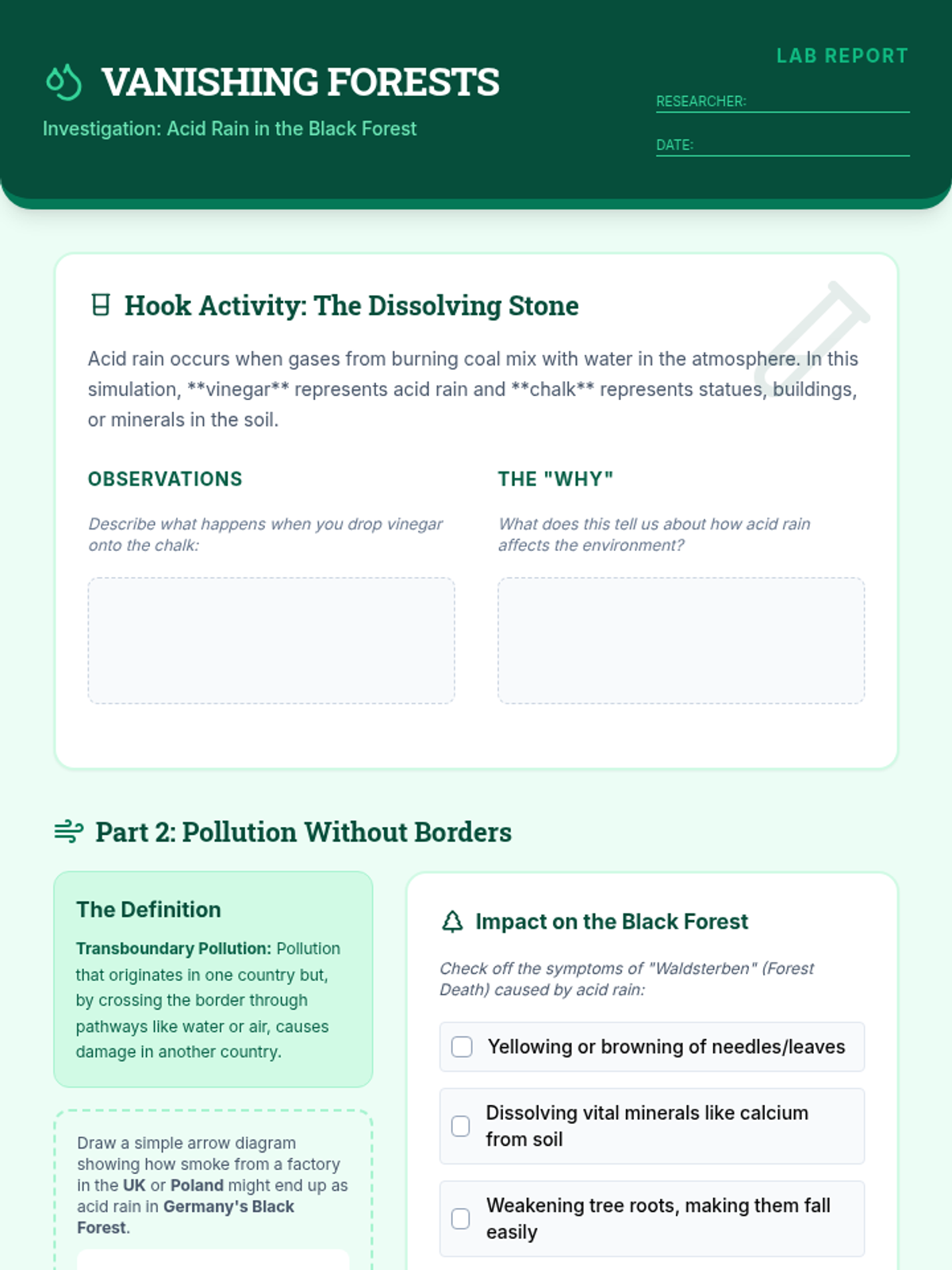 An investigation into the causes and effects of acid rain in Germany's Black Forest, highlighting how pollution travels across national borders.