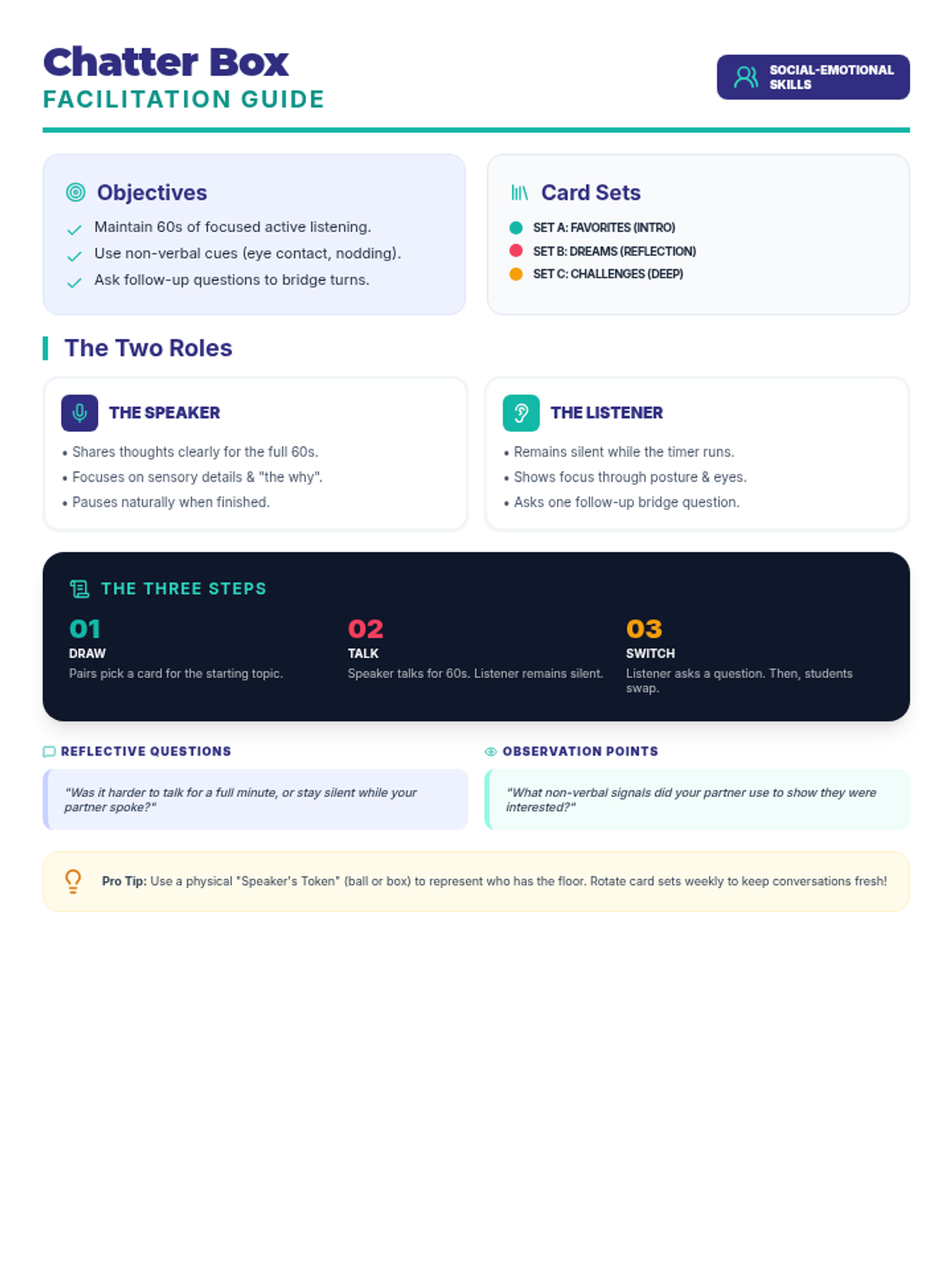 A 10-minute follow-up session where students break down their SMART goal into three concrete, manageable action steps.