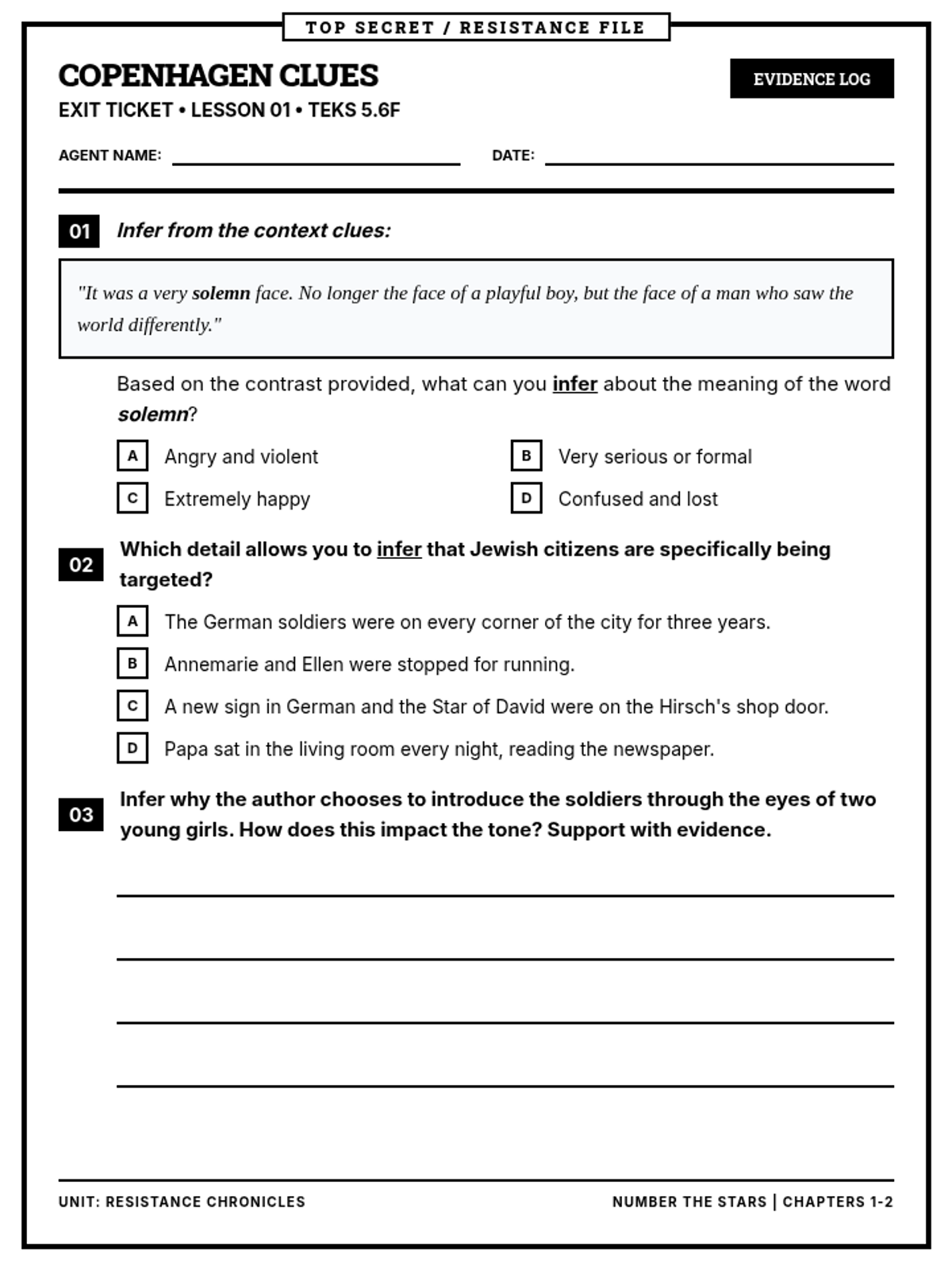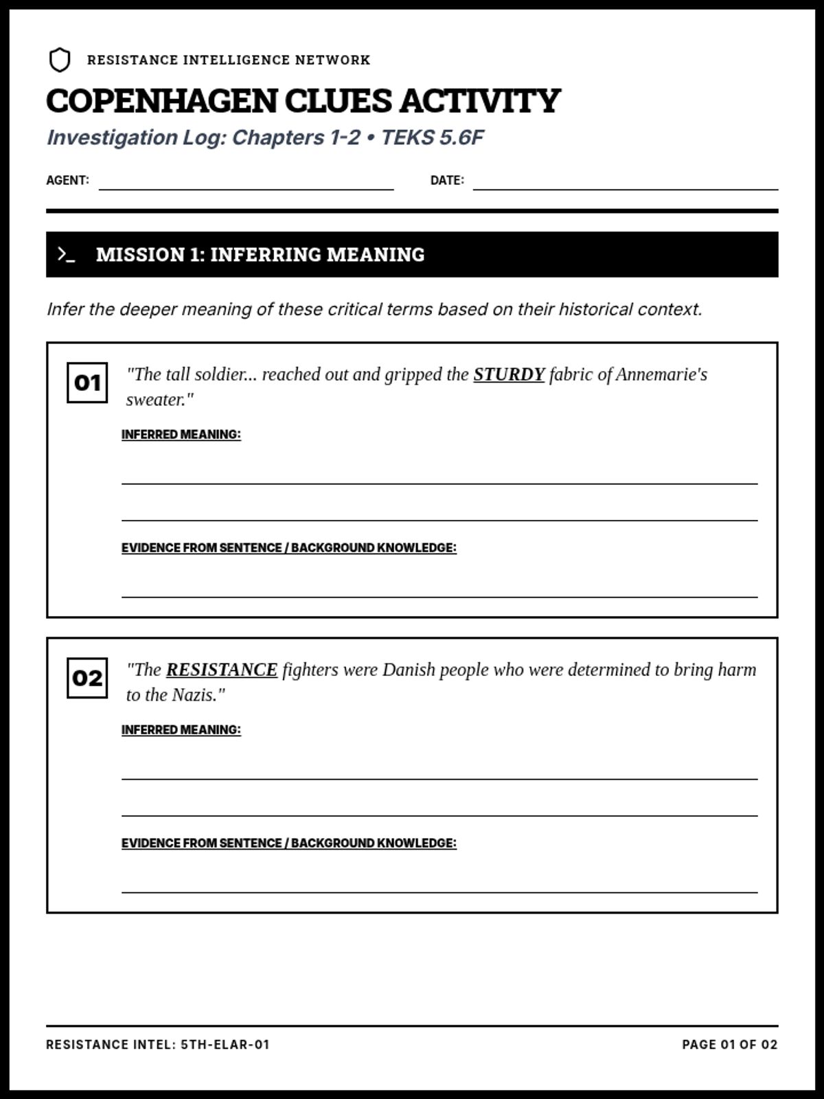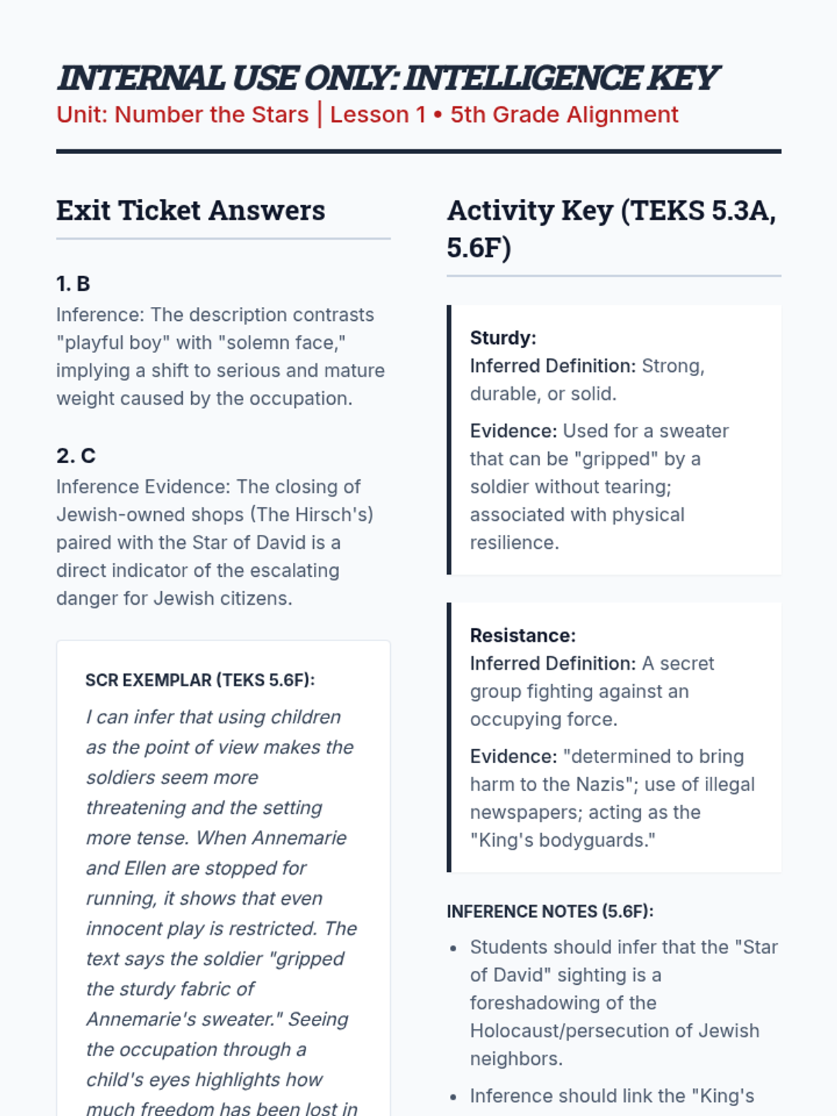 Students explore the opening chapters of Number the Stars, using context clues to infer details about the historical setting and making evidence-based predictions about the Johansen family's future (TEKS 5.6F).