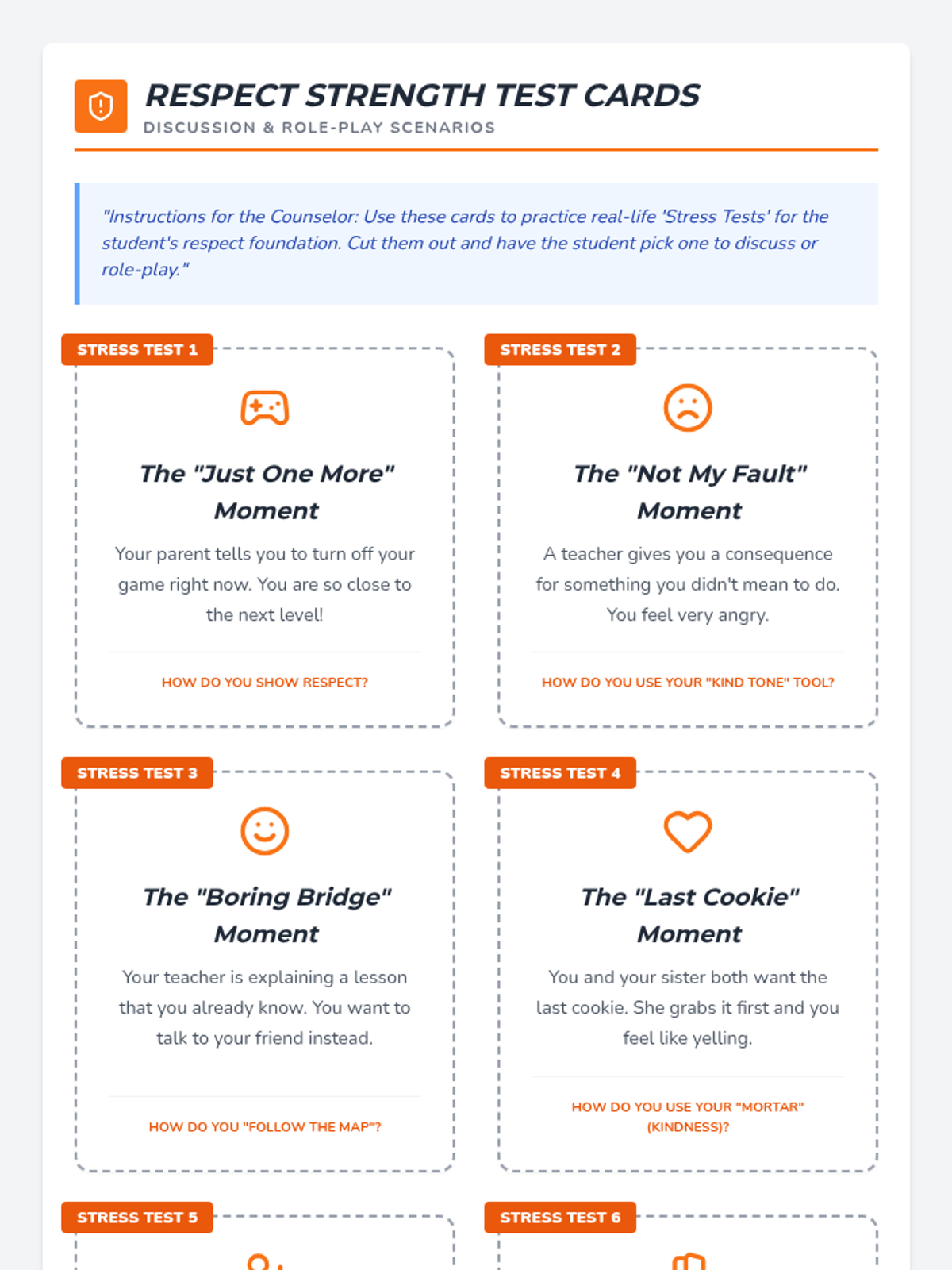 A session dedicated to applying knowledge of body signals through role-play, scripted social stories, and hands-on scenario sorting.