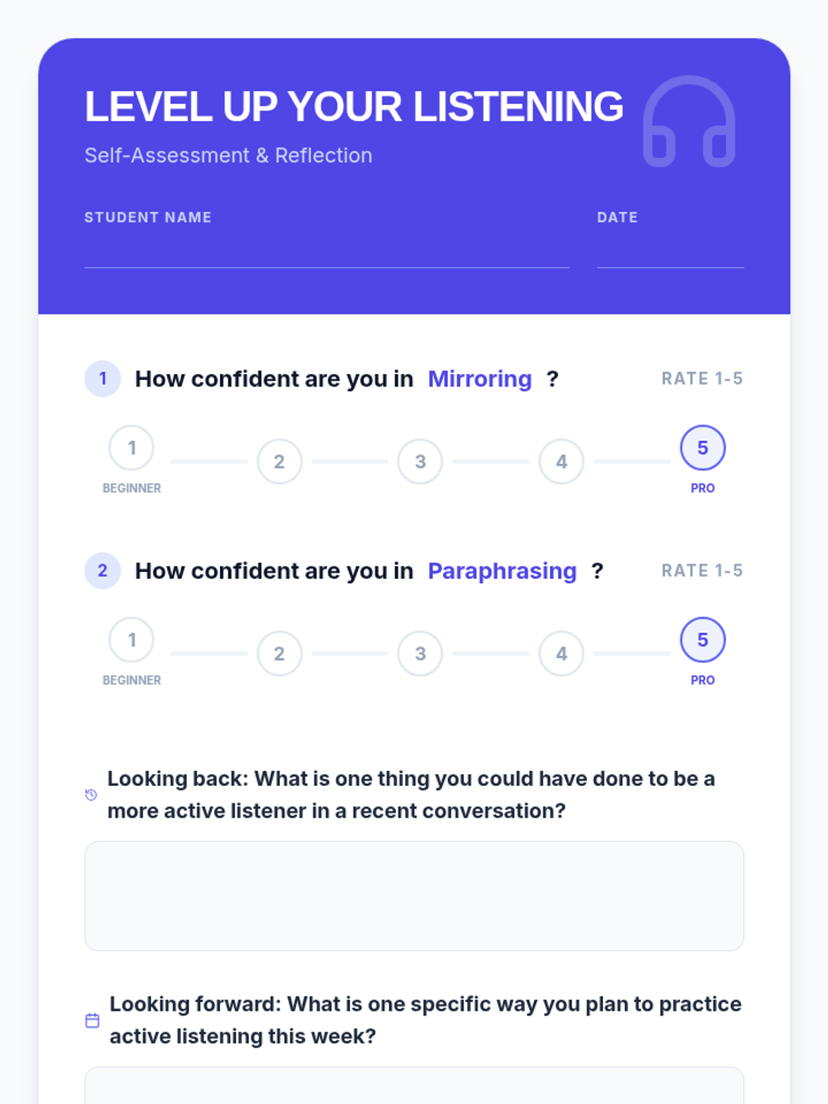 Developing advanced listening skills, including paraphrasing and validating others' perspectives in English.