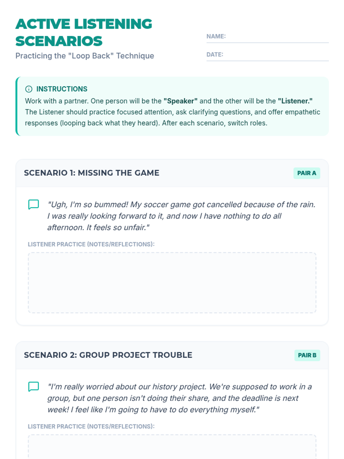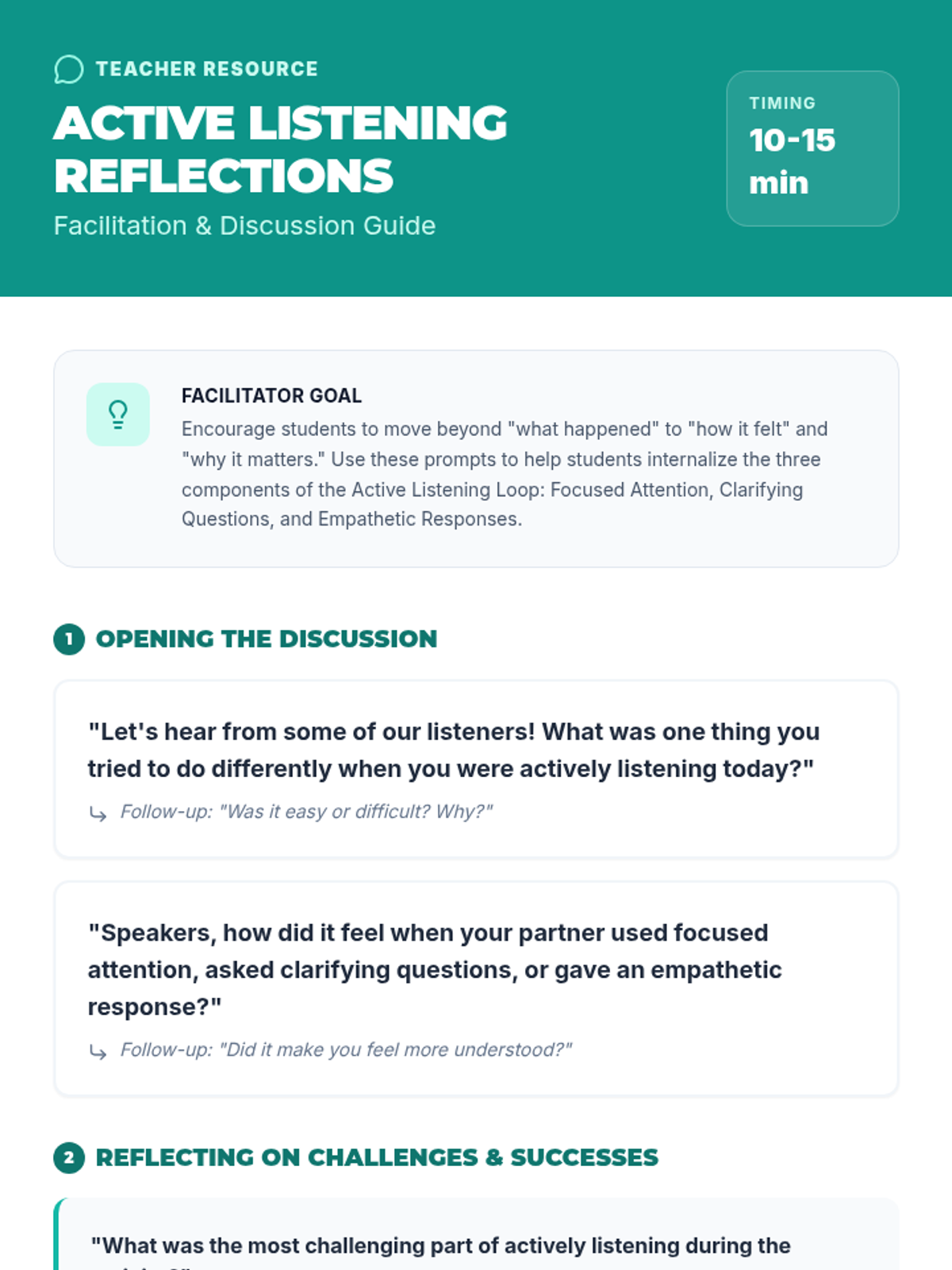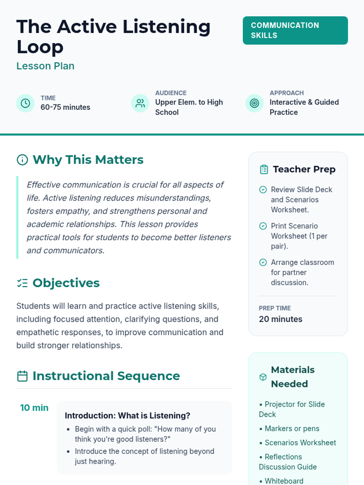 This lesson introduces students to active listening through the 'Active Listening Loop,' focusing on focused attention, clarifying questions, and empathetic responses to improve communication and relationships.