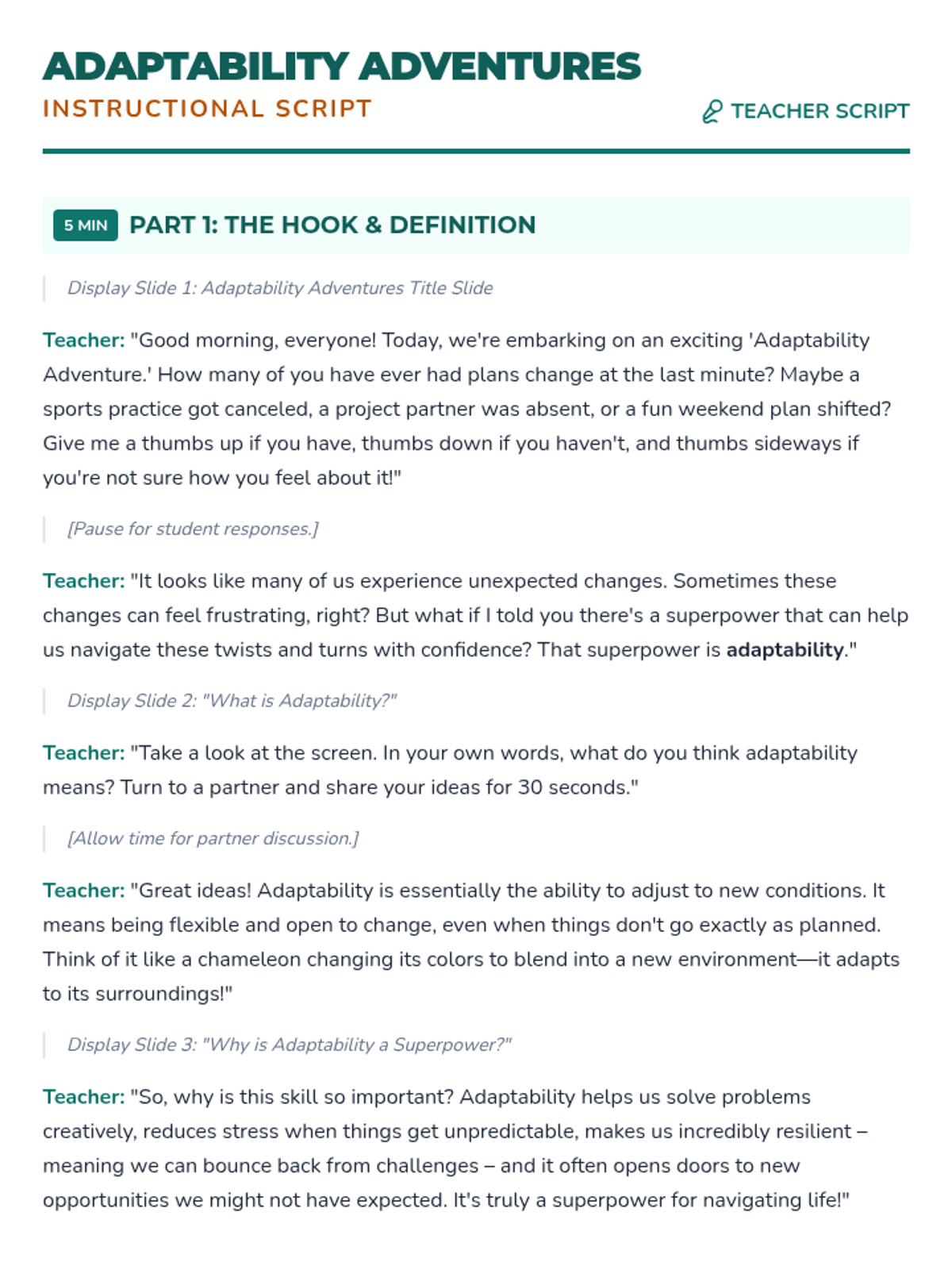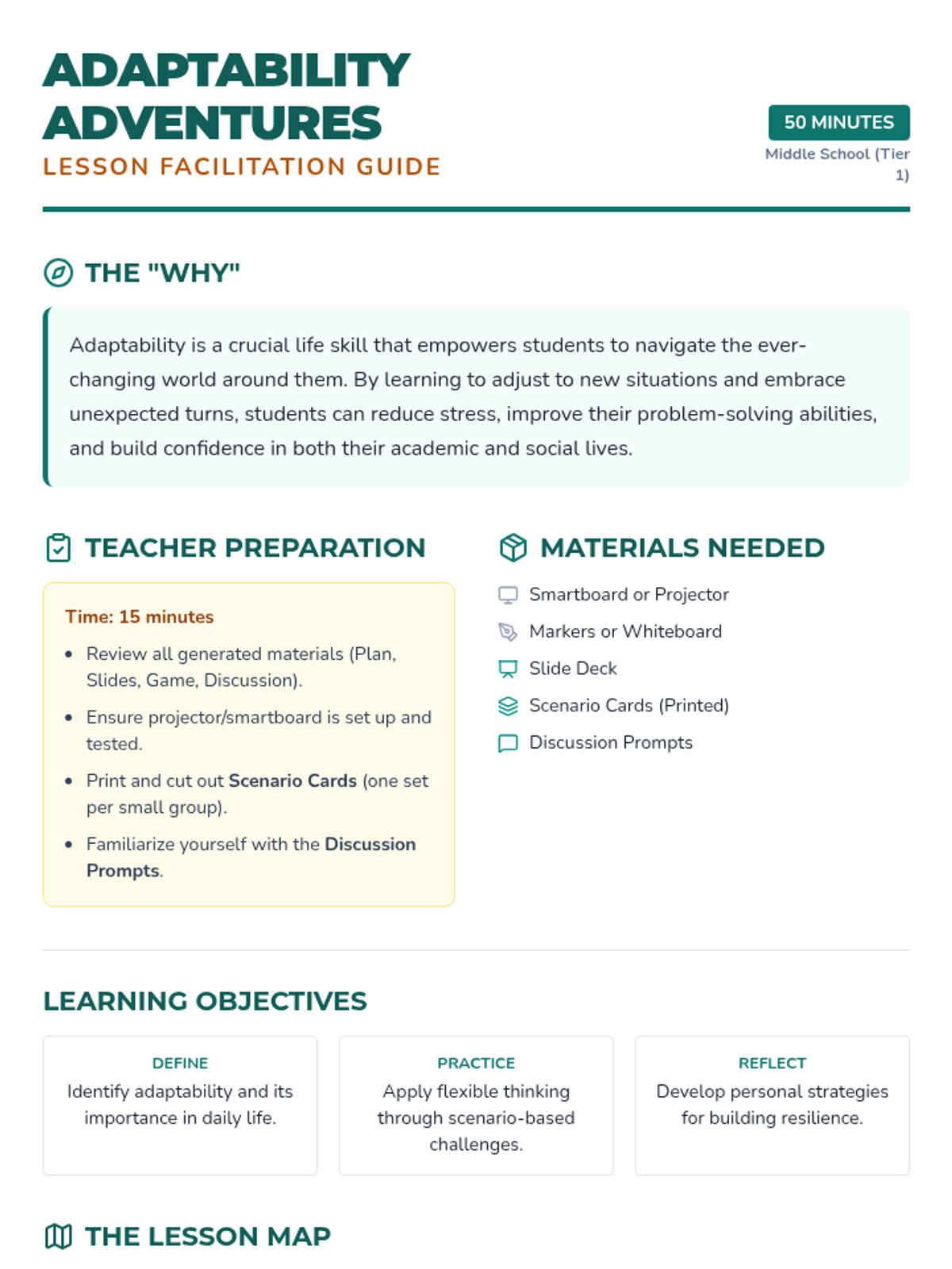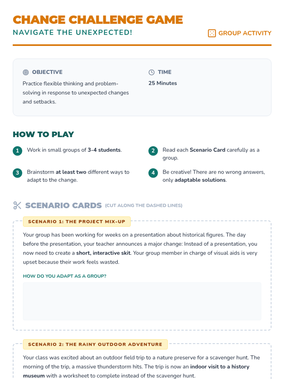 A 50-minute lesson for middle schoolers that uses scenarios and games to teach the importance of adaptability and flexible thinking.