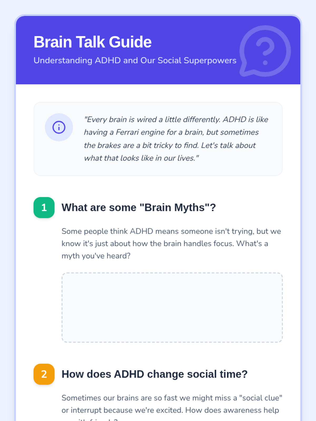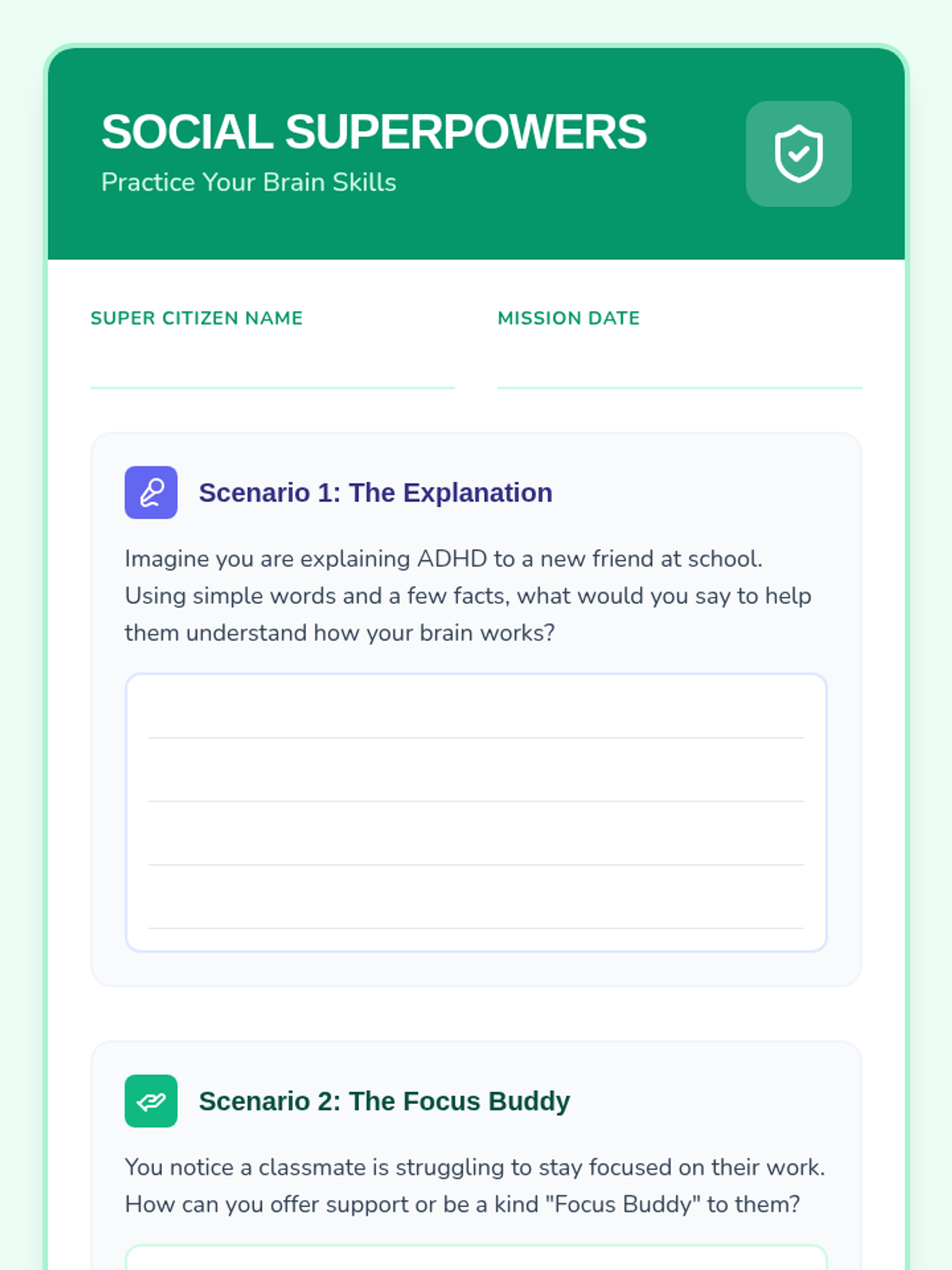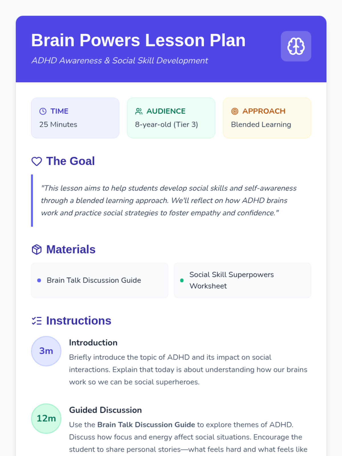 A targeted Tier 3 lesson for an 8-year-old boy focused on ADHD awareness and social skill development through reflection and scenario-based practice.