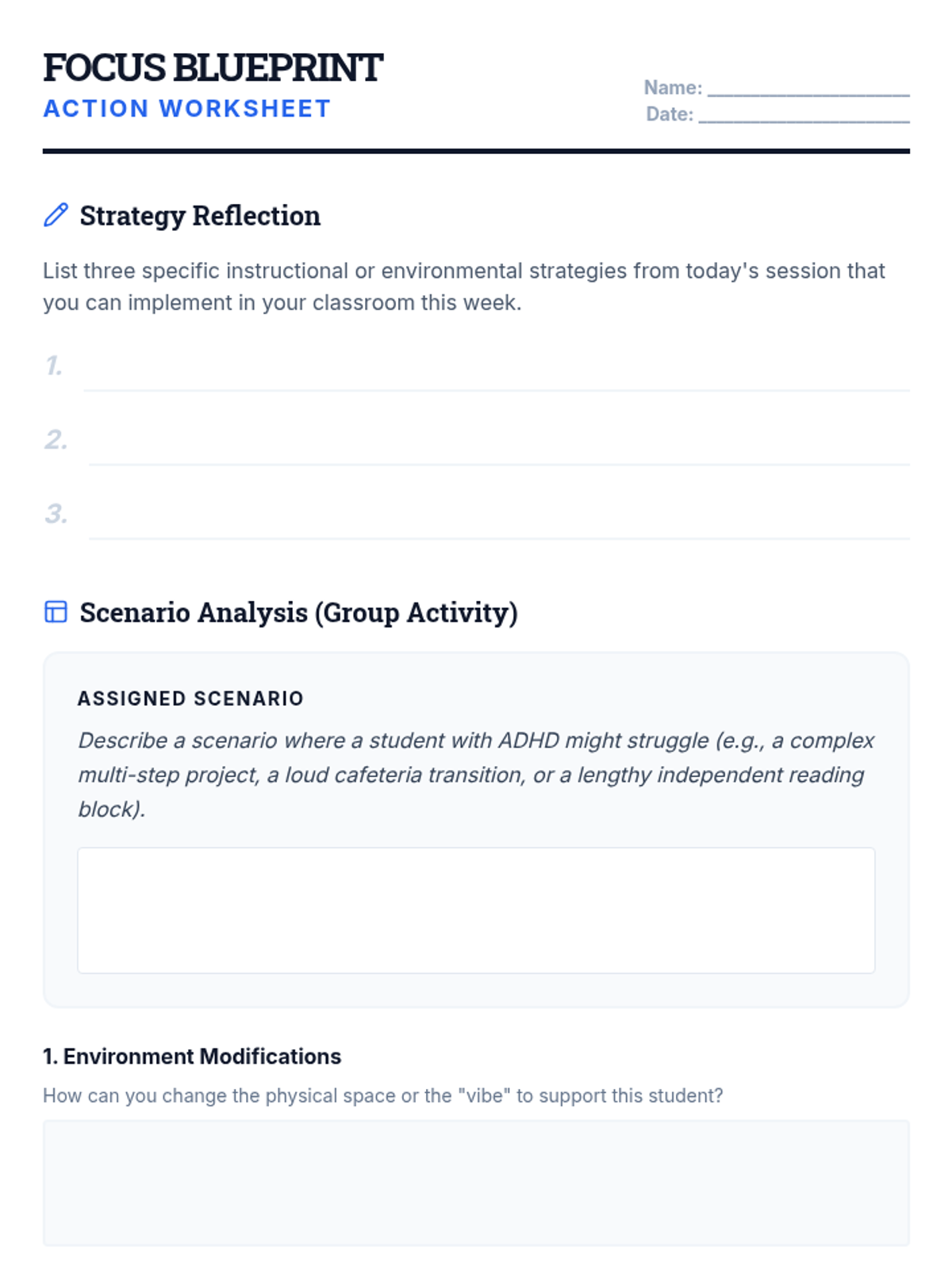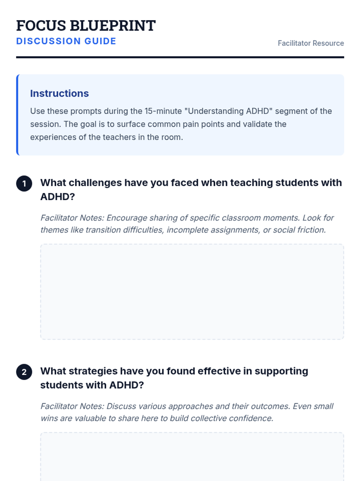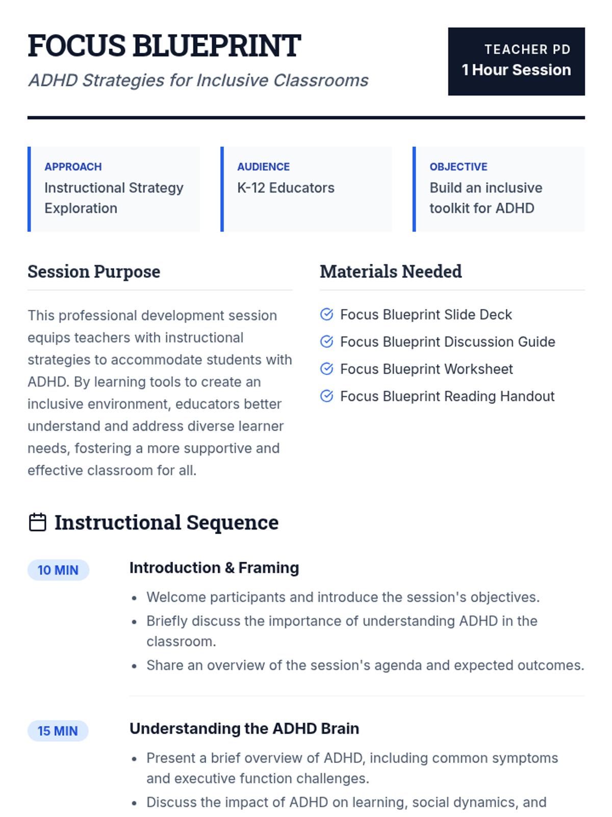 A professional development session for educators focused on practical instructional strategies and classroom environment adjustments to support students with ADHD. Teachers will explore structured routines, clear communication techniques, and positive reinforcement models to foster an inclusive learning space.