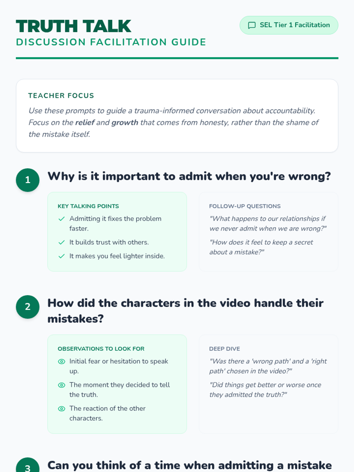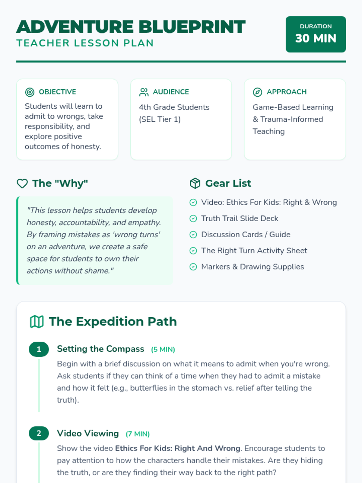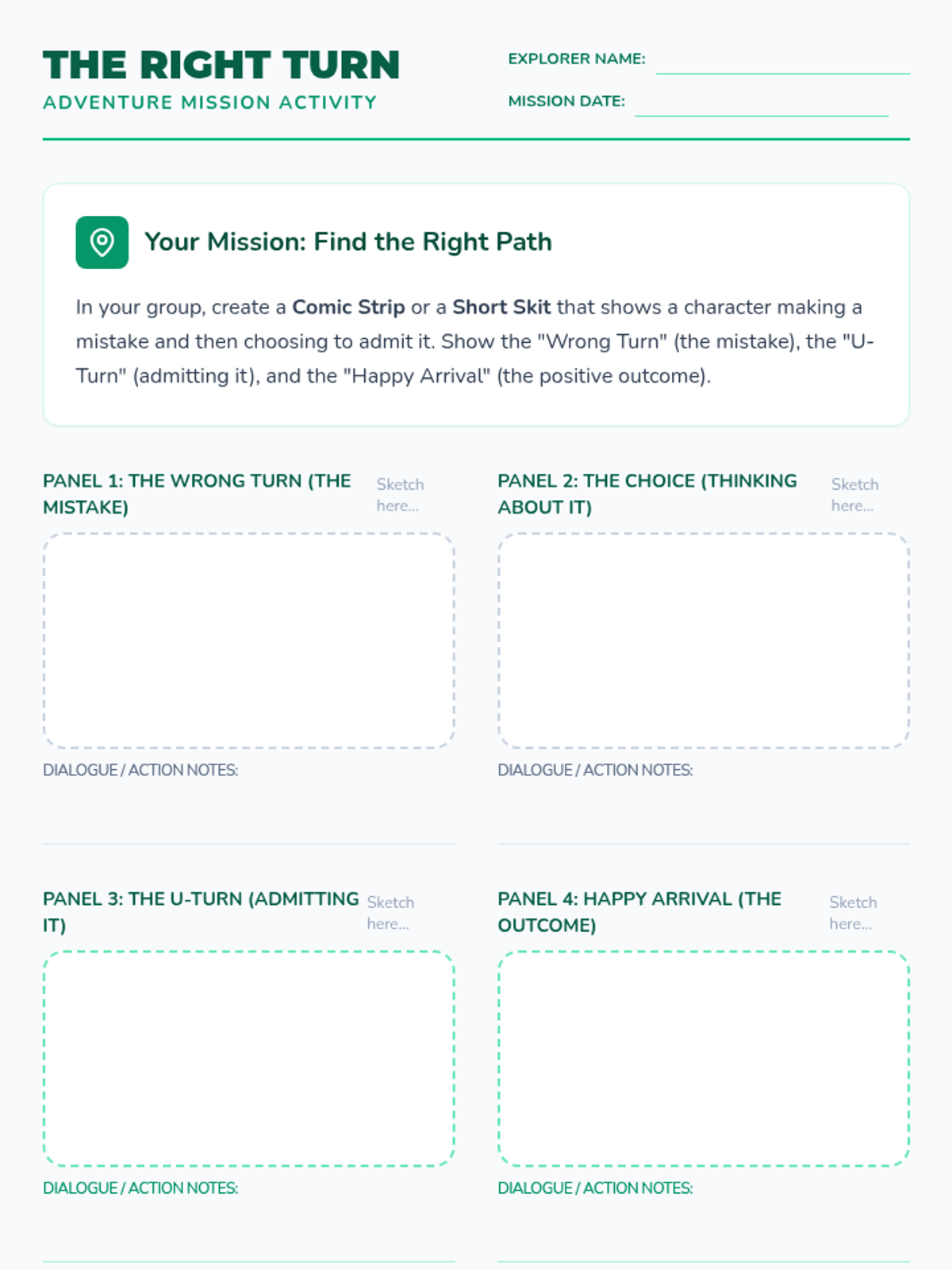 A SEL lesson for 4th graders on the importance of admitting mistakes, taking responsibility, and learning from 'wrong turns' on life's journey.