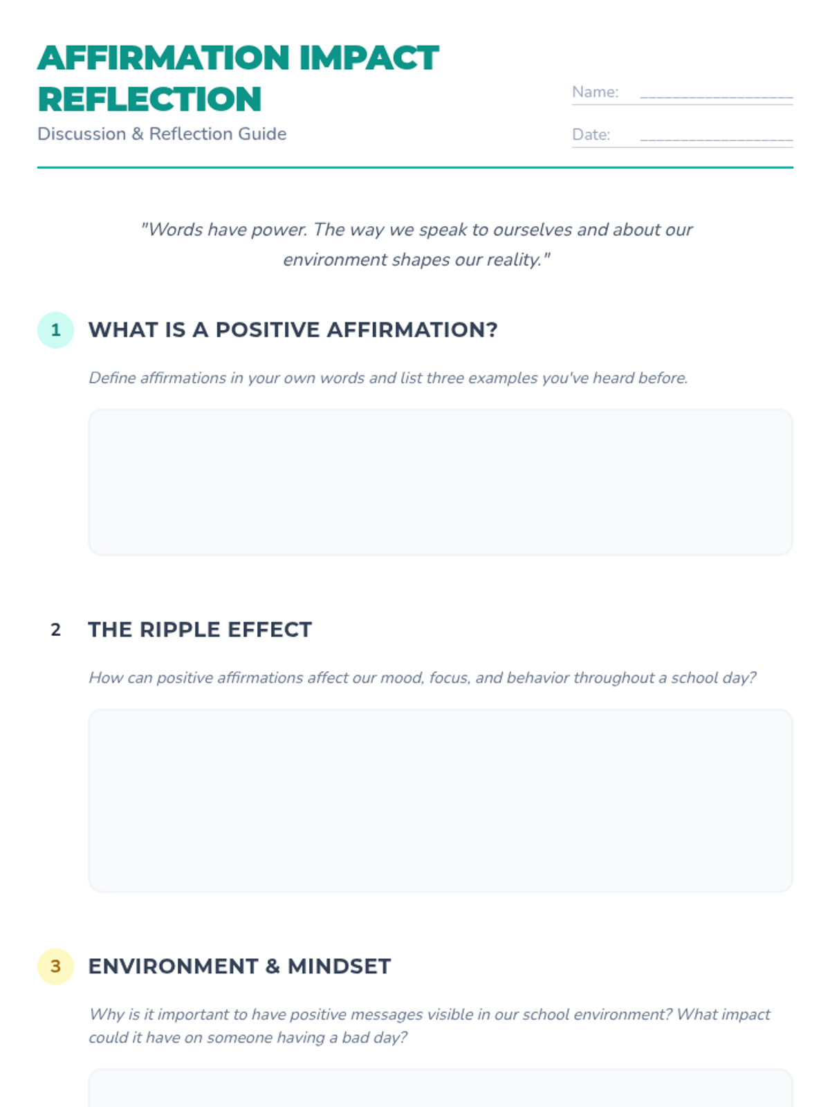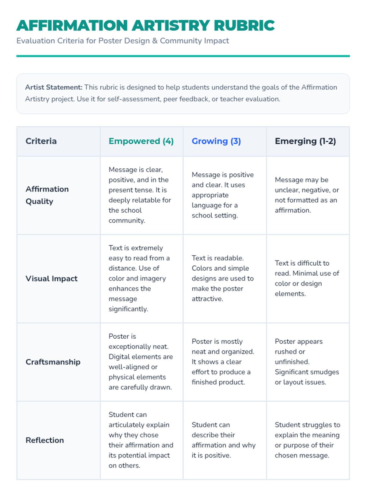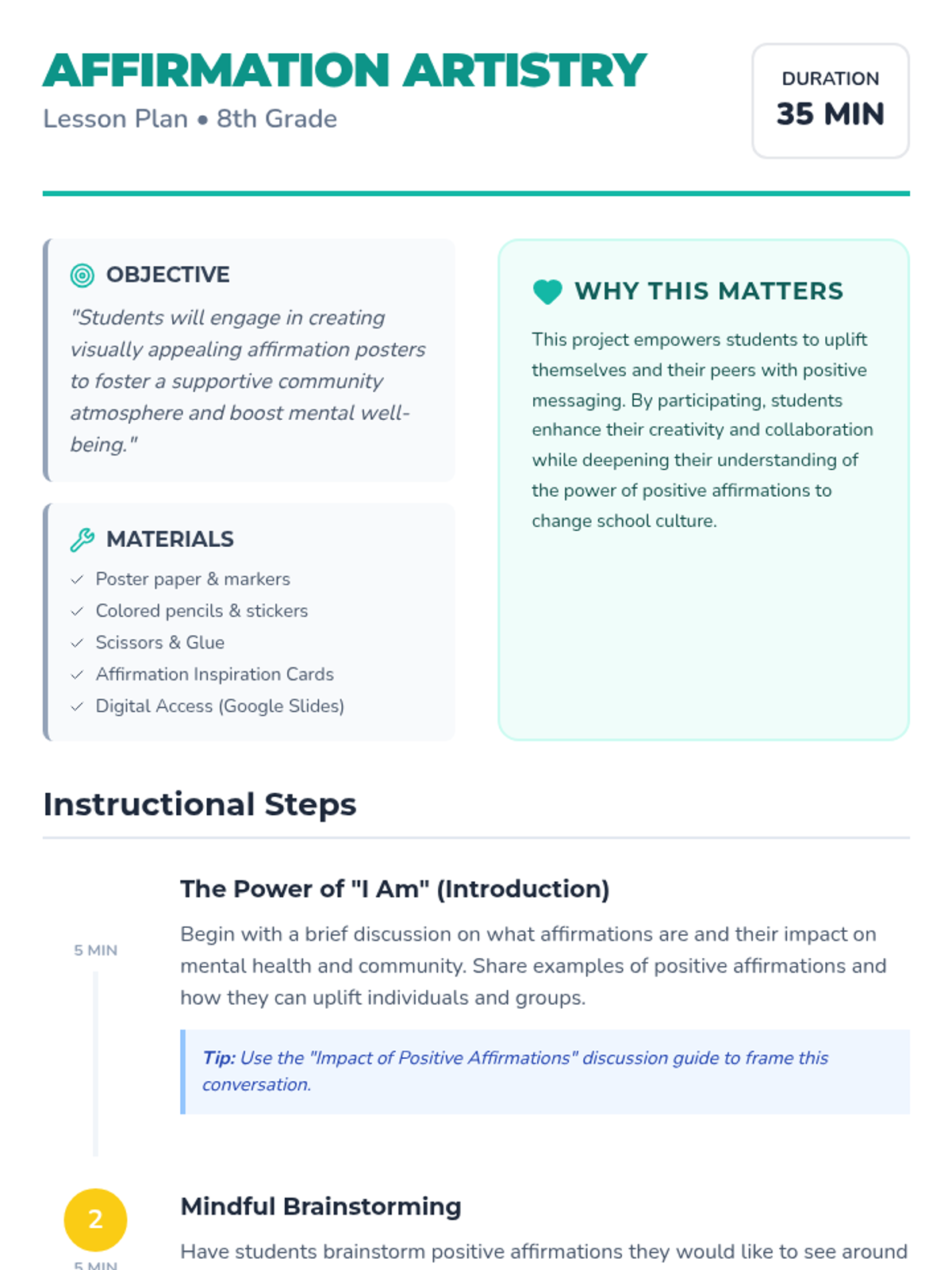 A creative and empowering lesson where 8th-grade students design affirmation posters to foster a supportive school community and boost mental well-being.