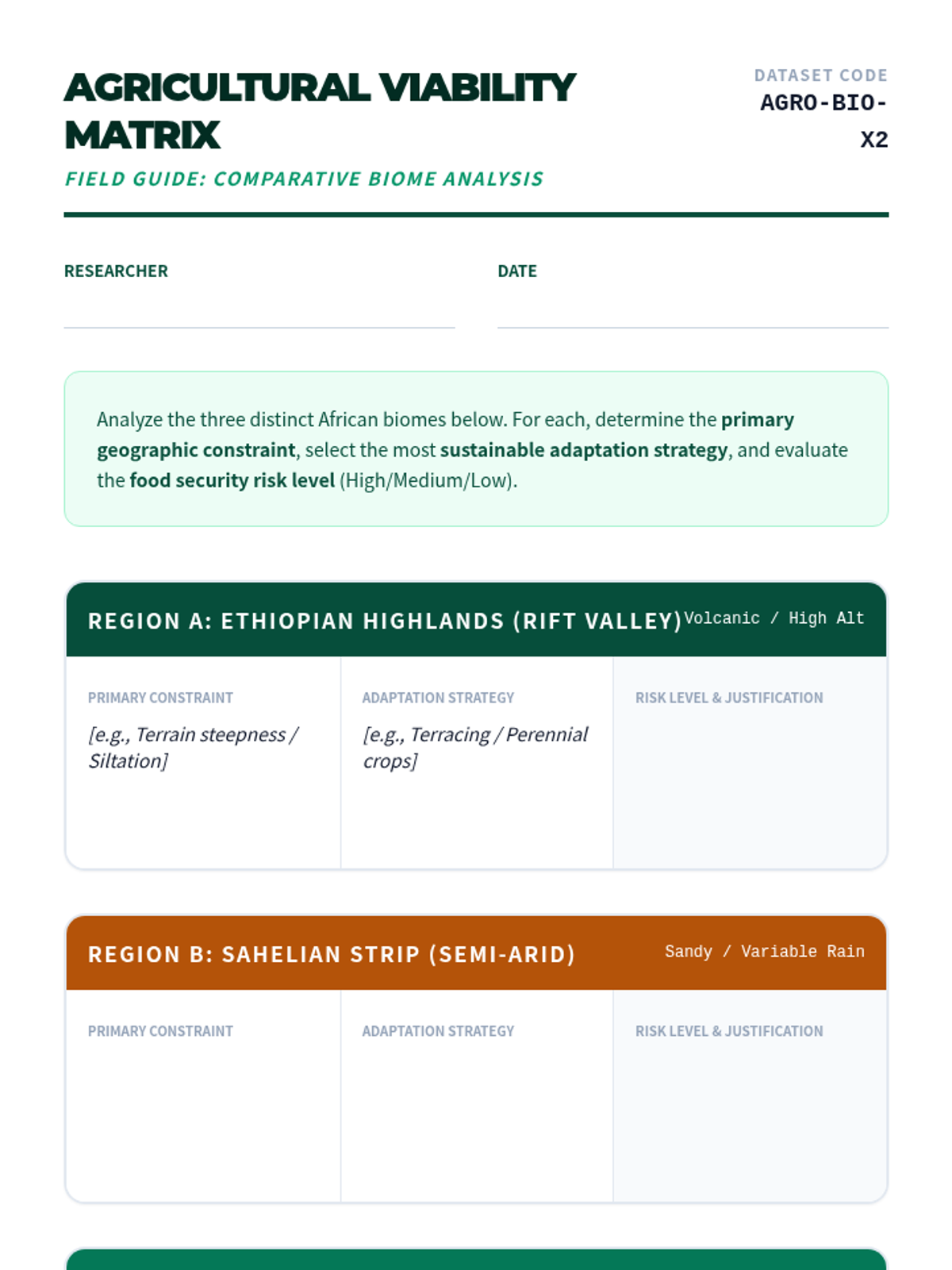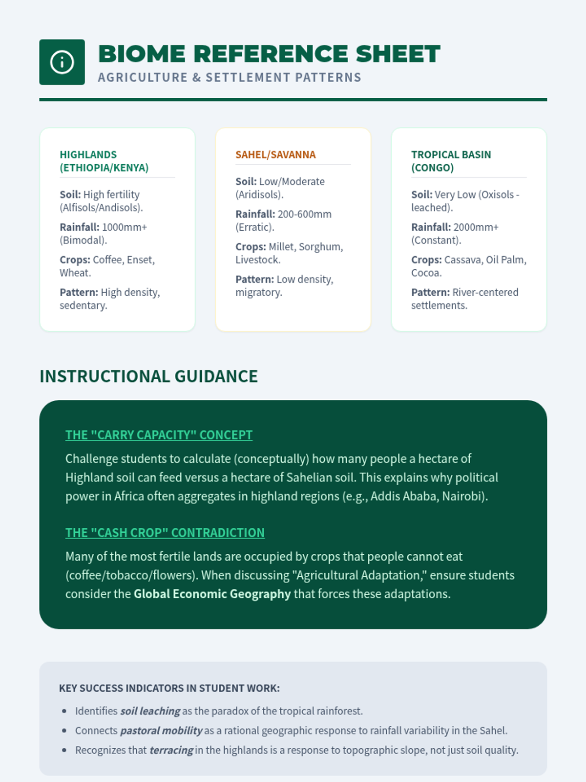 Compare rural settlement patterns and agricultural adaptations across diverse African biomes, evaluating food security through soil and precipitation analysis.