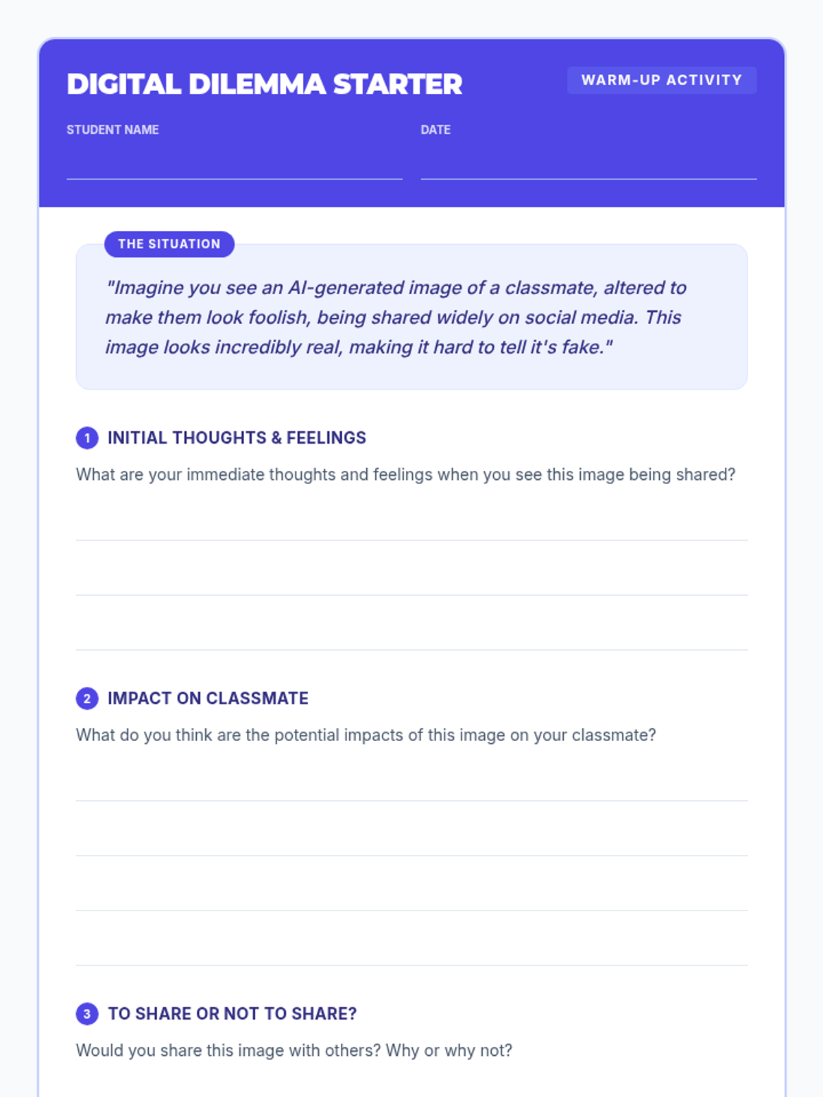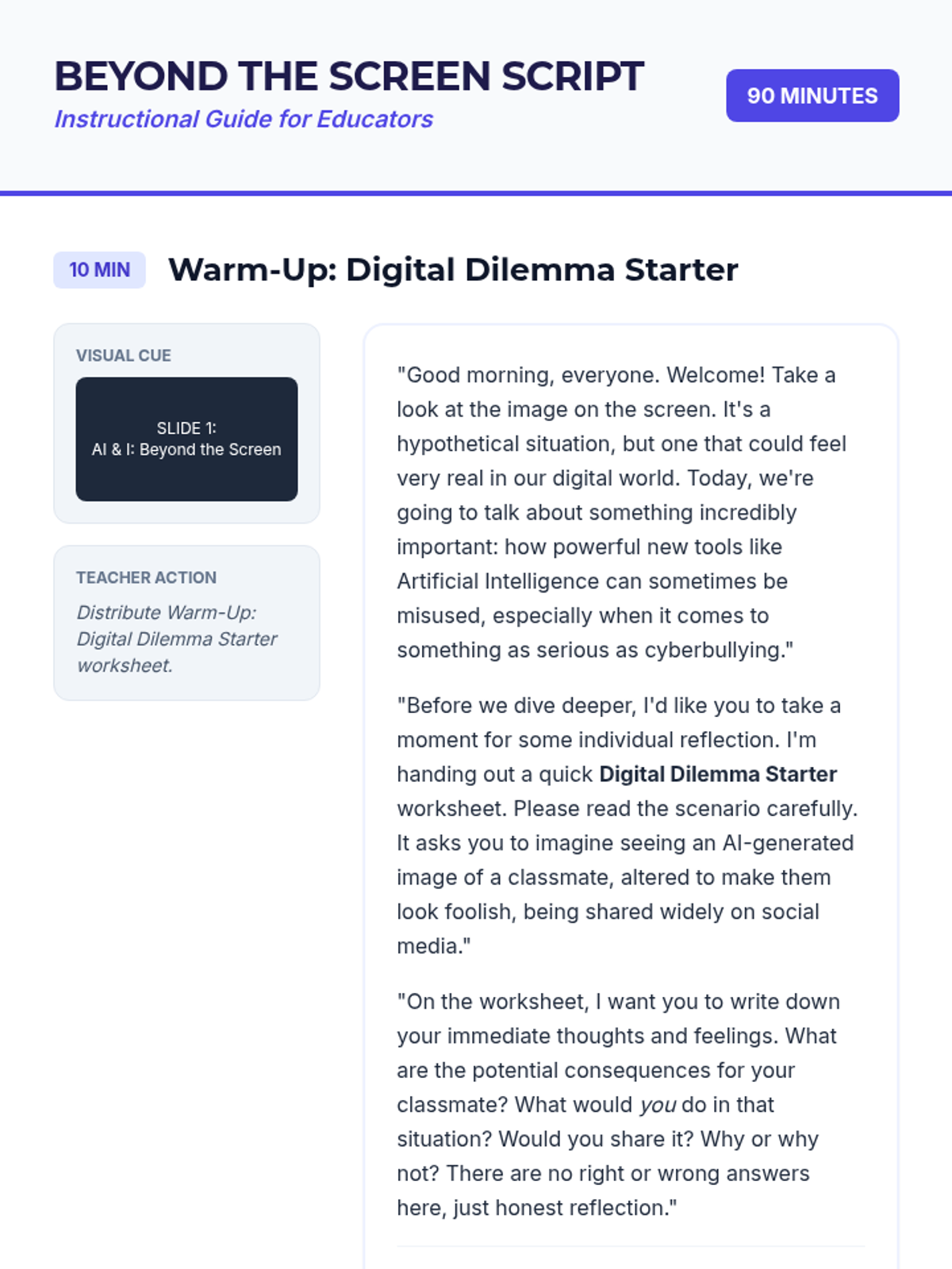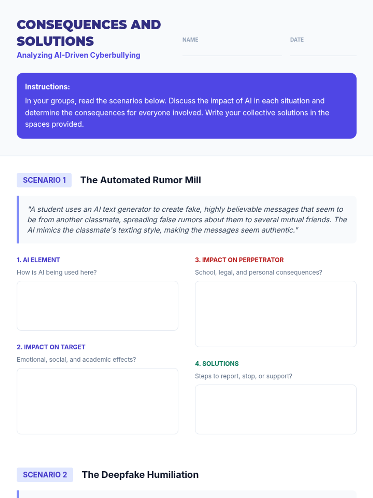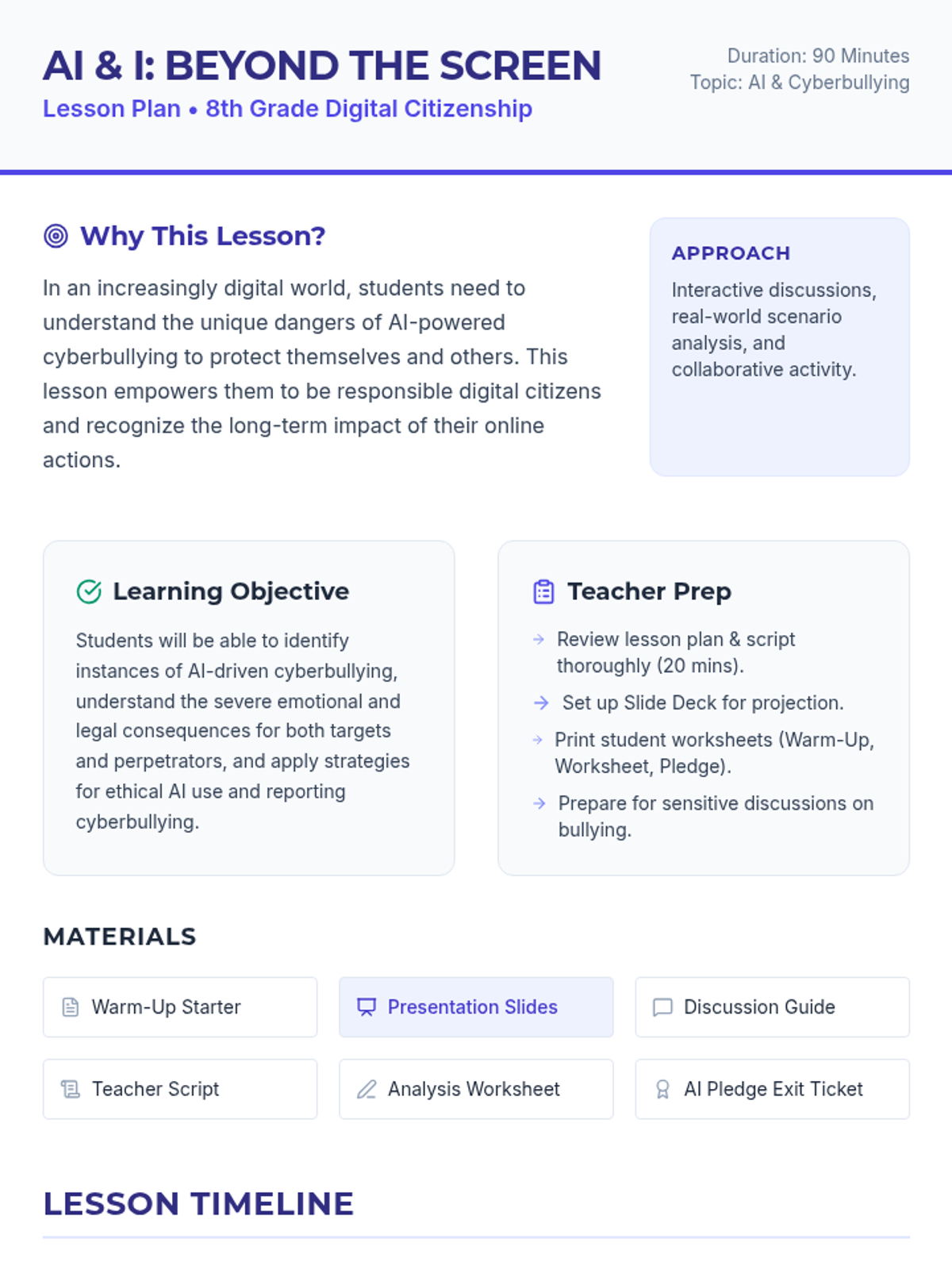 A 90-minute lesson for 8th-grade students exploring the serious implications and real-world consequences of using AI for cyberbullying, fostering responsible digital citizenship.