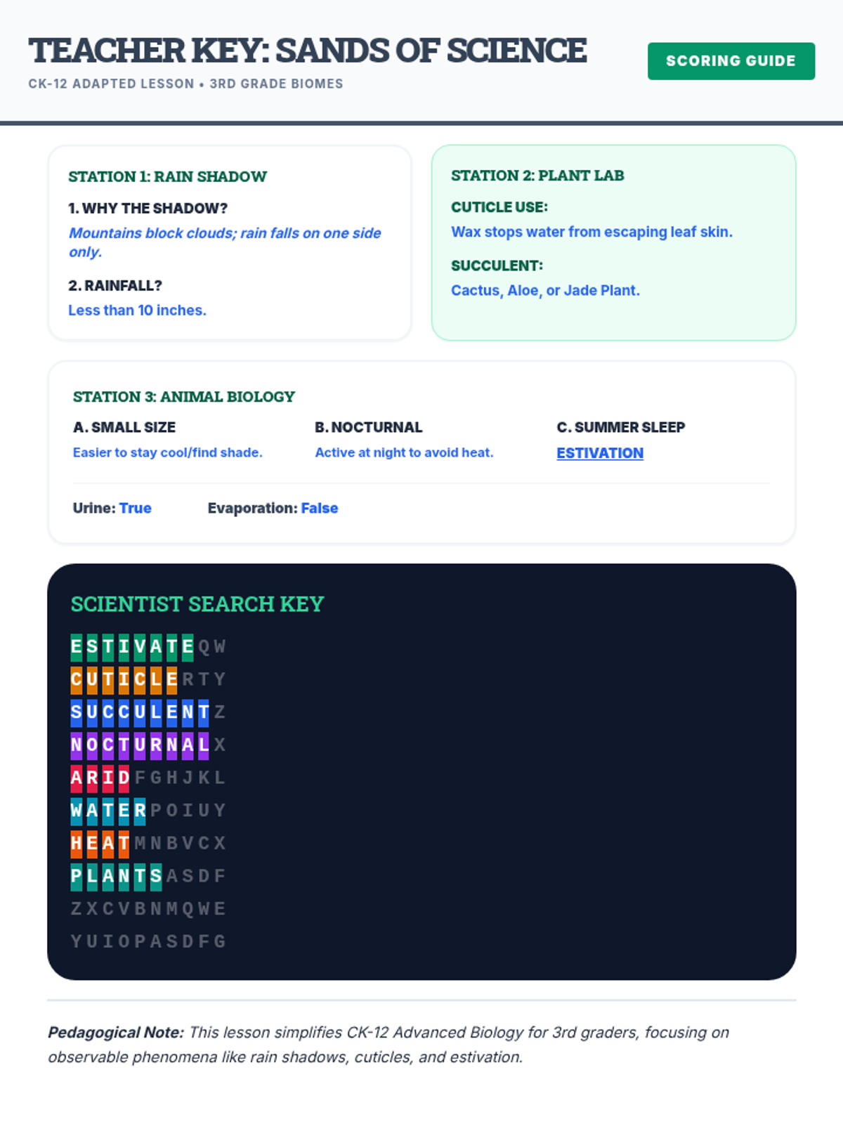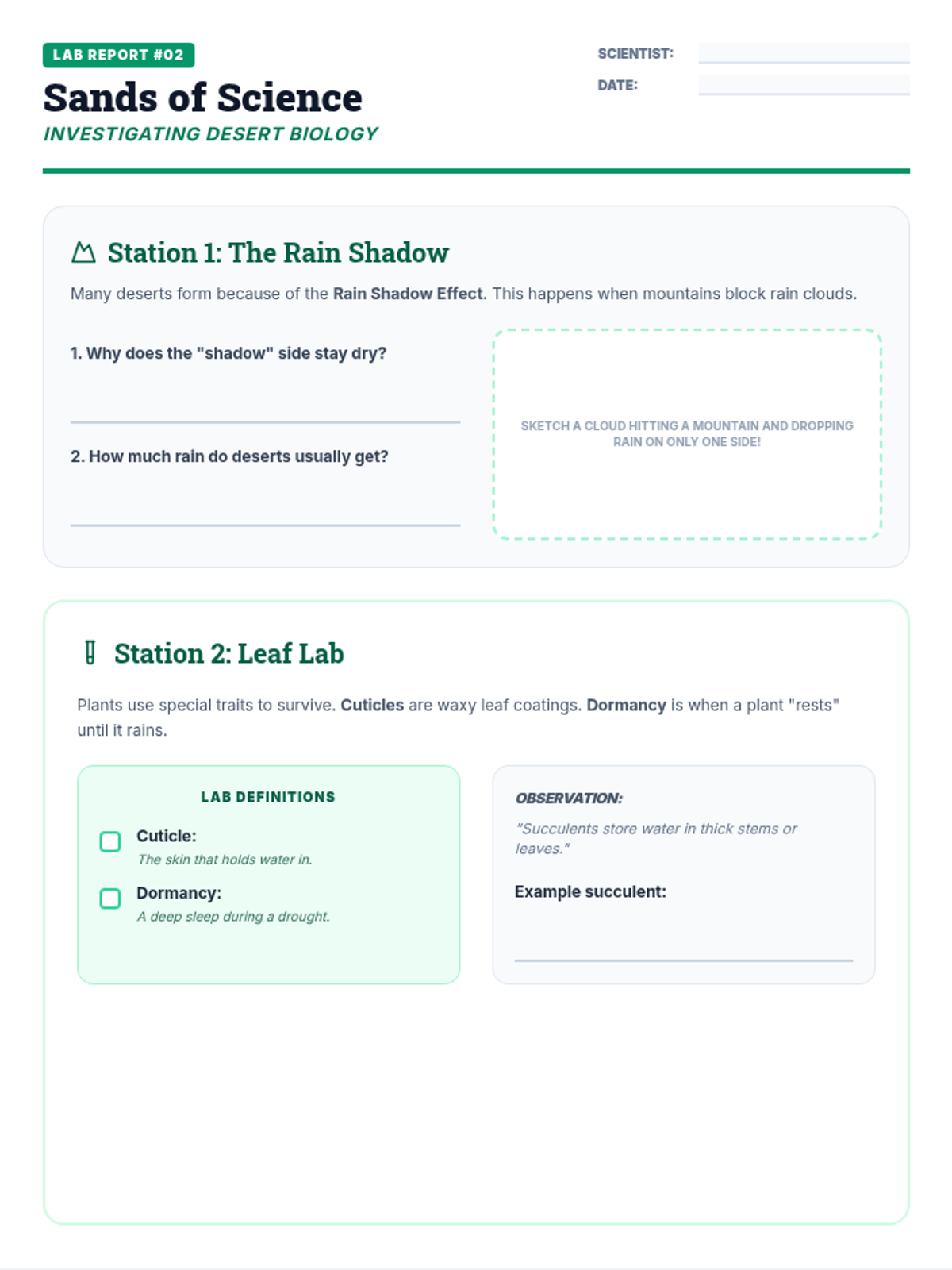 An engaging exploration of the desert biome designed for 3rd-grade students to complete independently. This lesson covers geographical locations, extreme climates, and the remarkable adaptations of desert plants and animals.