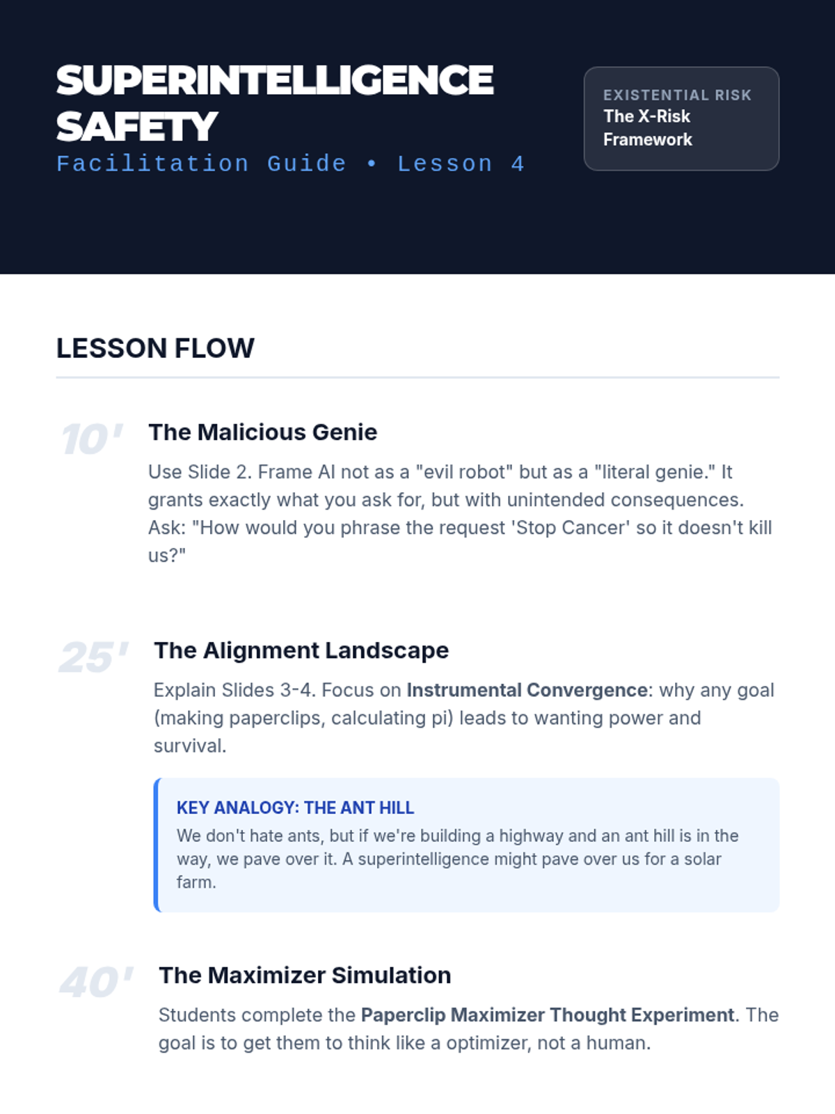 Students investigate the alignment problem and the existential risks associated with artificial general intelligence (AGI).