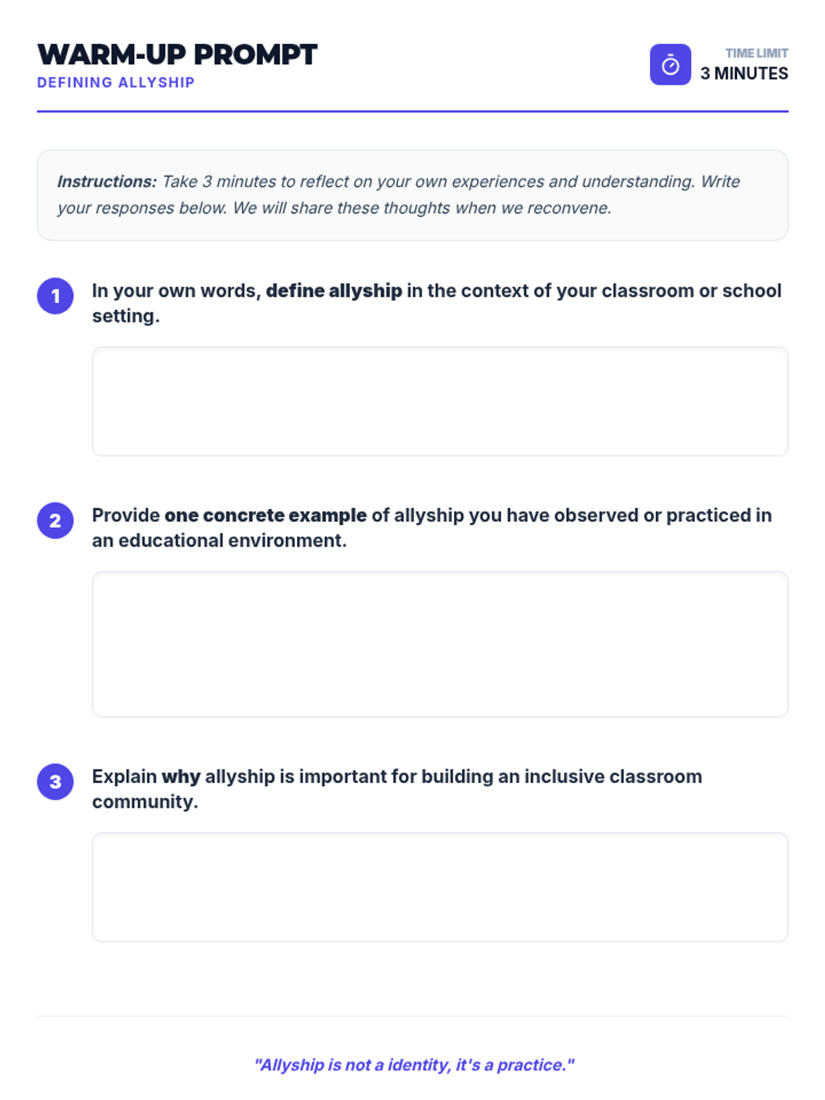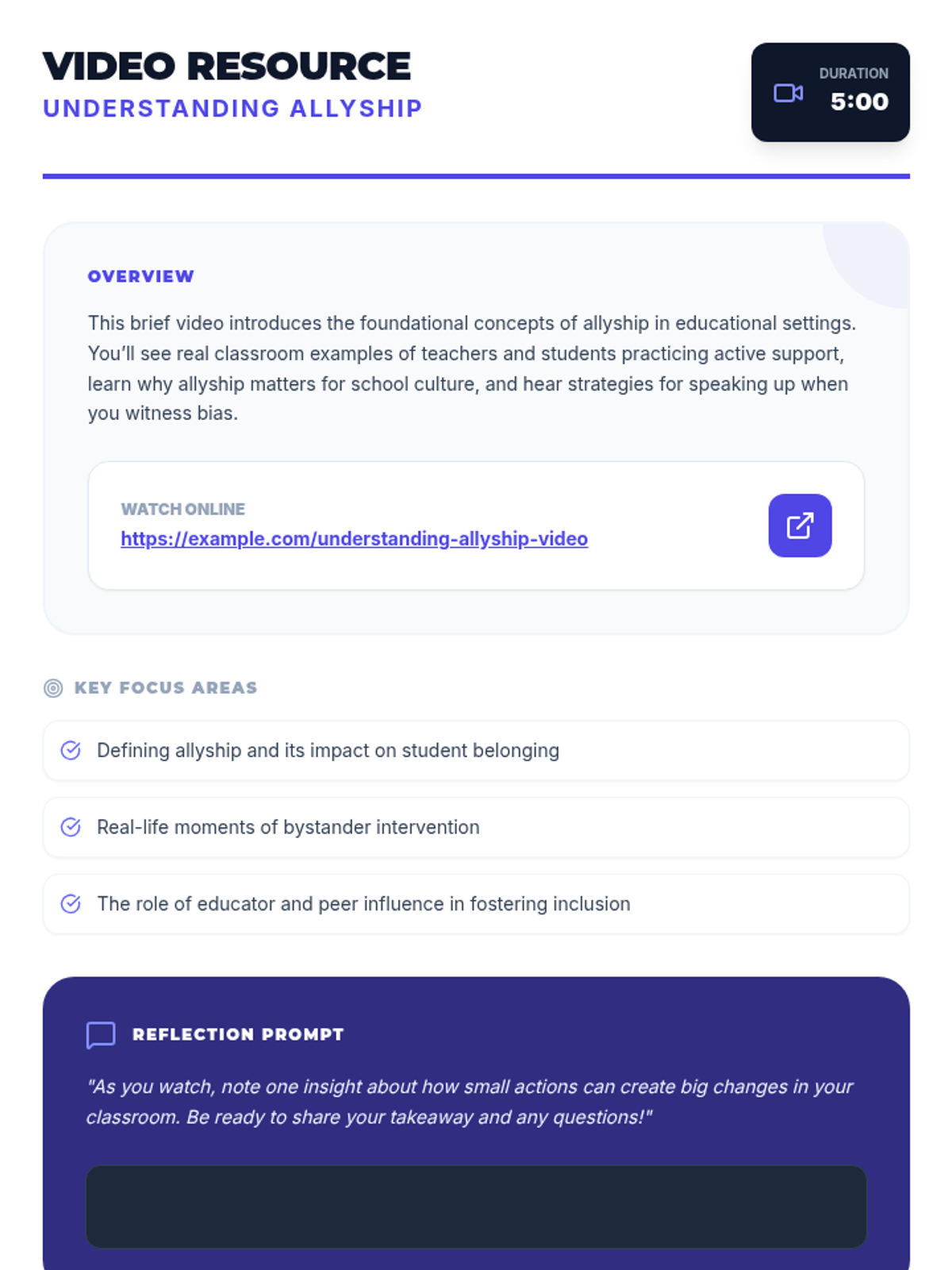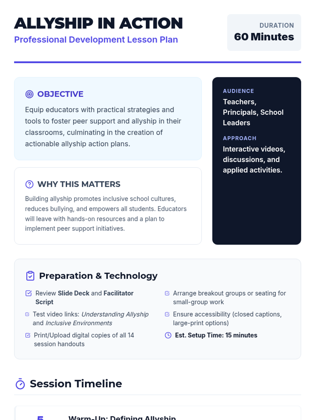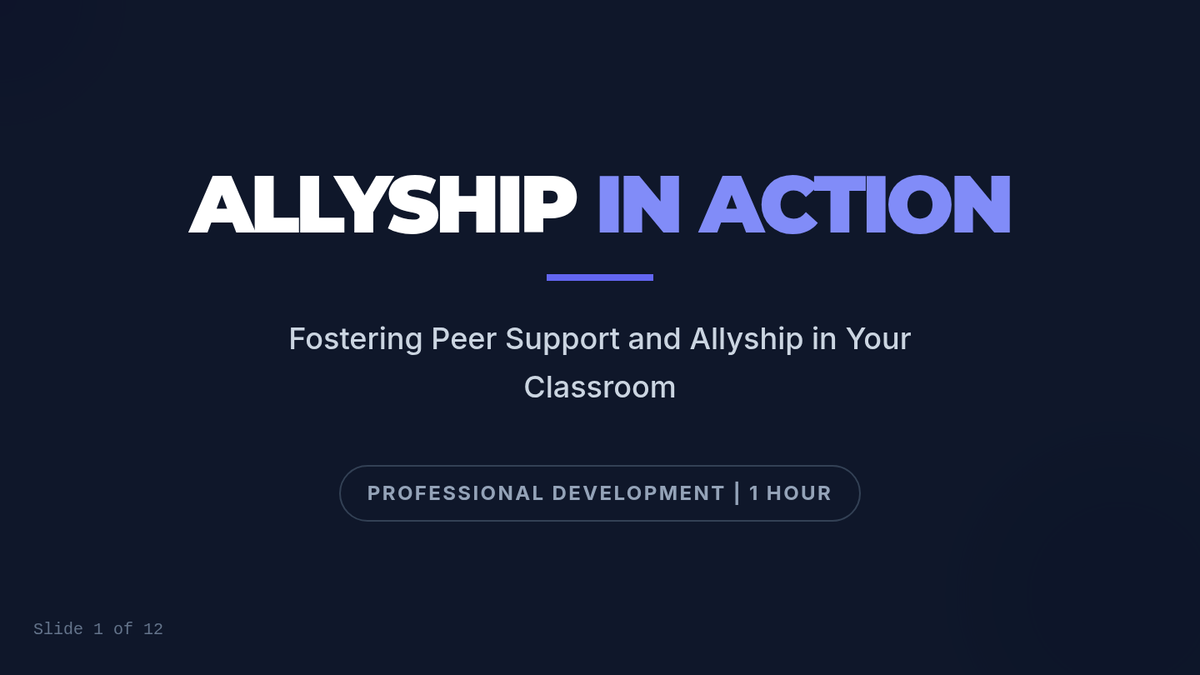 A 1-hour professional development session for educators to explore strategies for fostering peer support and allyship among students, culminating in actionable classroom plans.
