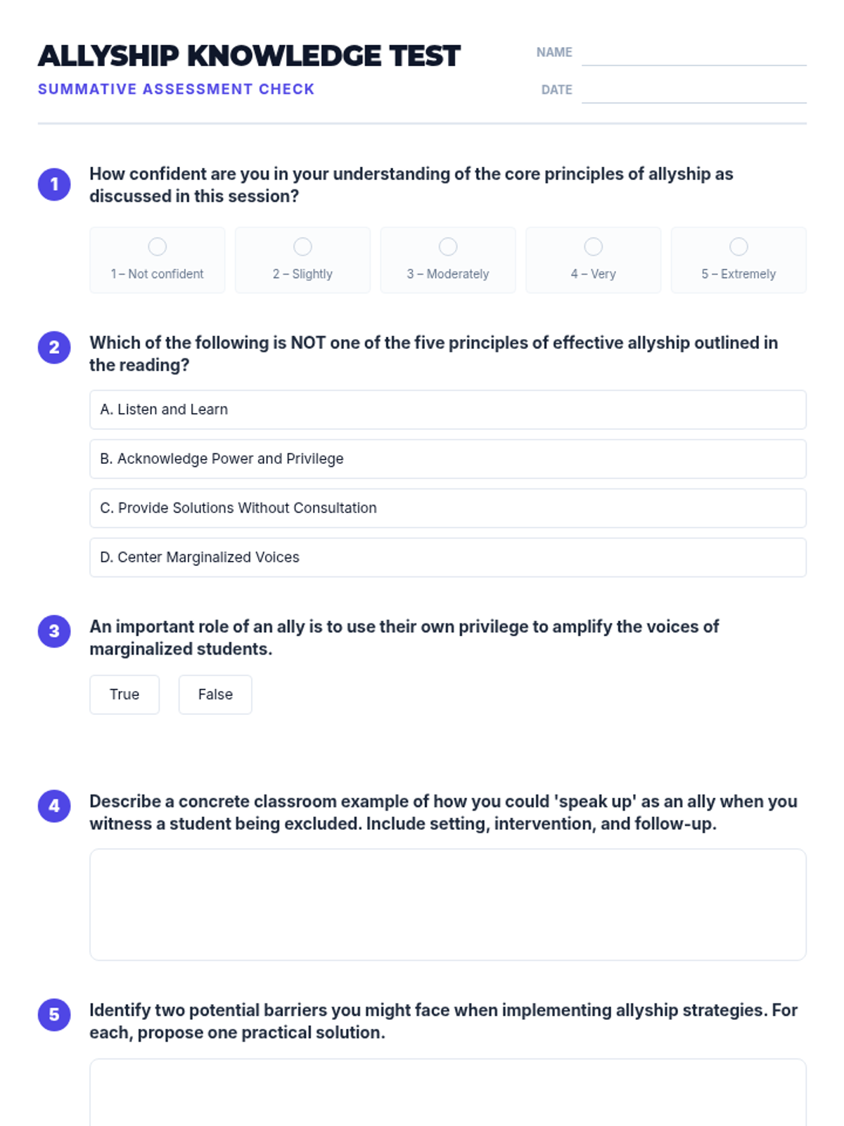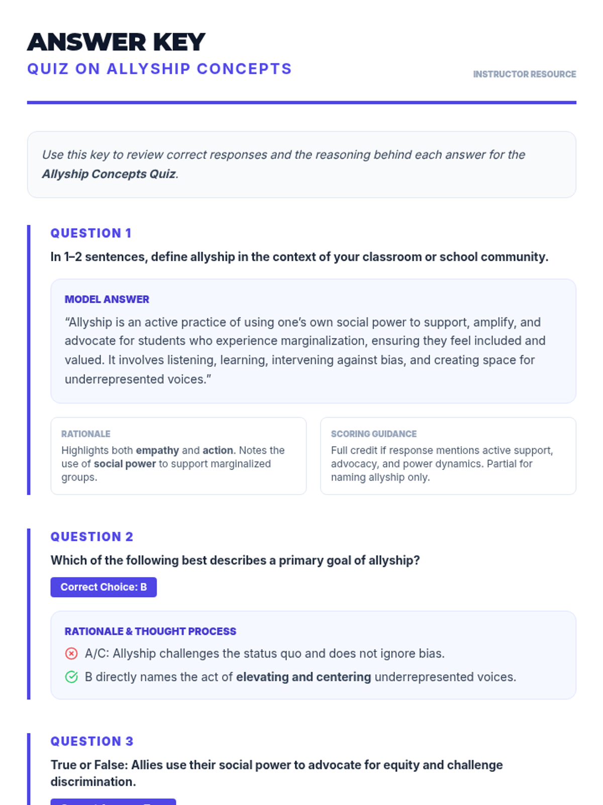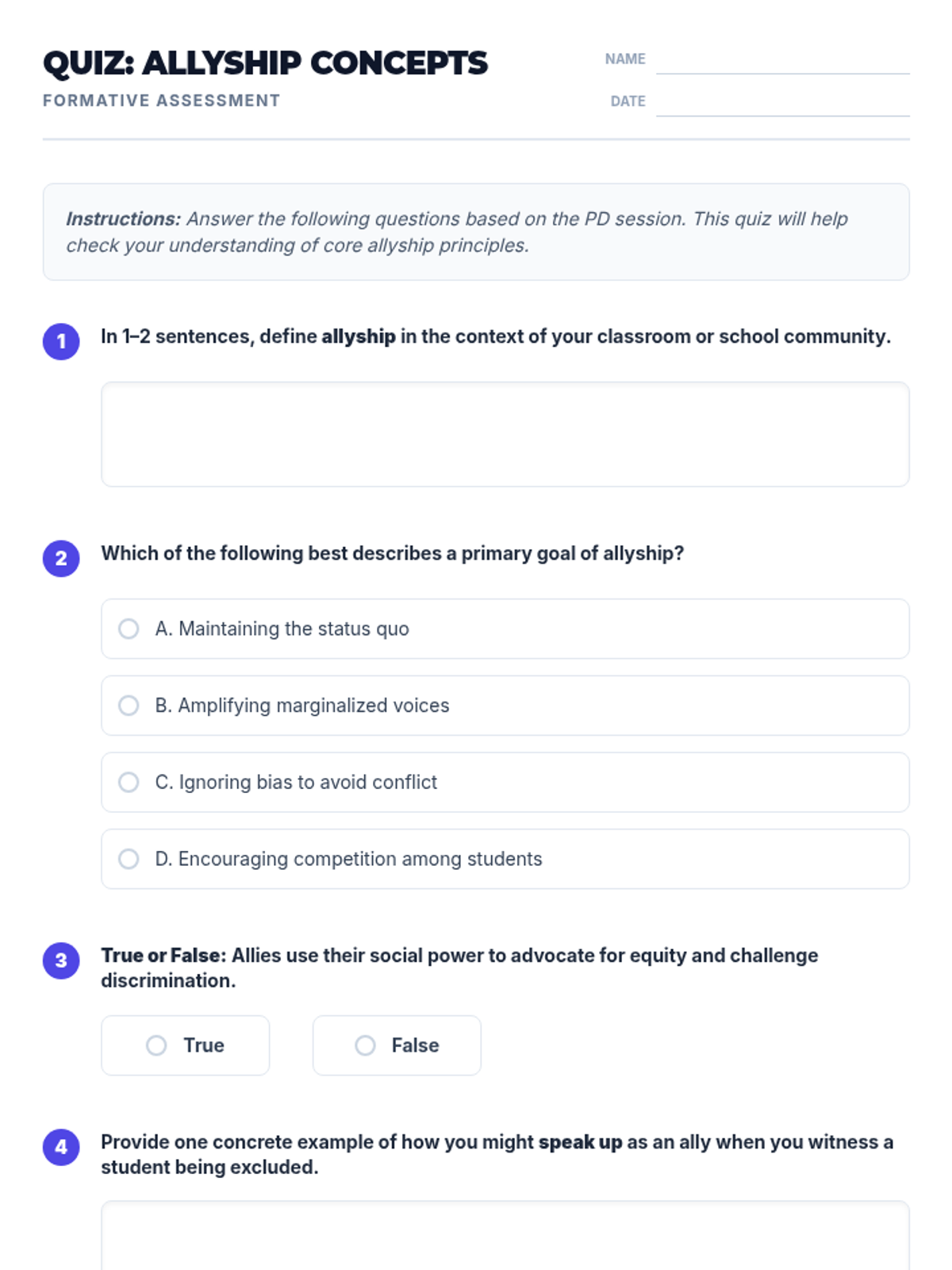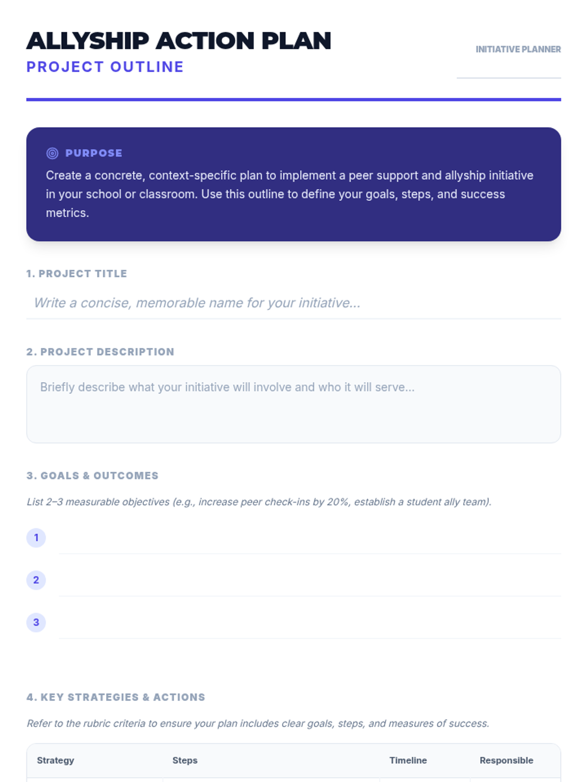A 1-hour professional development session for educators to explore strategies for fostering peer support and allyship among students, culminating in actionable classroom plans.