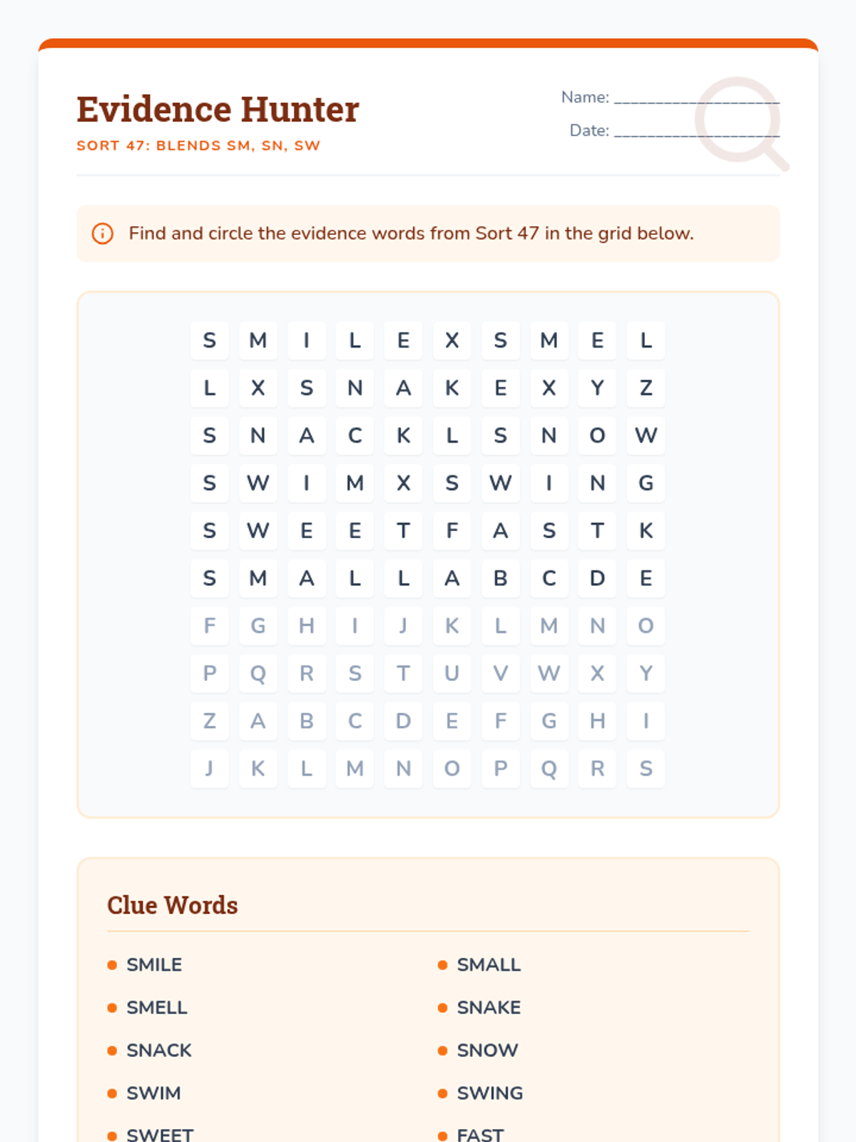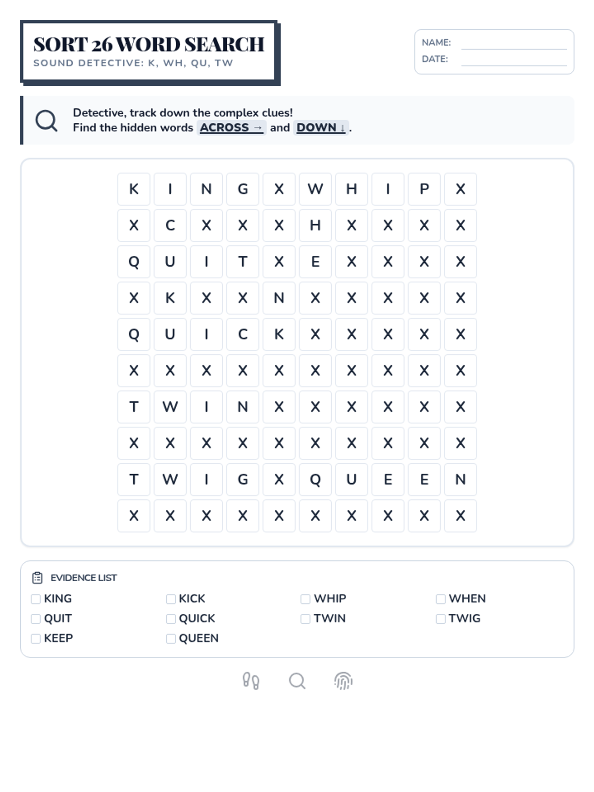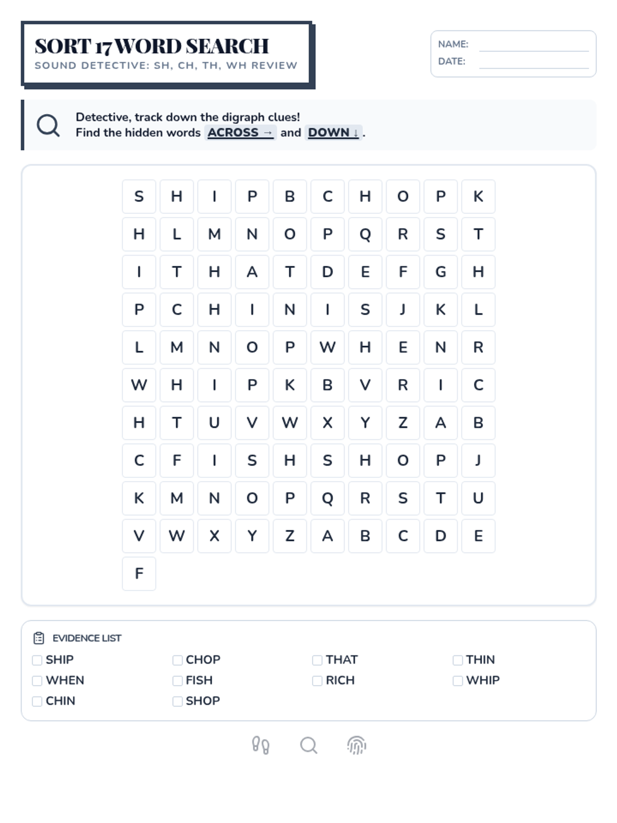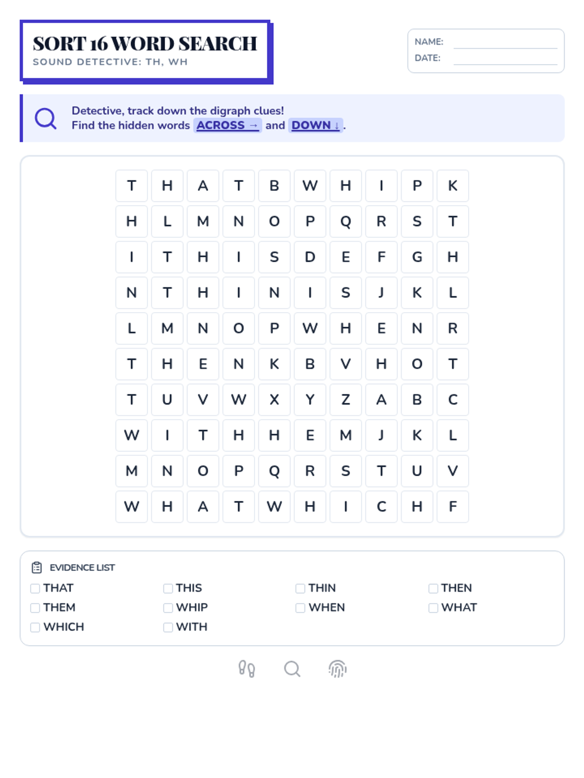 Detectives investigate how two letters work together to create new sounds (digraphs) or blend their sounds together (blends).