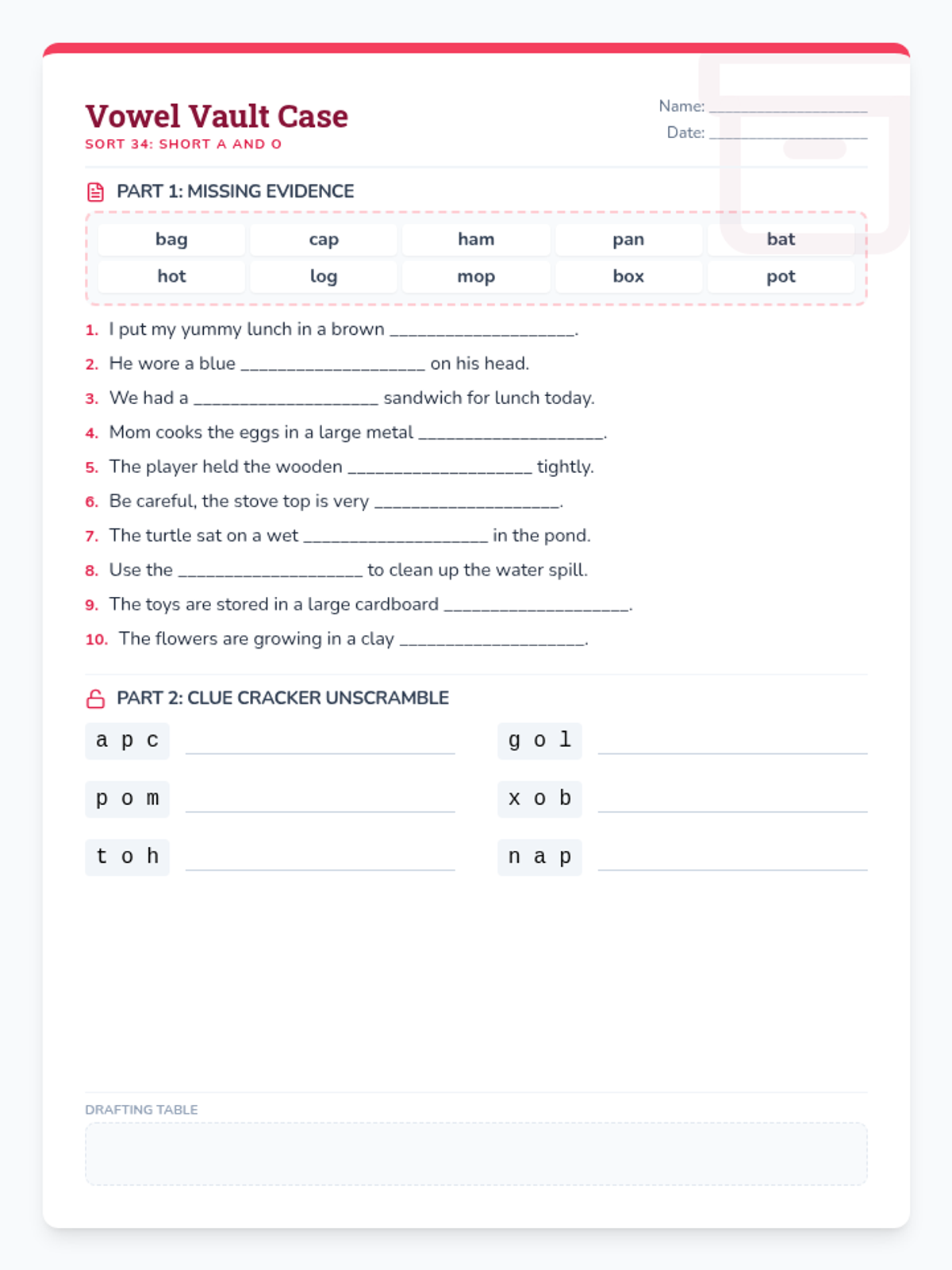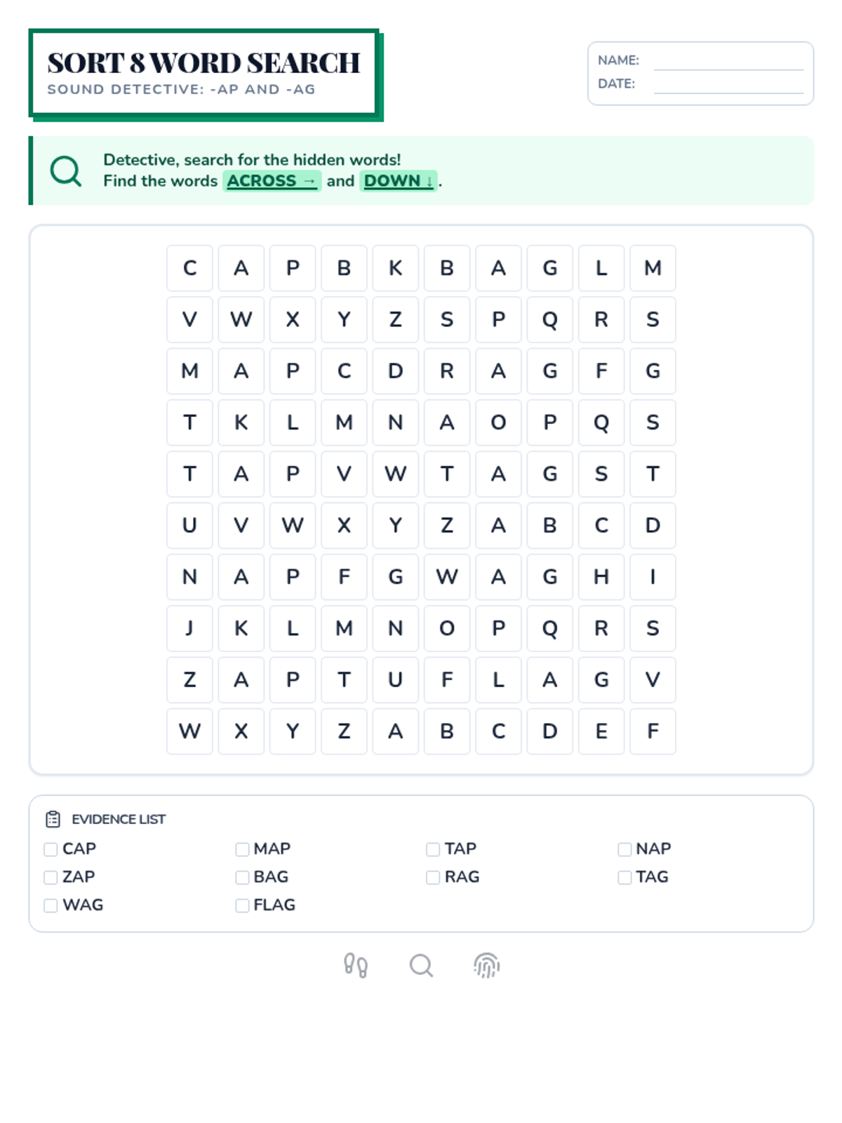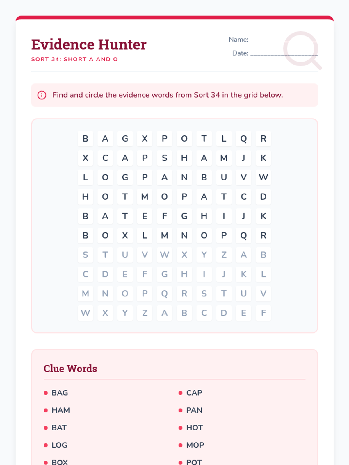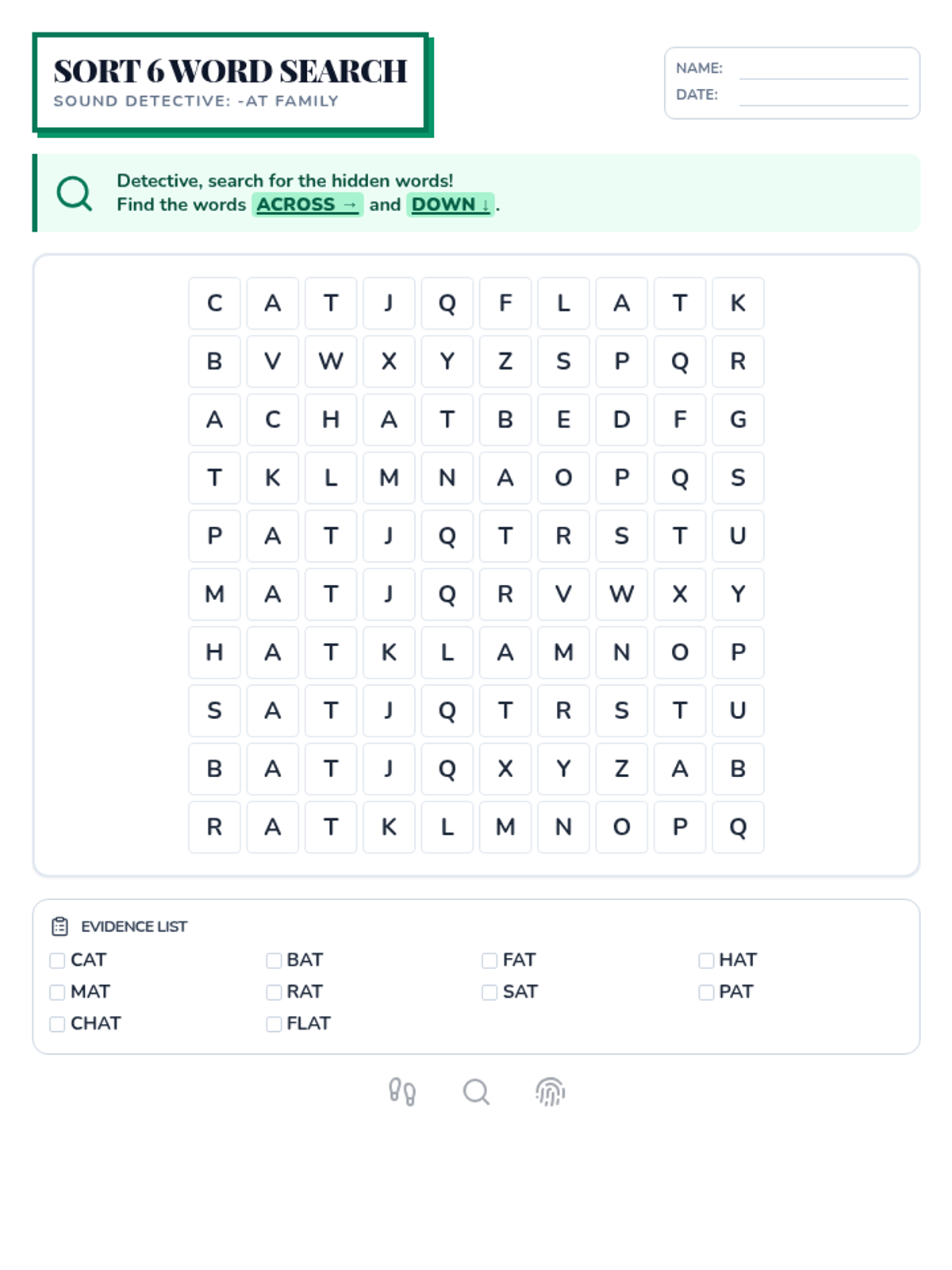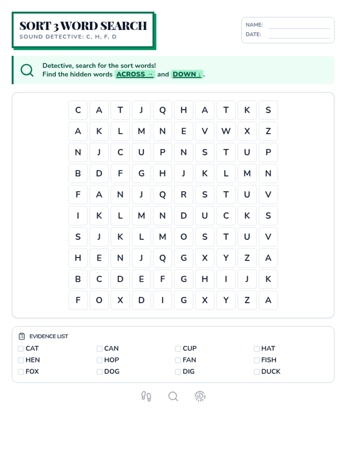 Students learn to decode CVC words by identifying beginning, middle, and ending sounds, treating each word as a piece of phonetic evidence to be examined.