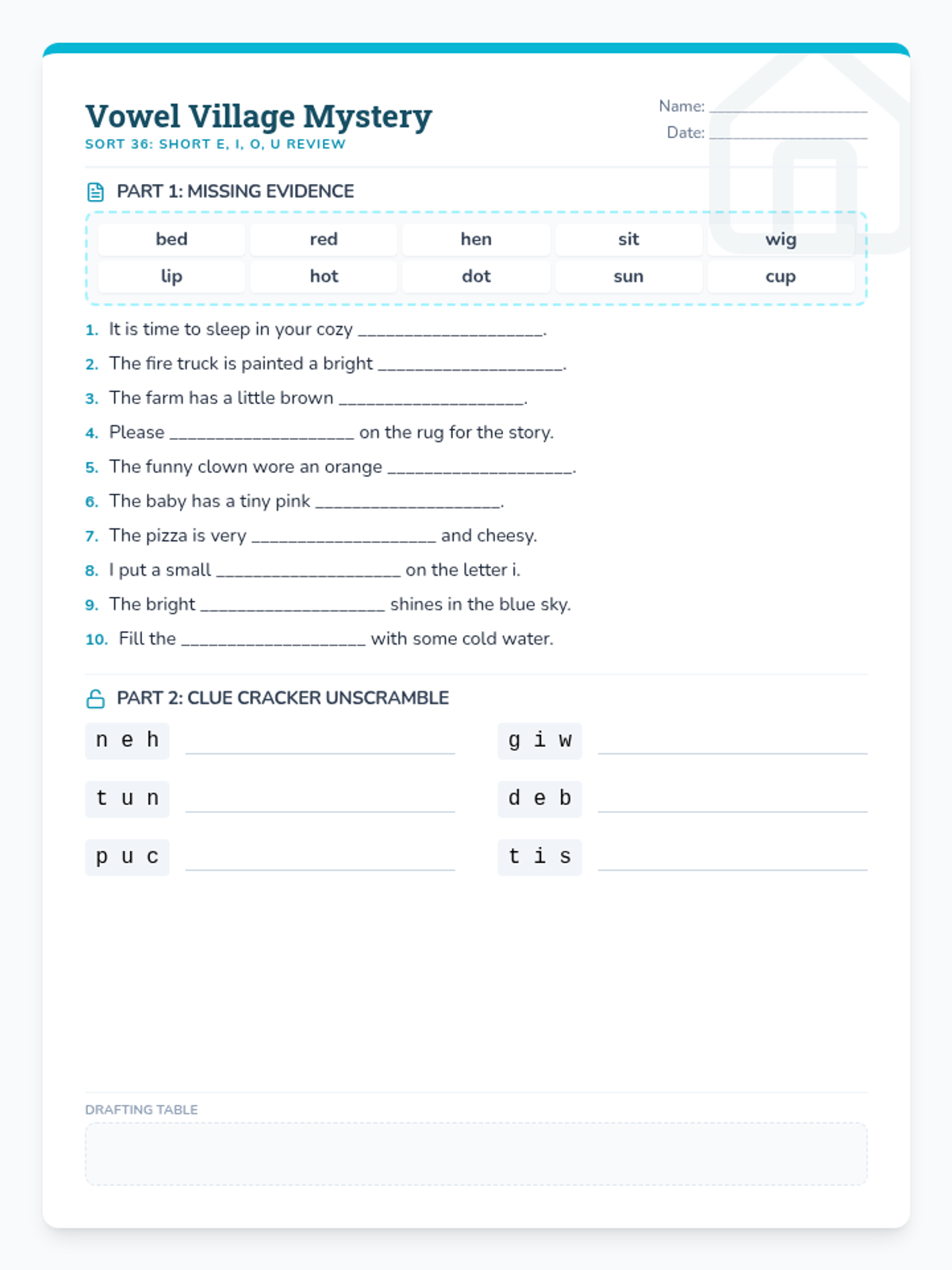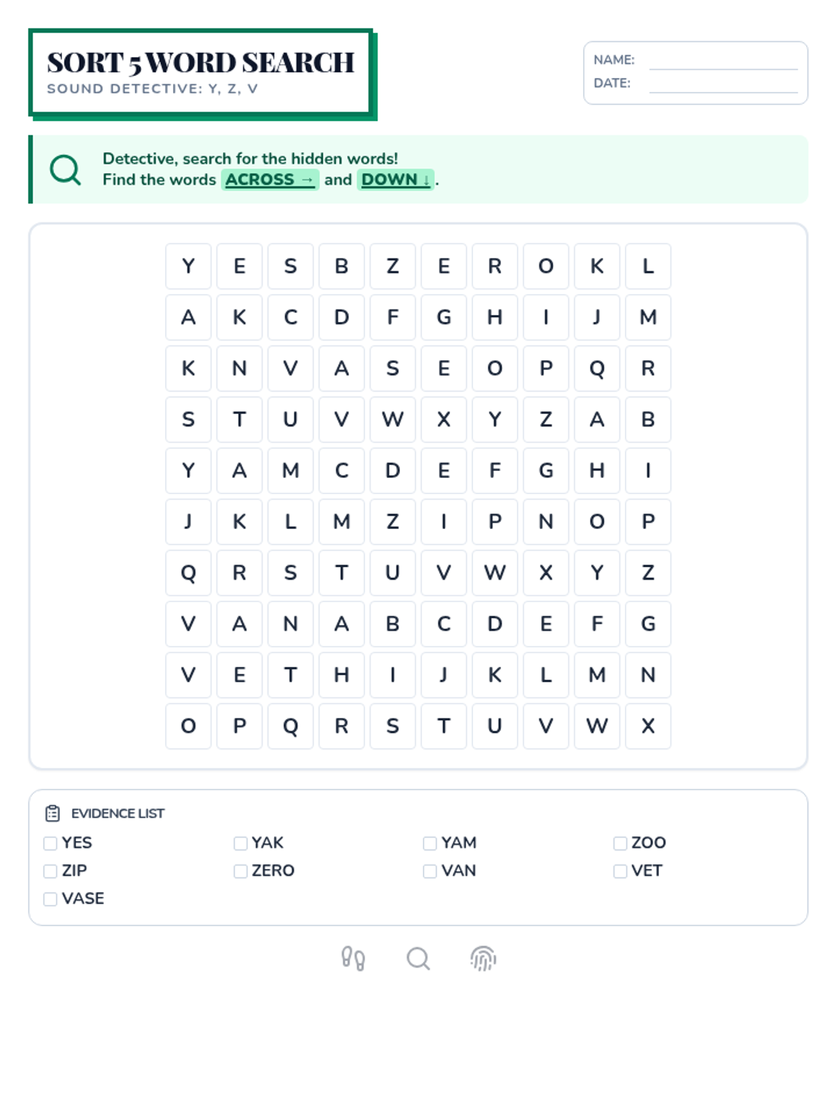 Detectives investigate the 'Lineup of Sounds' to master individual letter sounds and build CVC words using vowel clues.