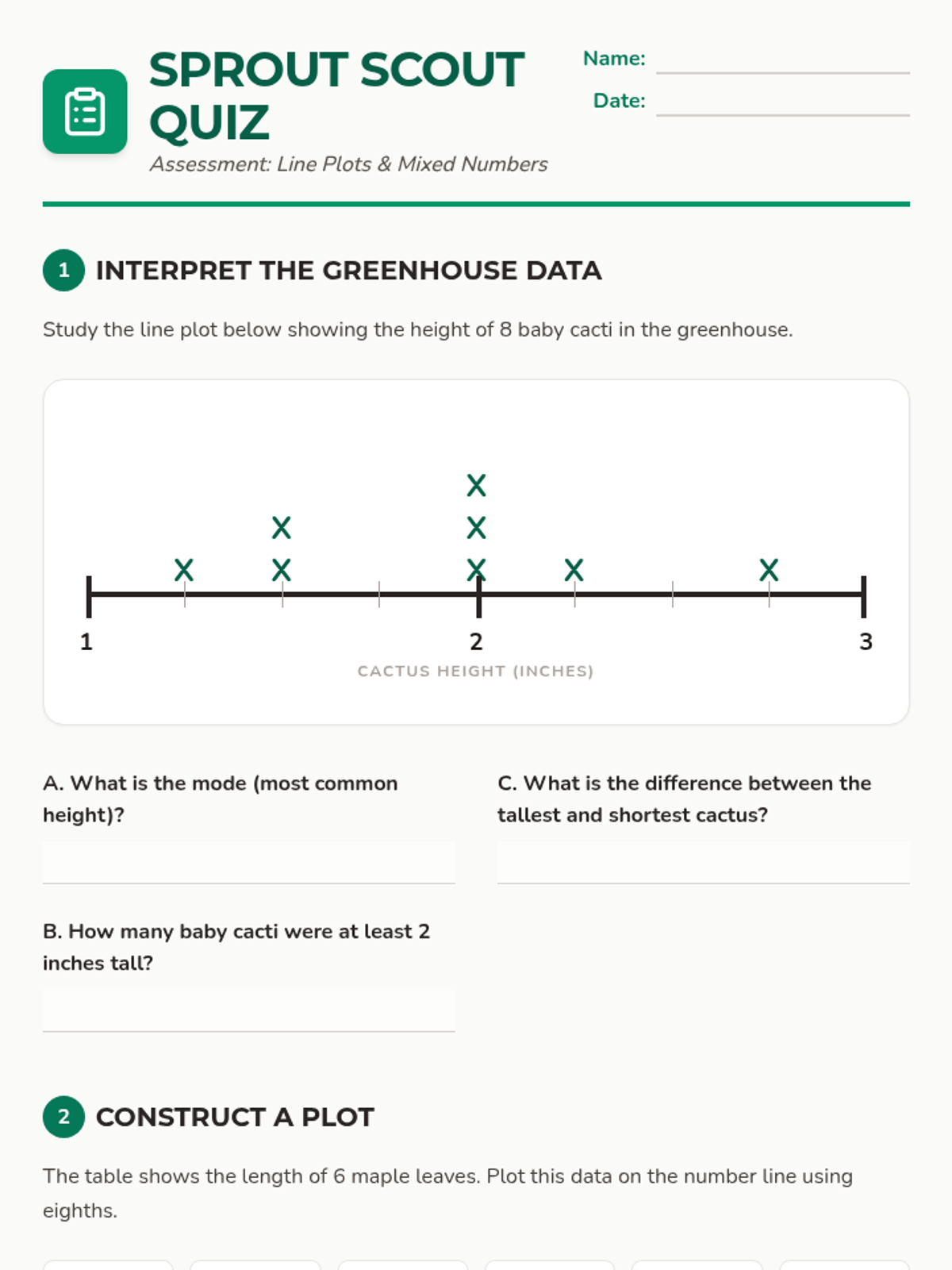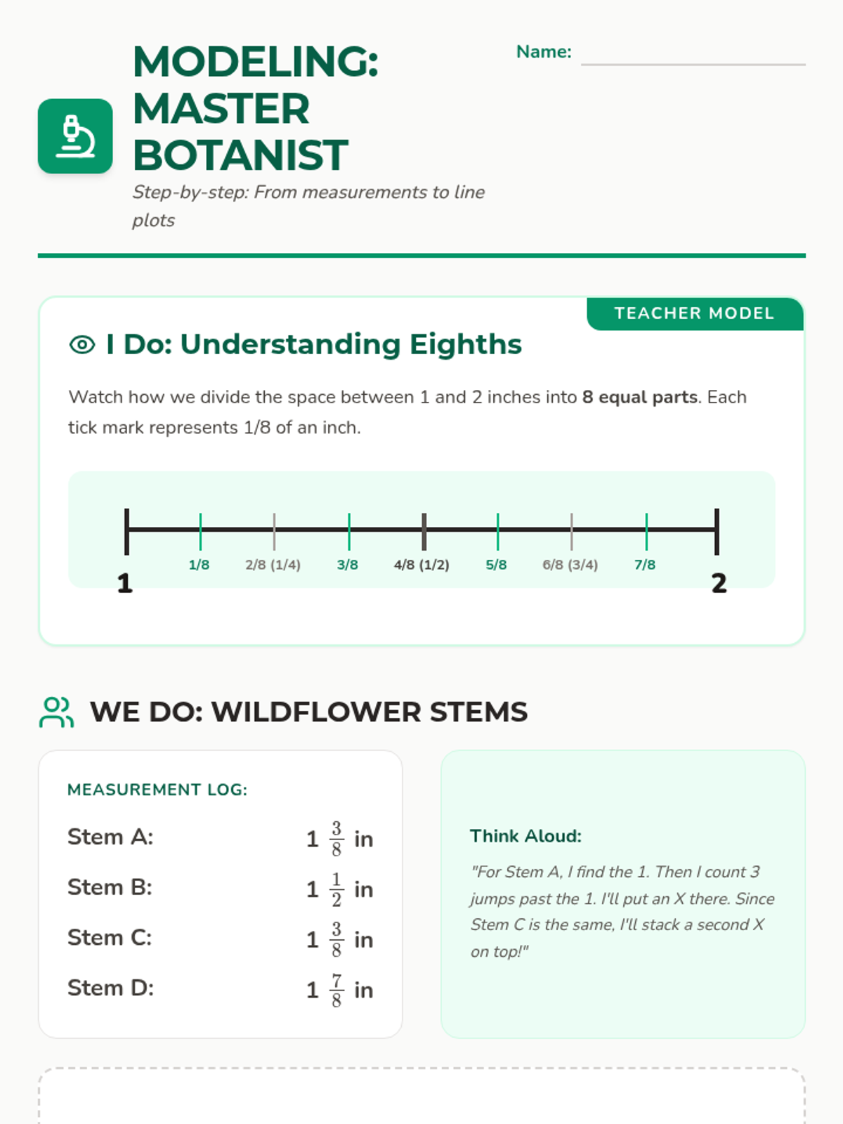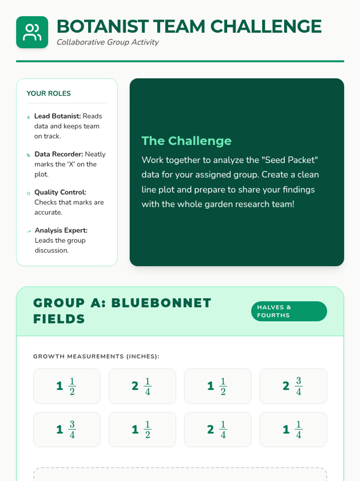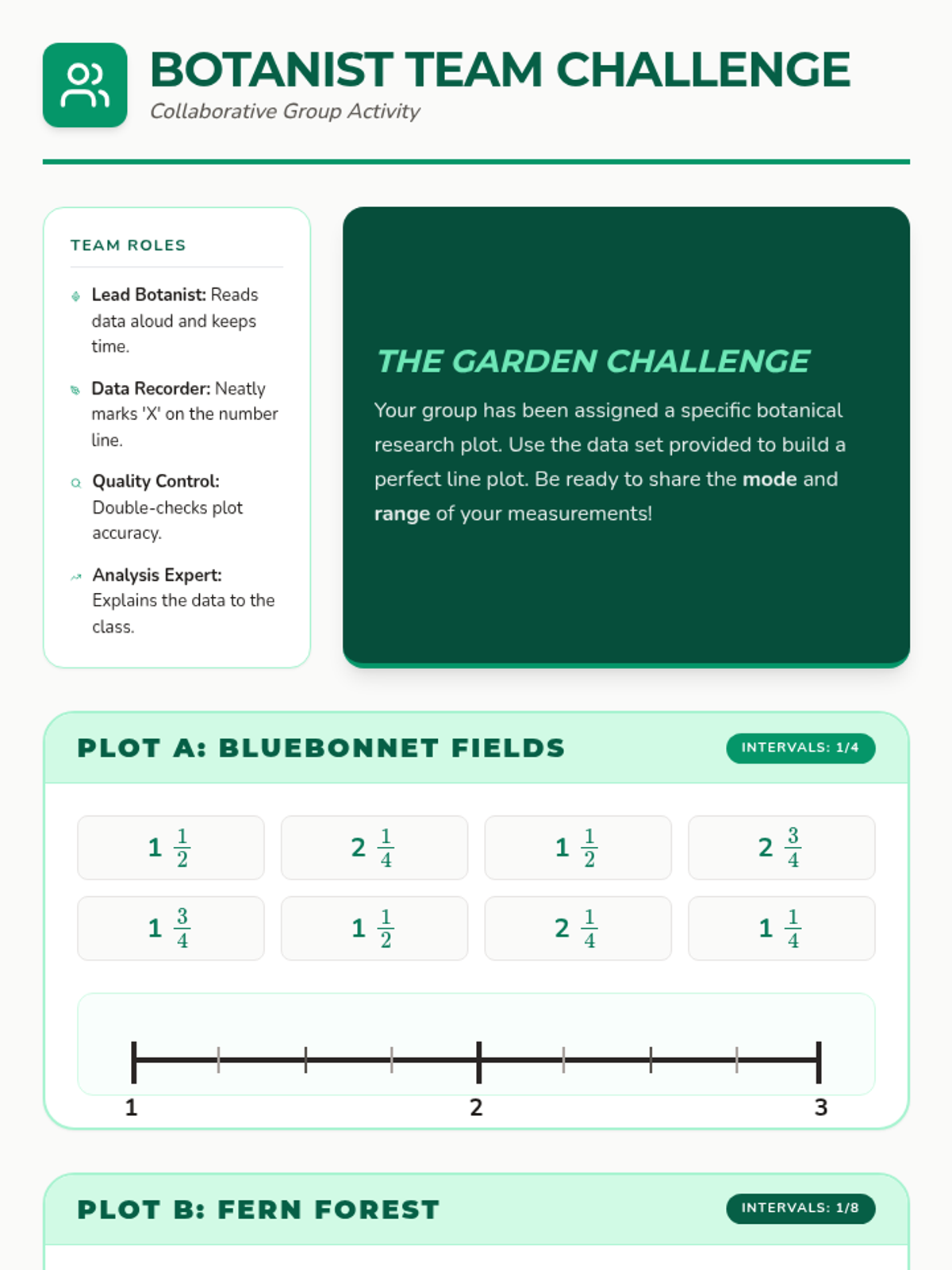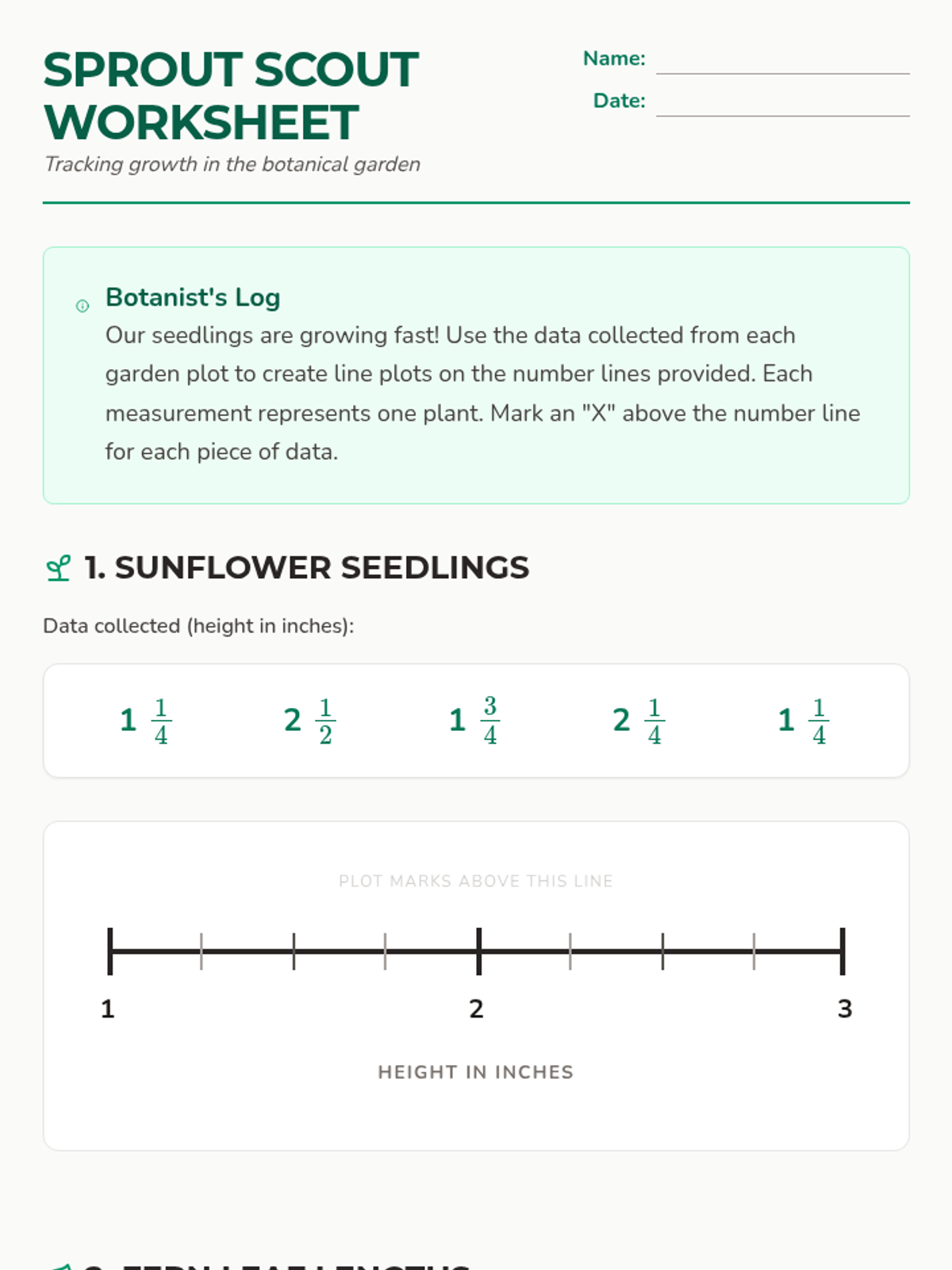 A lesson focused on collecting plant measurement data and plotting mixed numbers on a number line to visualize growth patterns.