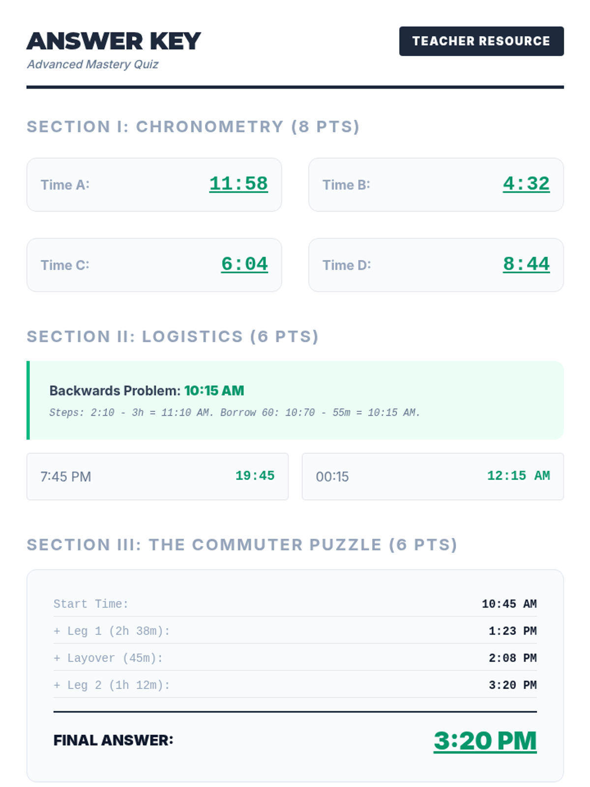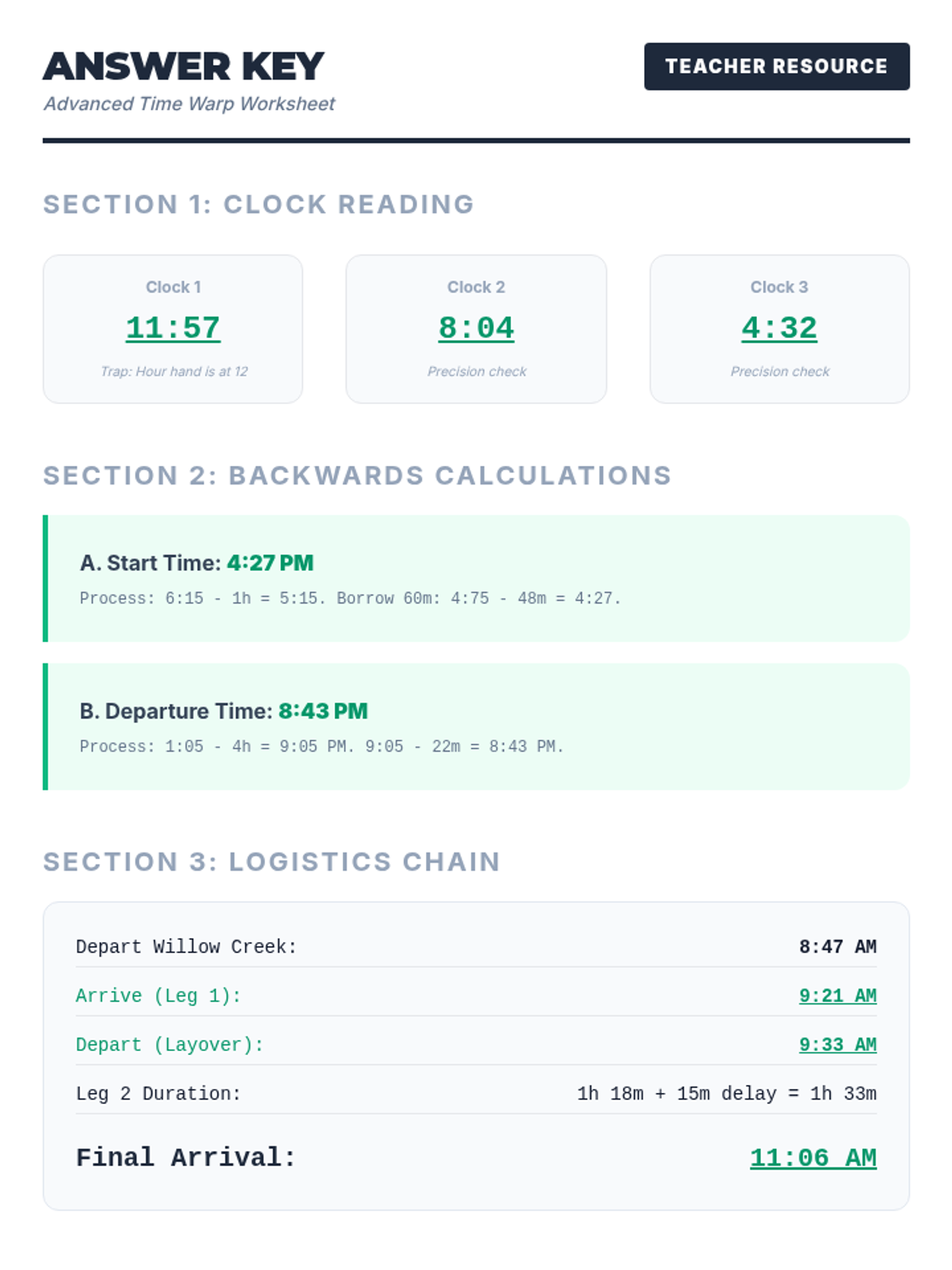 A comprehensive lesson on mastering analog clocks and calculating elapsed time, designed for middle school students with a focus on logical deduction and practical application.