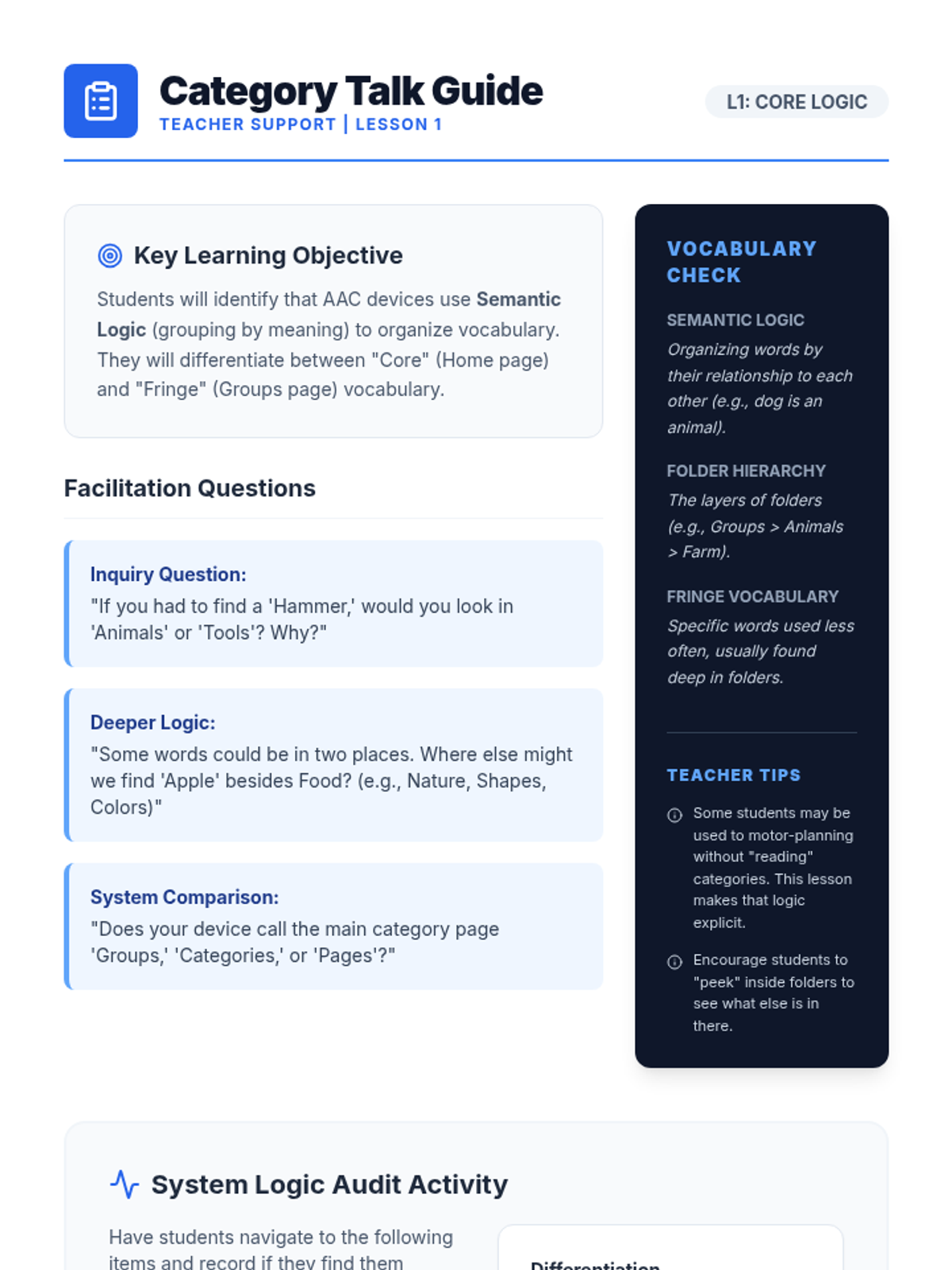 Students investigate the 'Groups' or 'Categories' page of their device to understand how the system organizes the world. They engage in sorting activities that mirror their device's logic to strengthen their mental map of the system.