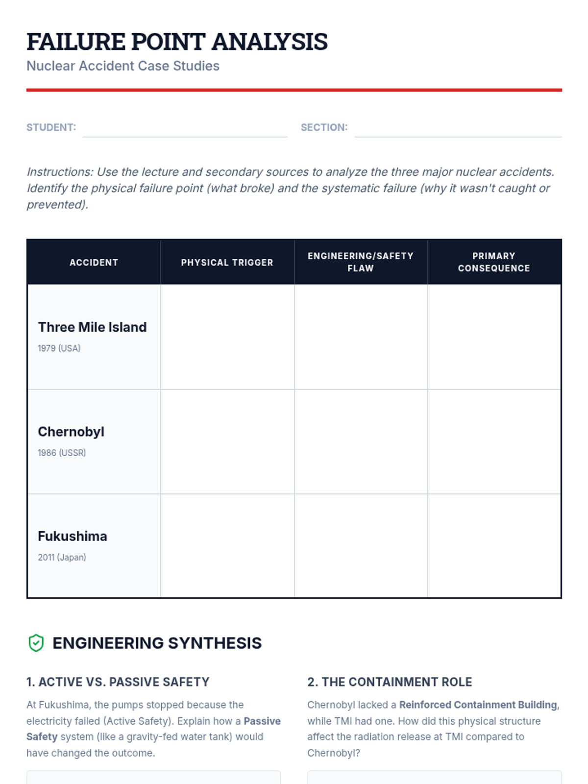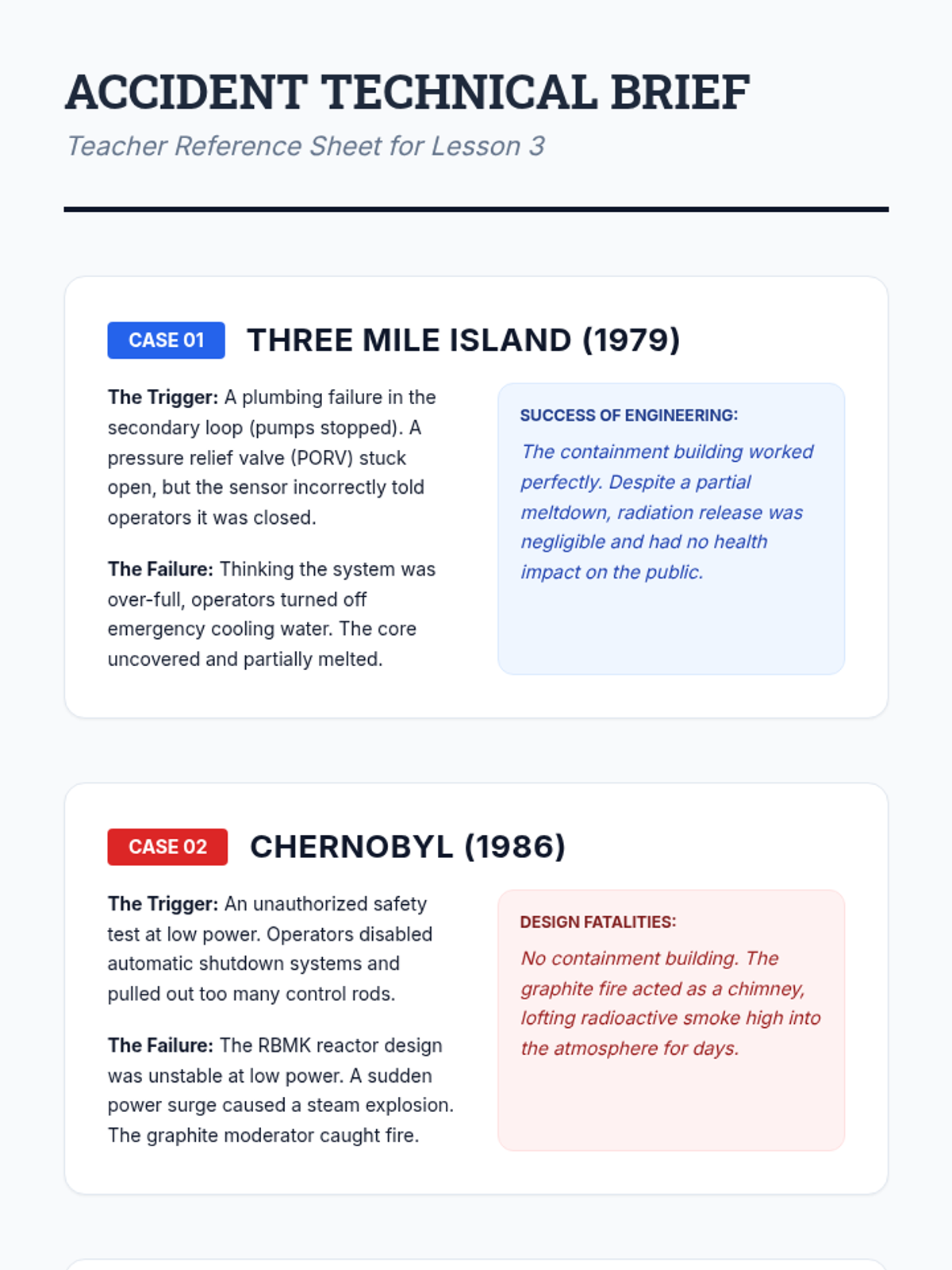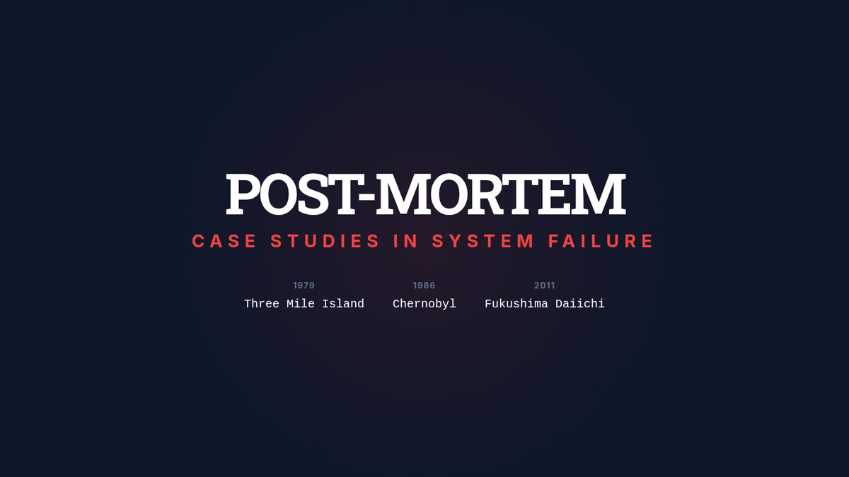 A technical analysis of historical nuclear accidents, focusing on mechanical failures and human error at Chernobyl, Three Mile Island, and Fukushima.