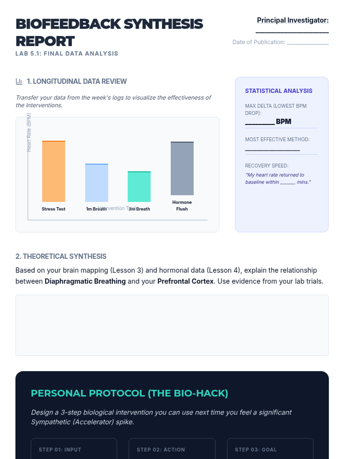 A culminating data analysis lesson where students graph their personal biofeedback results and synthesize their findings into a personalized stress management plan.
