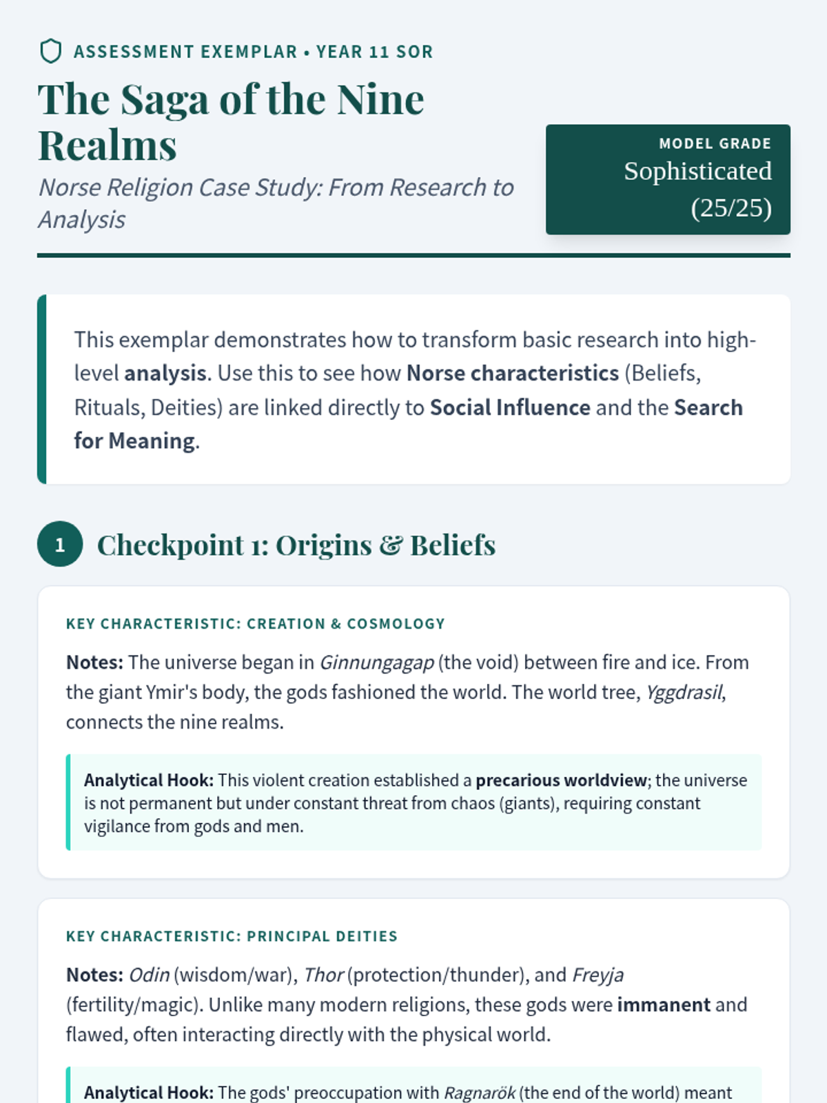 A comprehensive set of resources designed to help Year 11 Studies of Religion students structure their 'Nature of Religions' ancient religion presentation. The lesson provides a clear slide-by-slide blueprint that maps research checkpoints directly to the marking criteria, ensuring students move beyond description into sophisticated analysis.