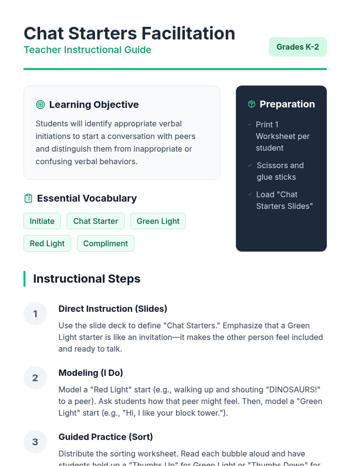 A lesson focused on teaching elementary students, particularly those with autism, how to effectively use verbal initiations to start conversations with peers.