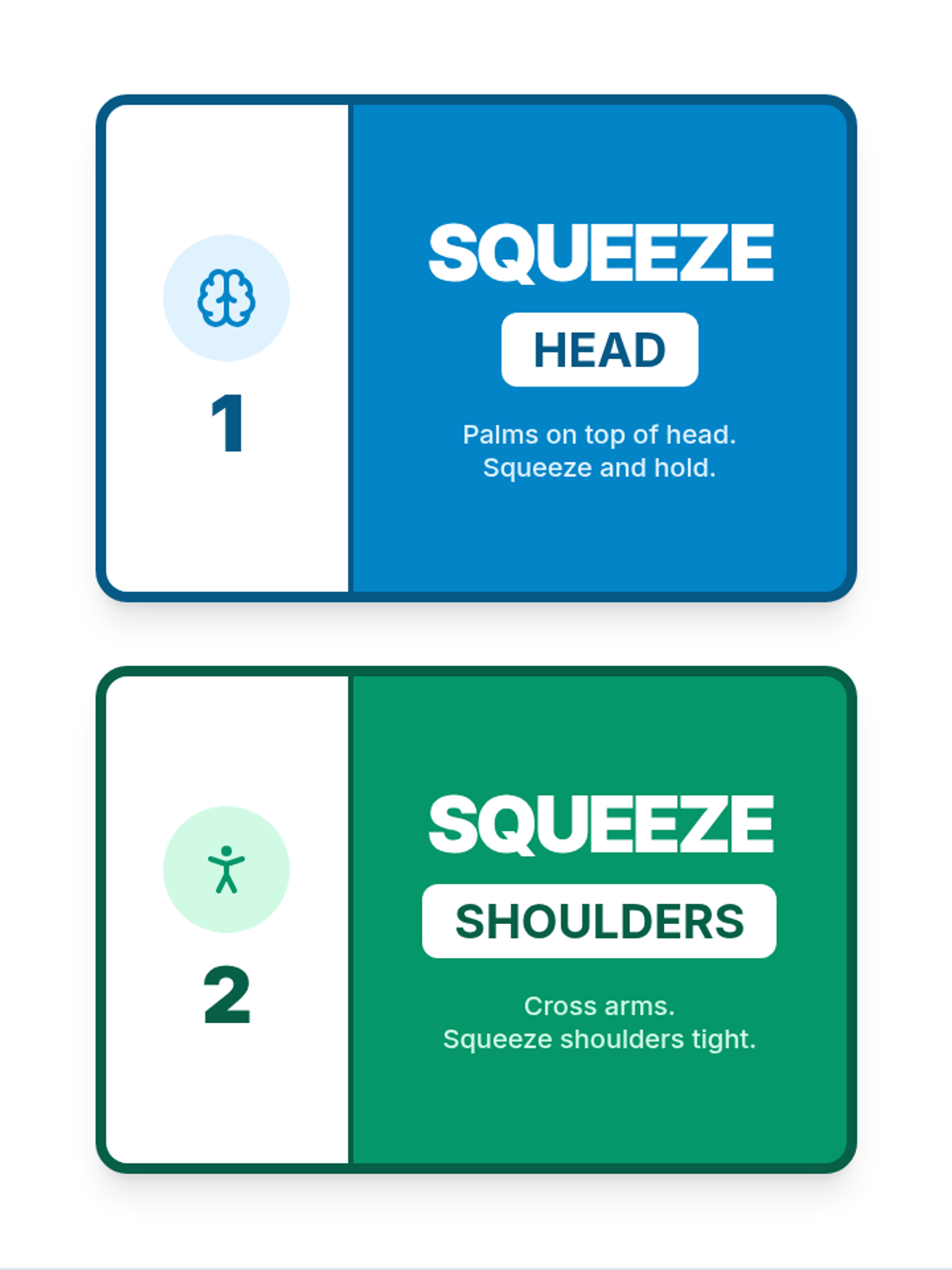A sensory regulation routine using self-applied deep pressure to help students ground themselves and manage overstimulation. The lesson includes visual squeeze cards for the student and a facilitation guide for the teaching assistant.