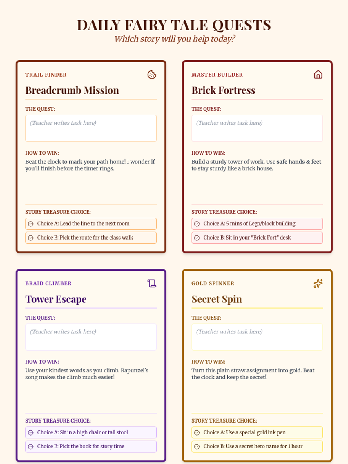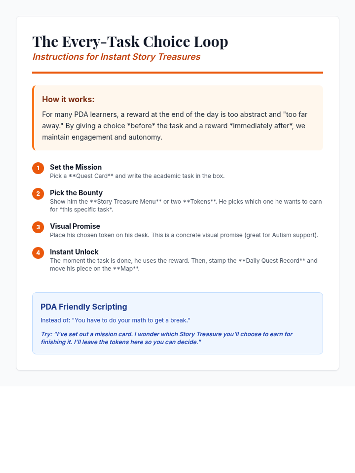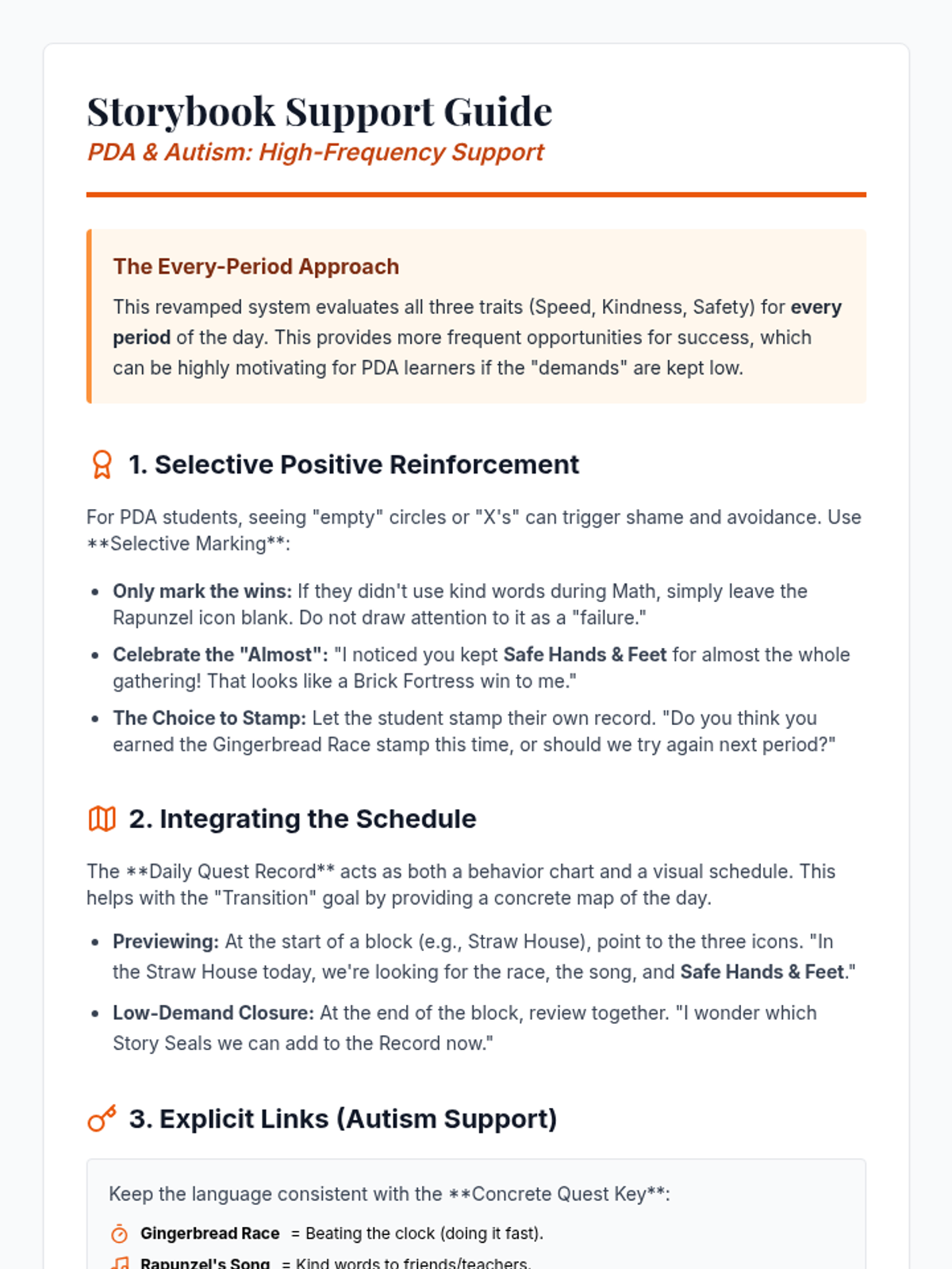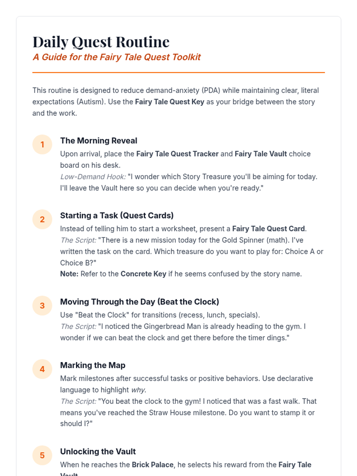 A collection of fairy-tale-themed behavioral support materials designed for a student with PDA, focusing on autonomy, high-interest themes, and low-demand framing.