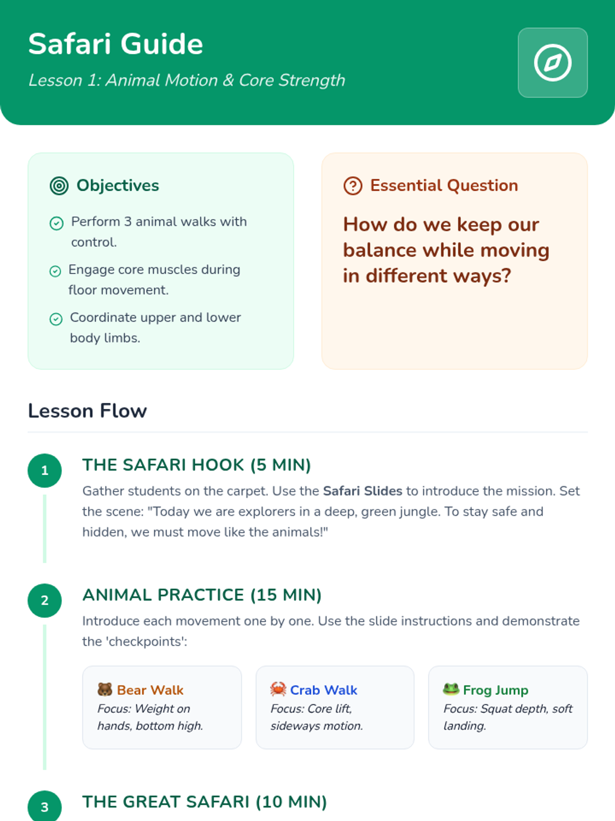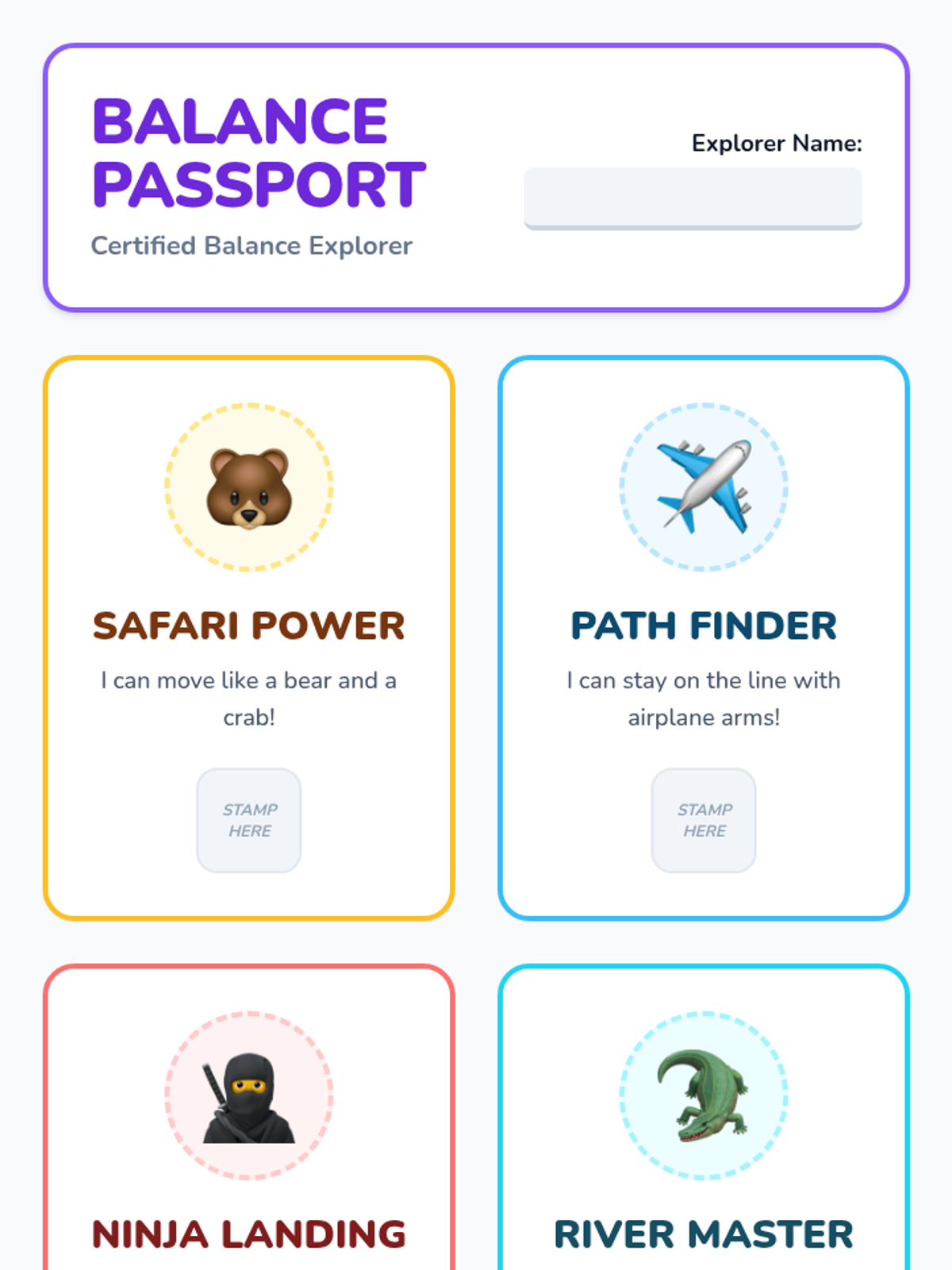 A high-energy physical education lesson focused on developing gross motor skills through engaging balance challenges. Students explore static and dynamic balance using playful imagery and structured task cards.