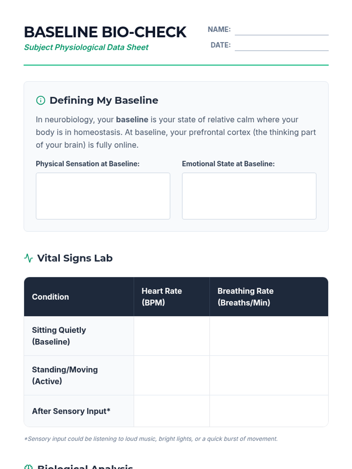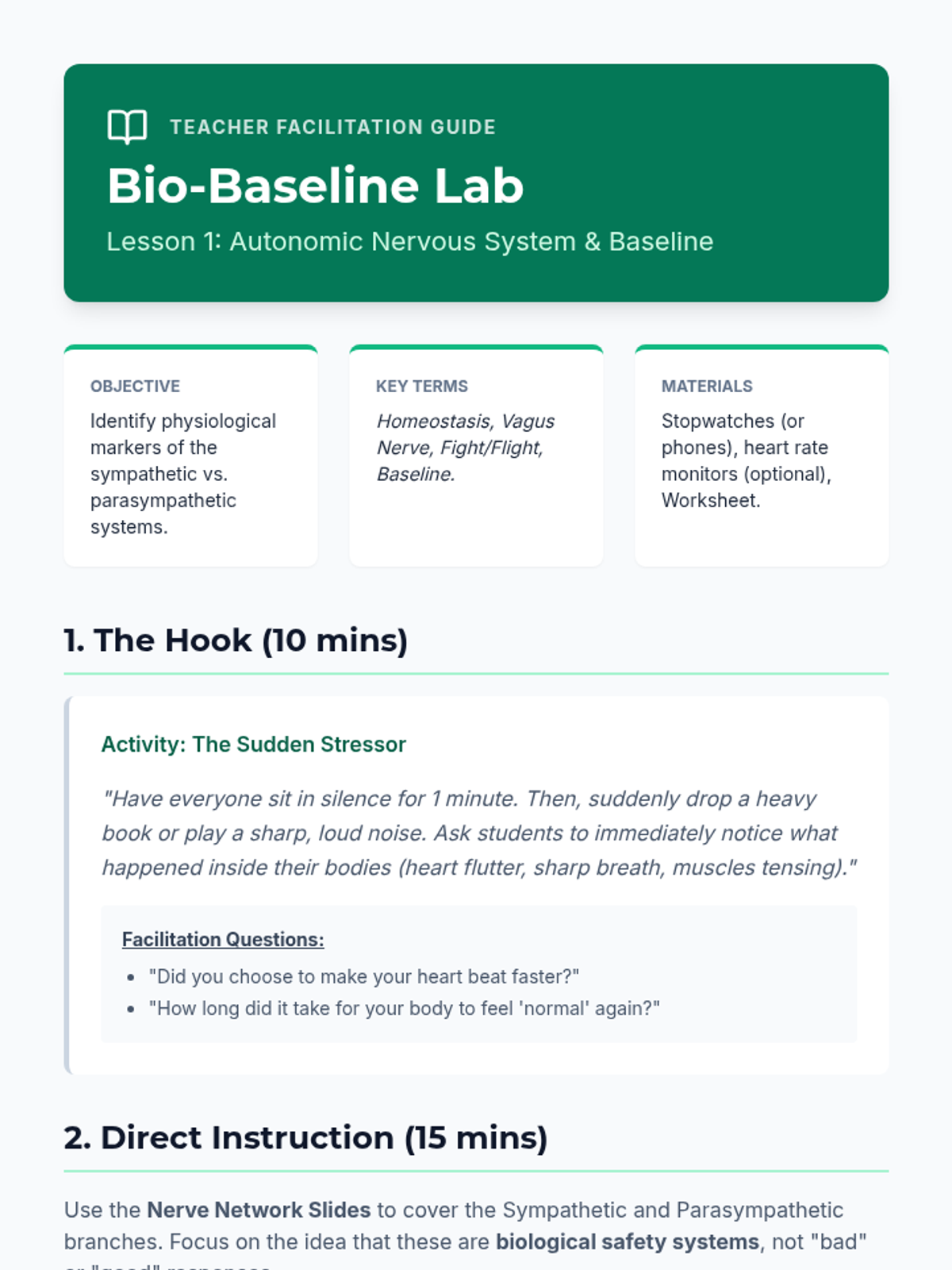 Students investigate the sympathetic and parasympathetic nervous systems to understand the concept of a 'physiological baseline' and the biological difference between homeostasis and escalation.