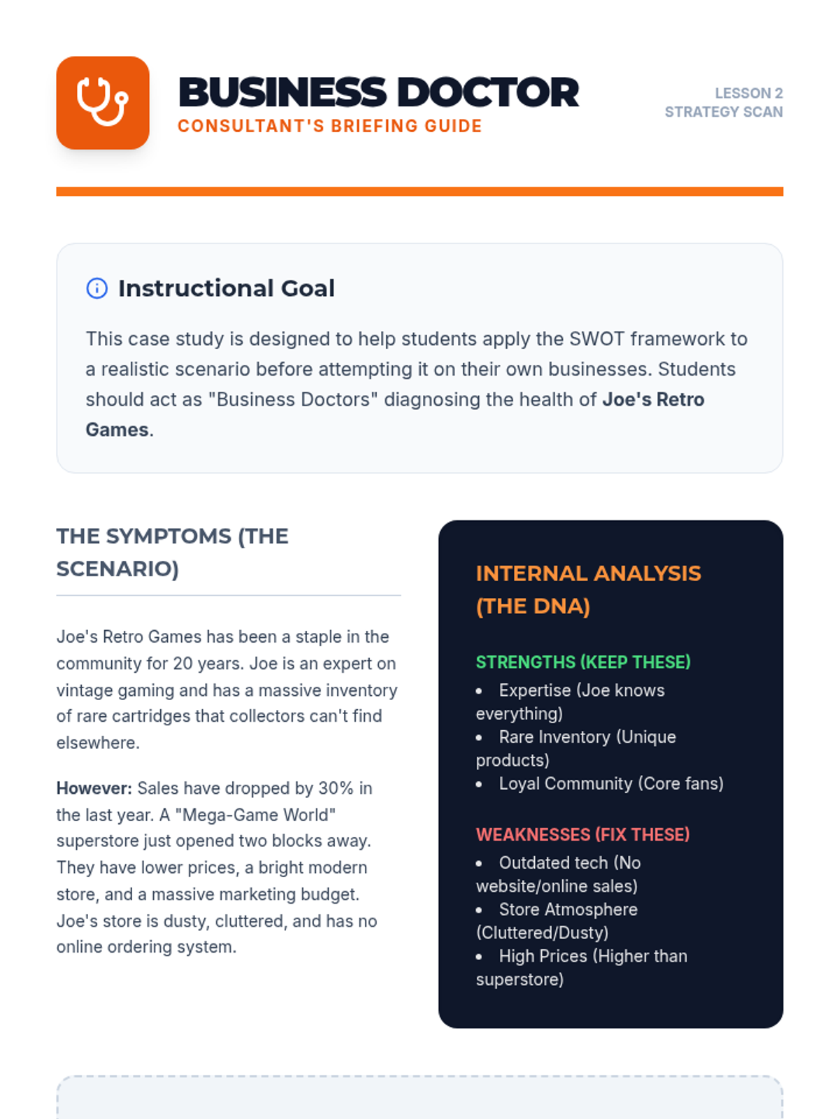 Students master the SWOT framework to analyze business health and strategic positioning.