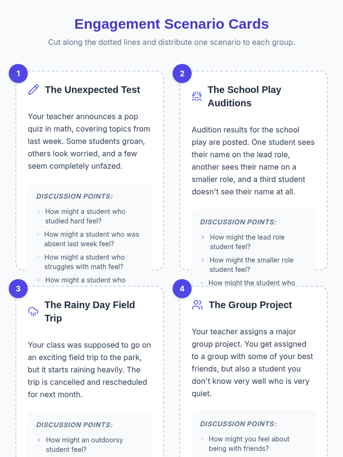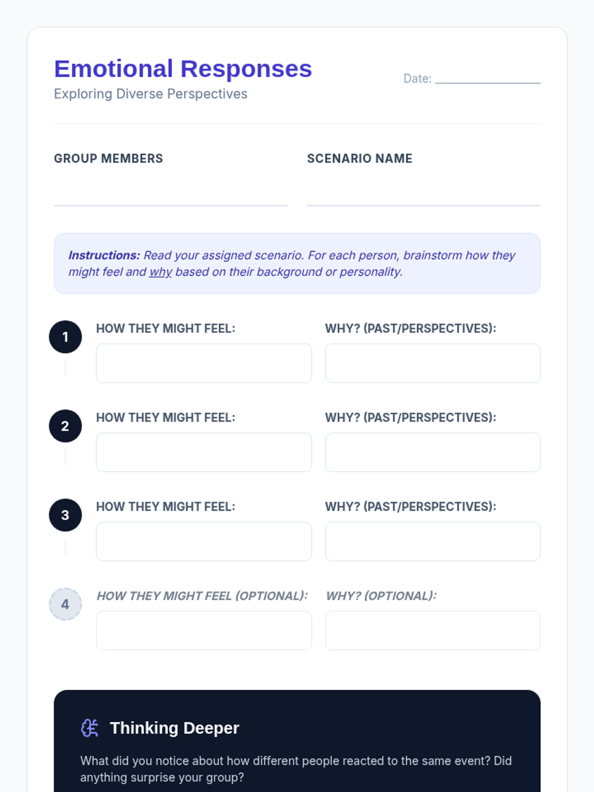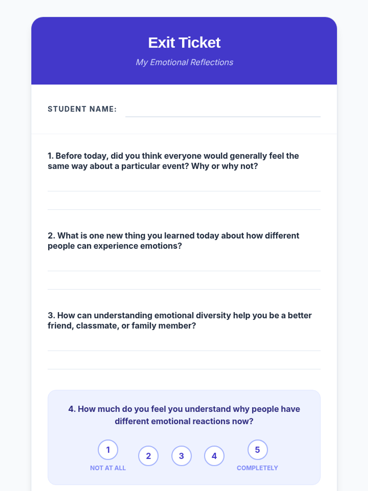 This lesson explores how different individuals can react to the same situation with varying emotions, promoting understanding and respect for diverse emotional responses. It's essential for fostering empathy and reducing judgment among middle school students.