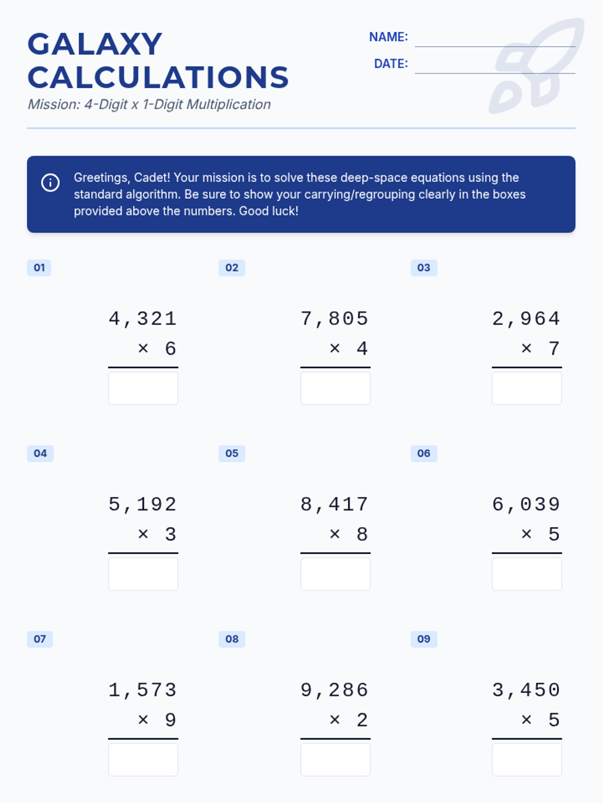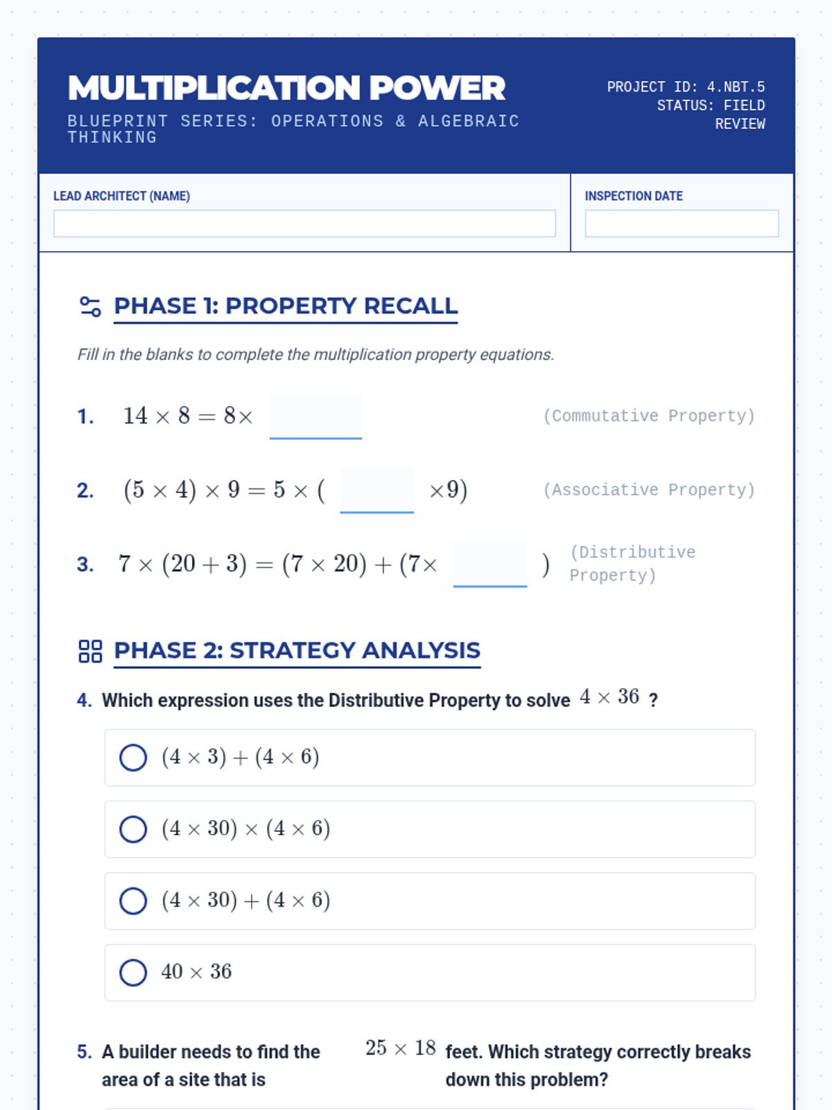 Students synthesize their learning across all 4.NBT standards through a series of mixed-review 'Case Files'. Focus on ALN HLCs 1-4.