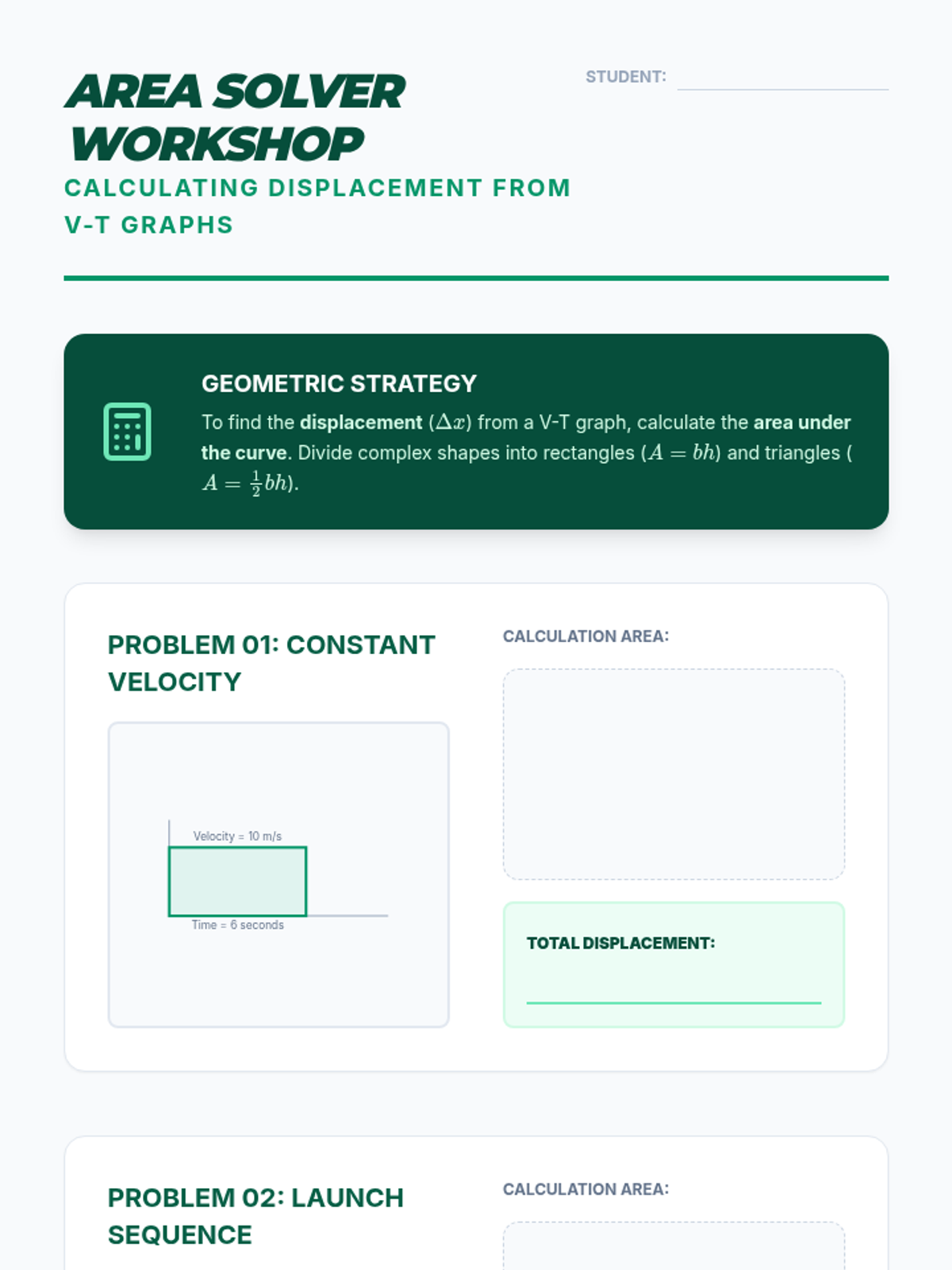 This lesson introduces the concept of integration geometrically by calculating the area under velocity-time graphs to determine displacement. Students verify calculations against measured movements.