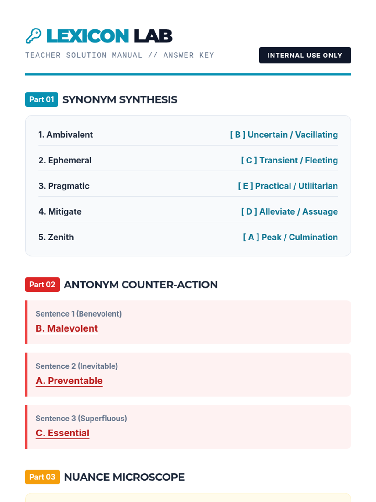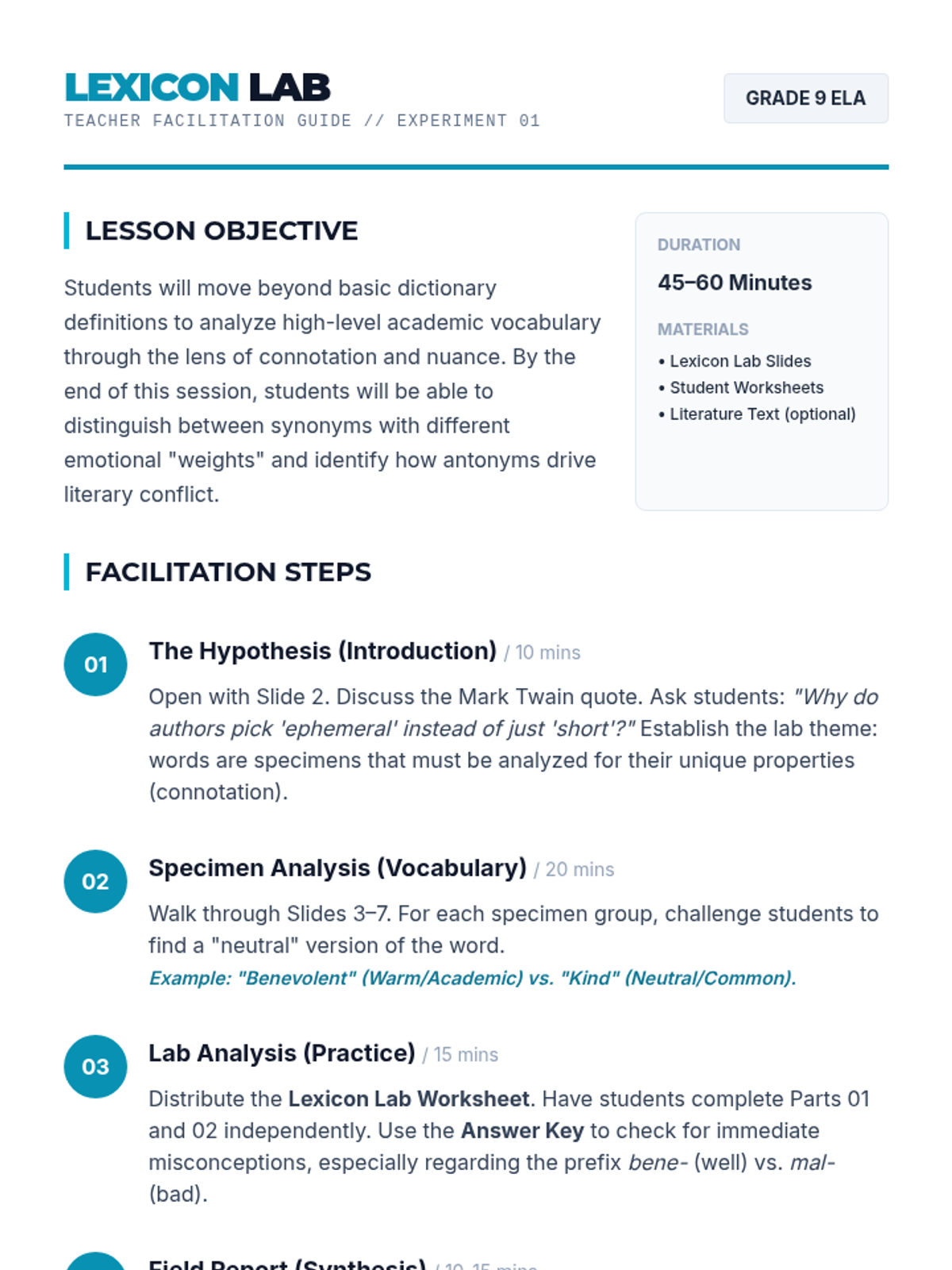 A high school level lesson on synonyms and antonyms focusing on academic vocabulary found in literature, emphasizing nuance and connotation.
