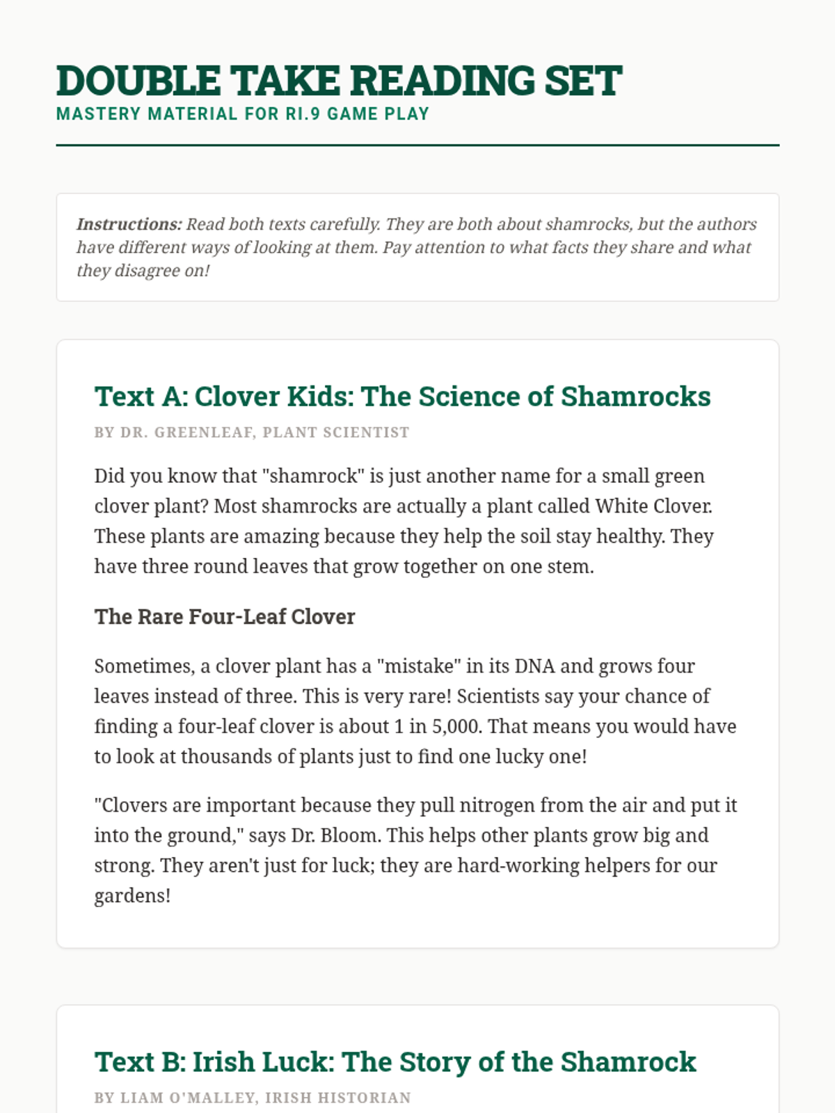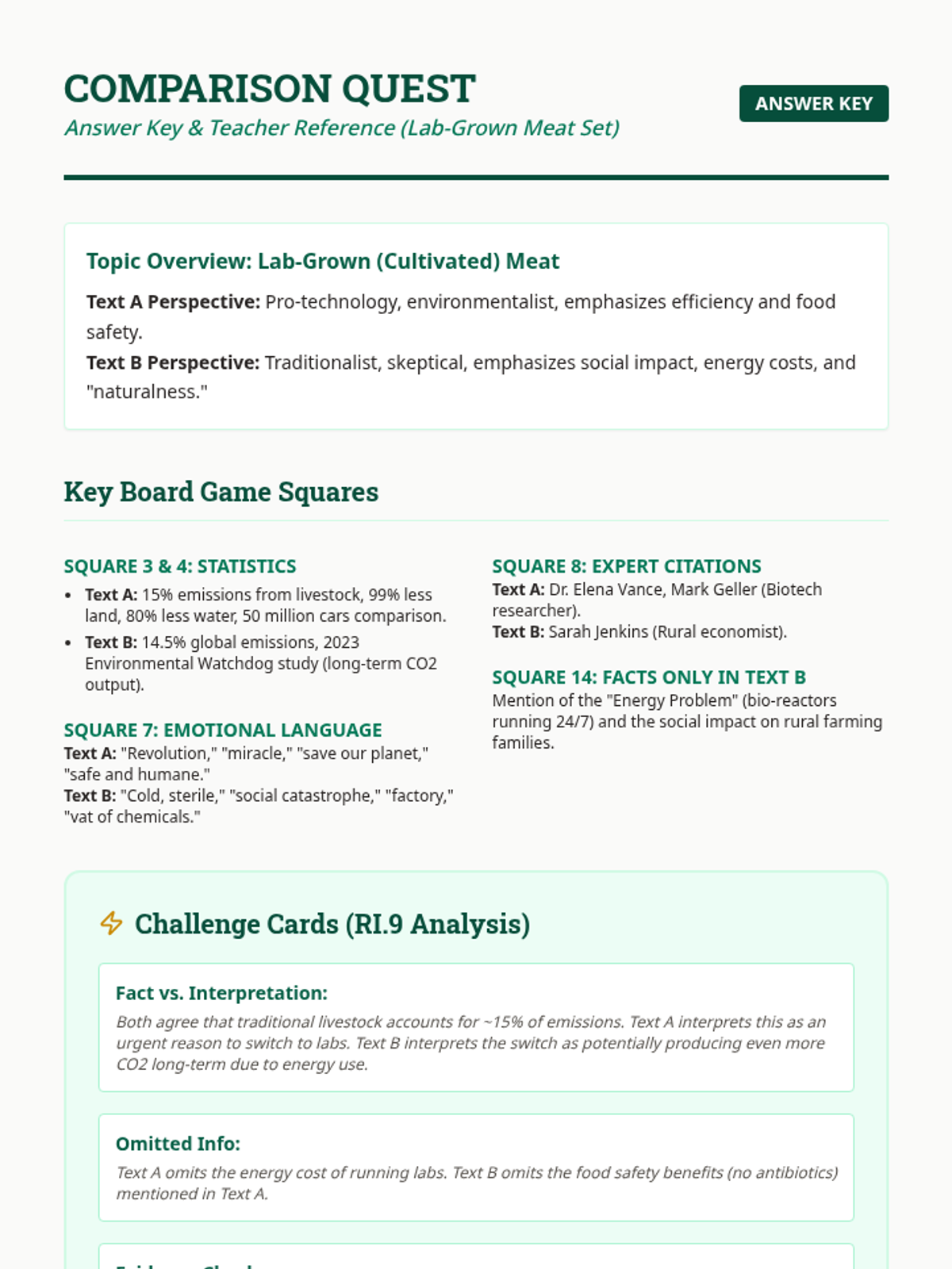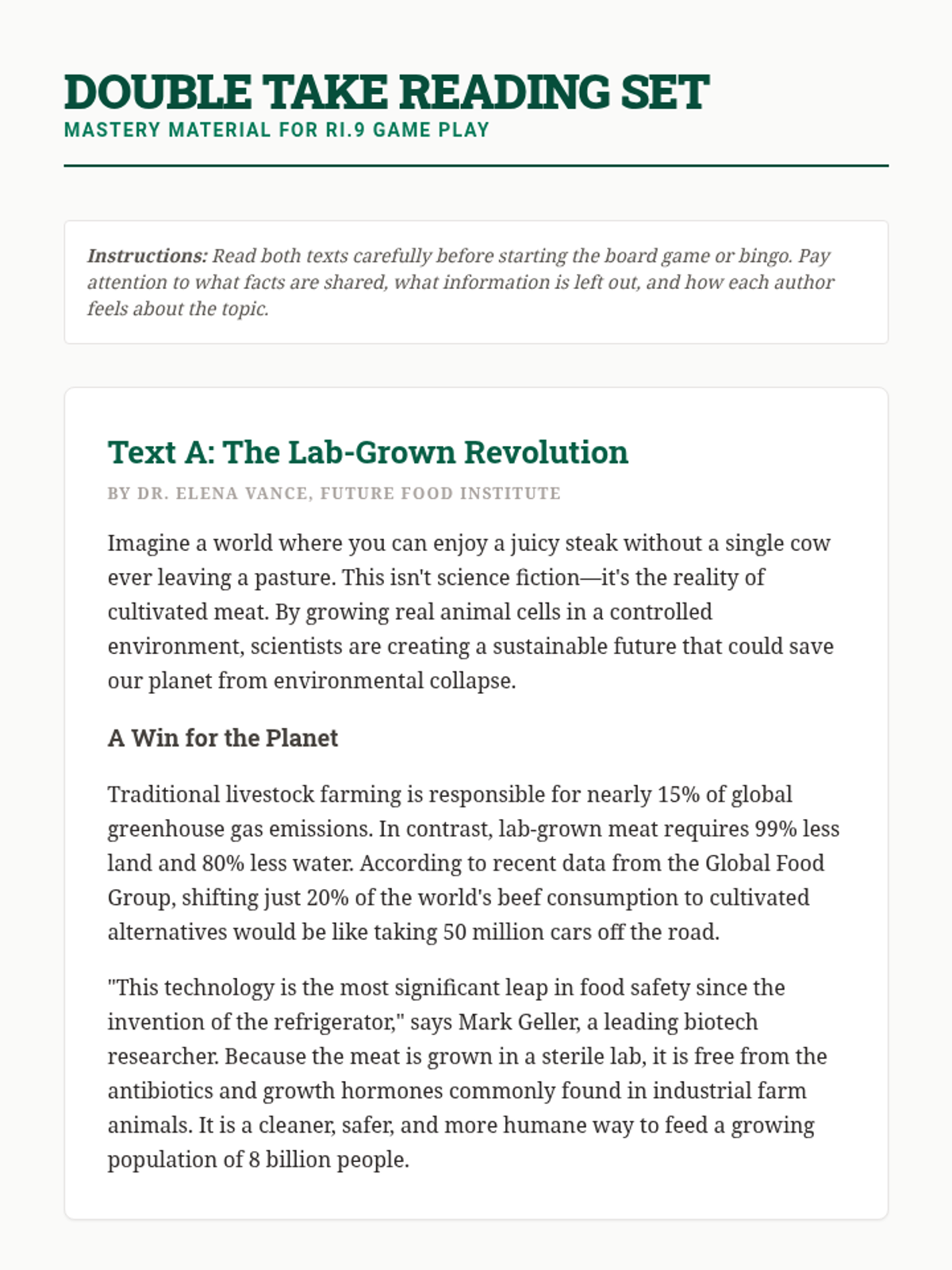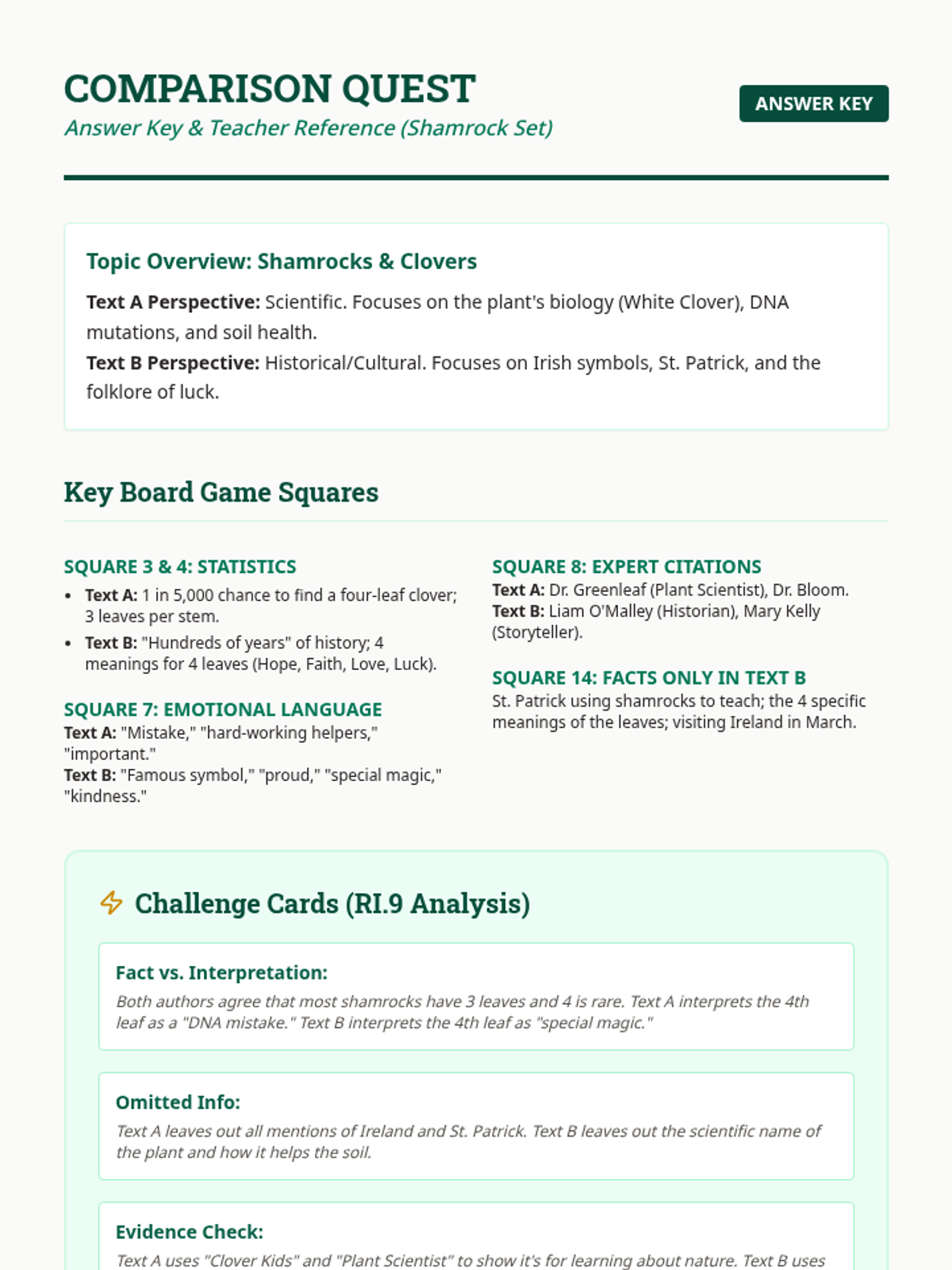 A high-energy, game-based lesson designed to reinforce RI.9 standards. Students engage in a multi-modal 'Double Take' challenge involving a board game, bingo, and a scavenger hunt to analyze how different authors present the same non-fiction topics.
